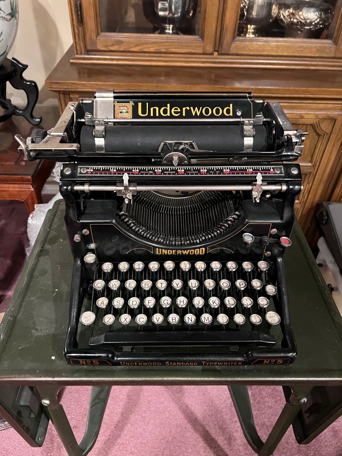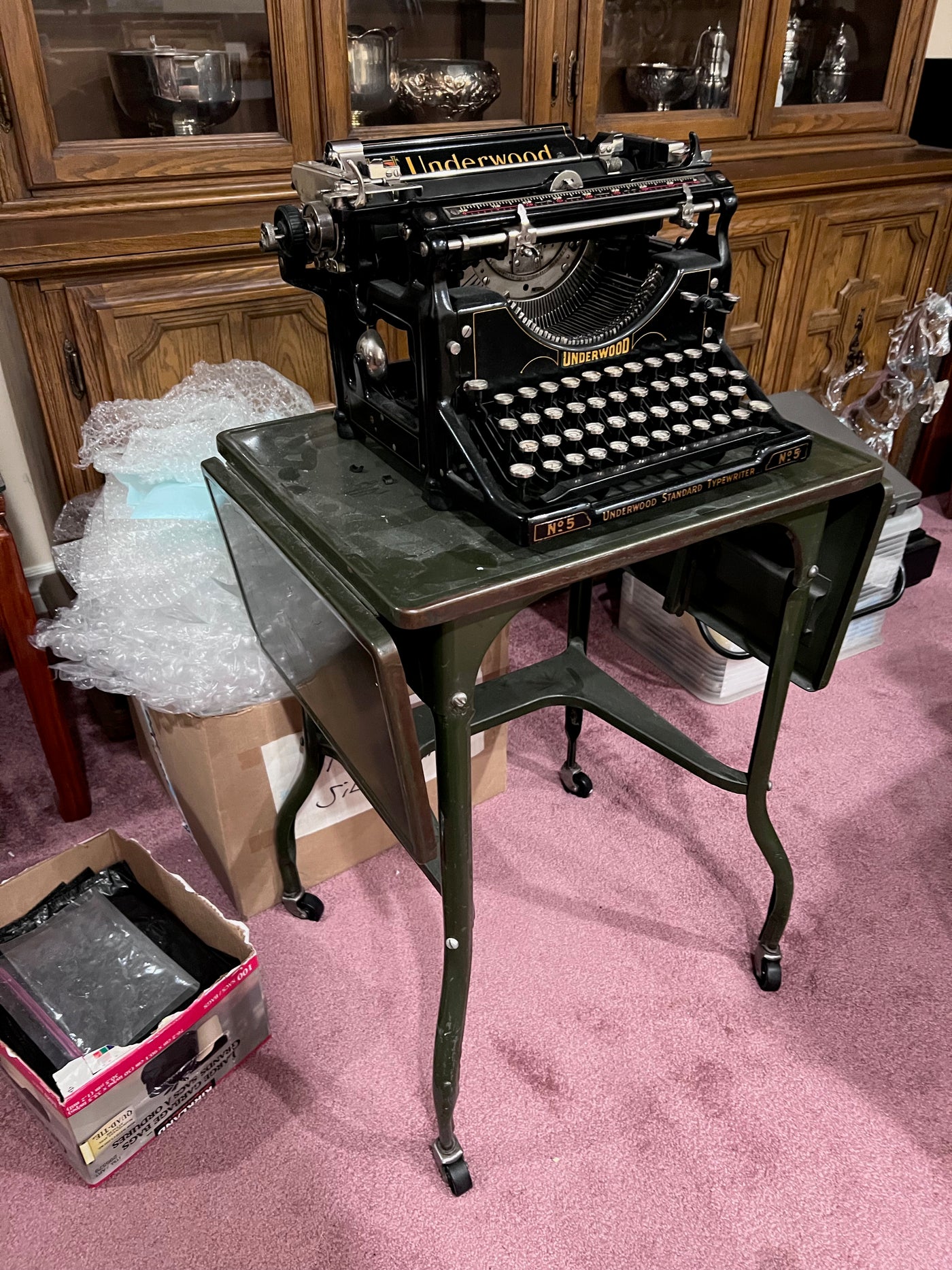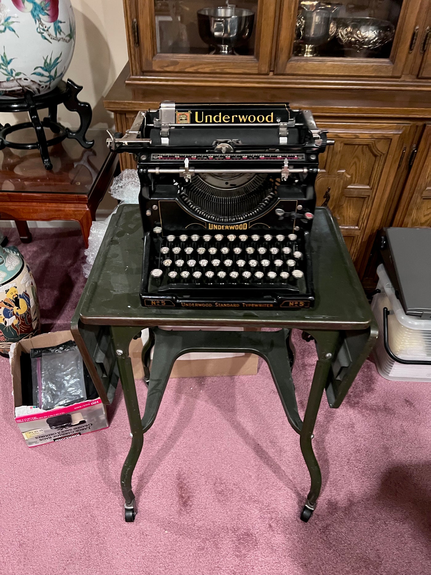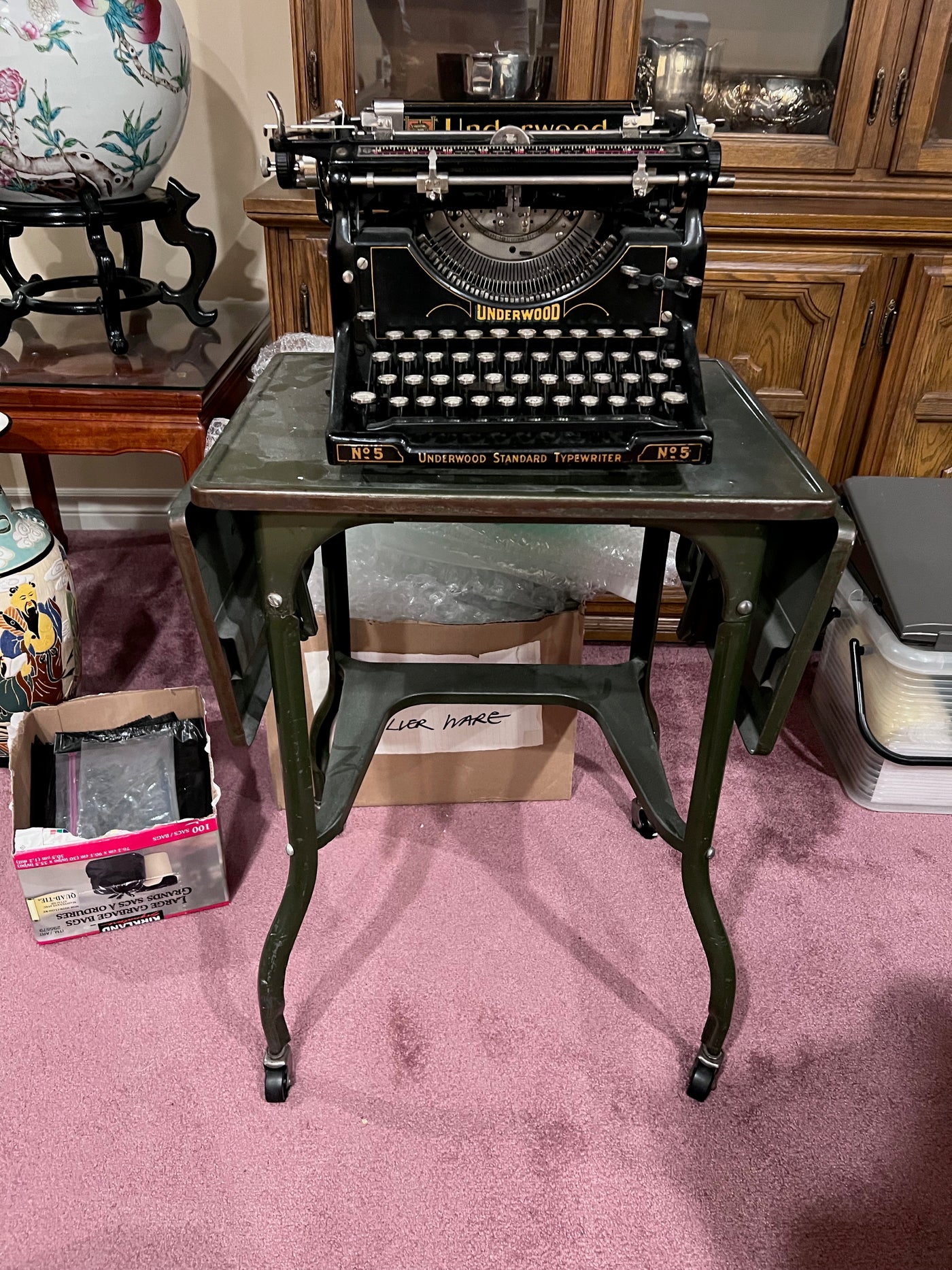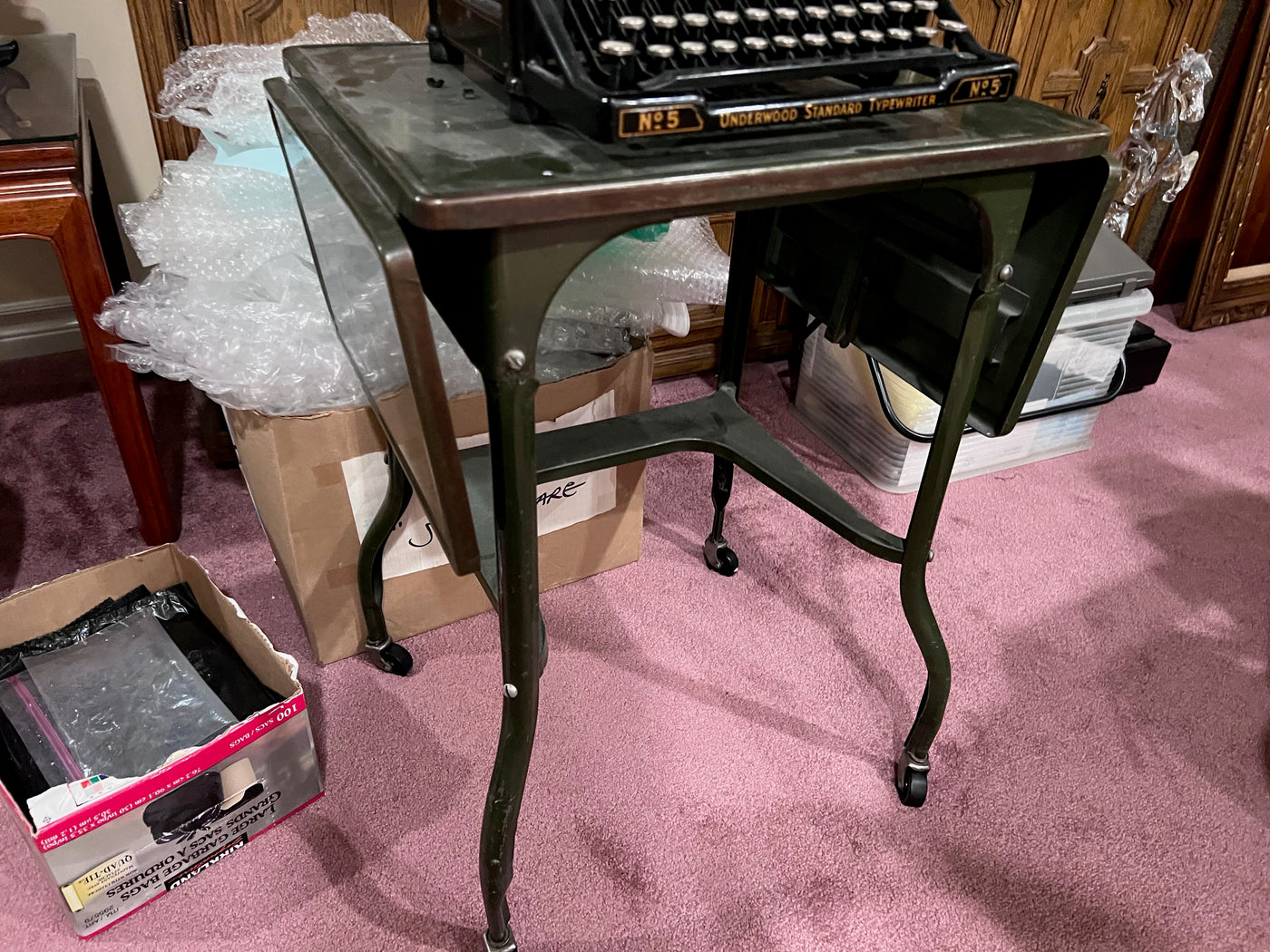 Underwood Model 5 Standard Typewriter with Table on Wheels.