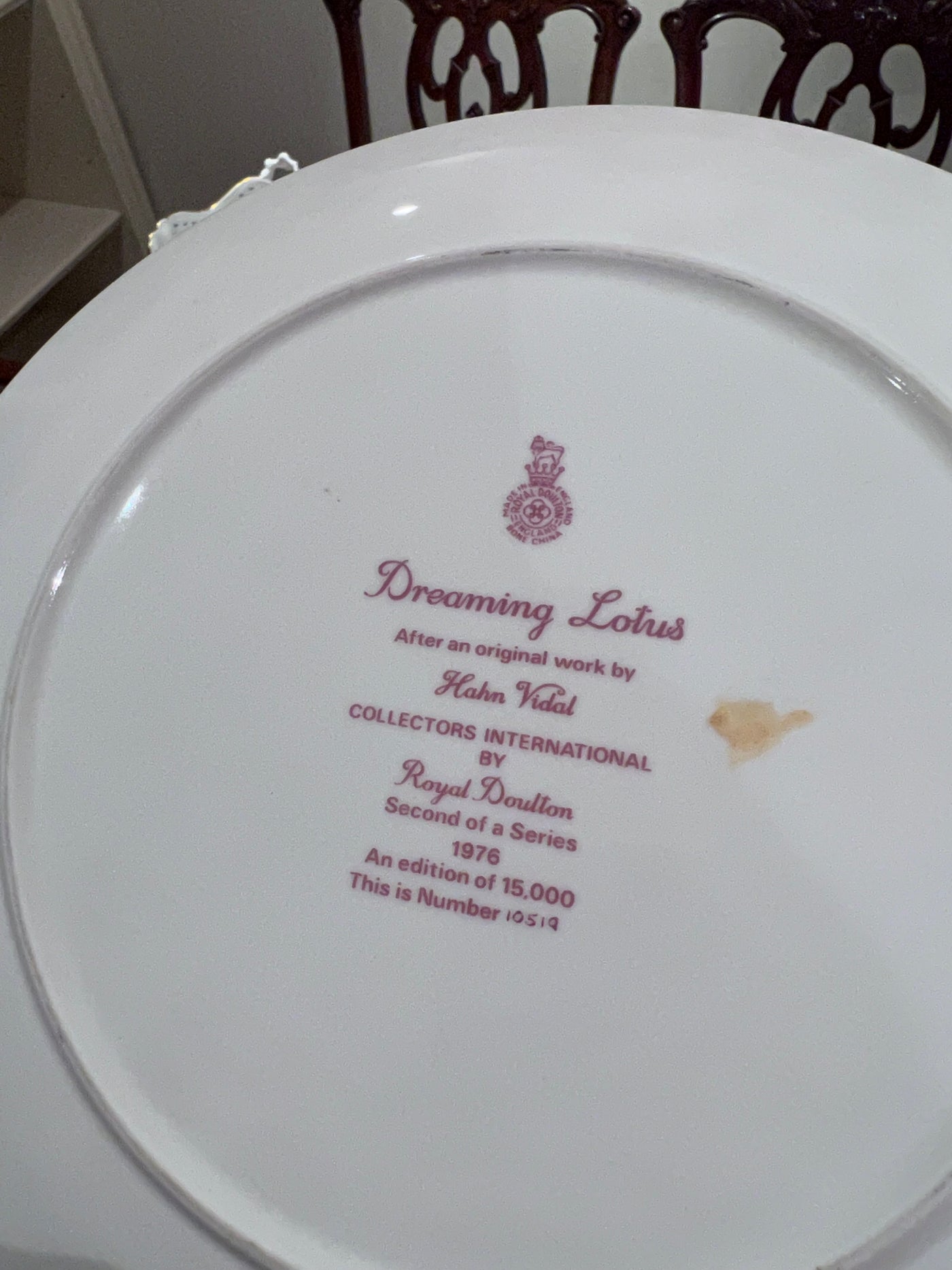 Royal Doulton 'Dreaming Lotus' by Hahn Vidal Collector Plate.