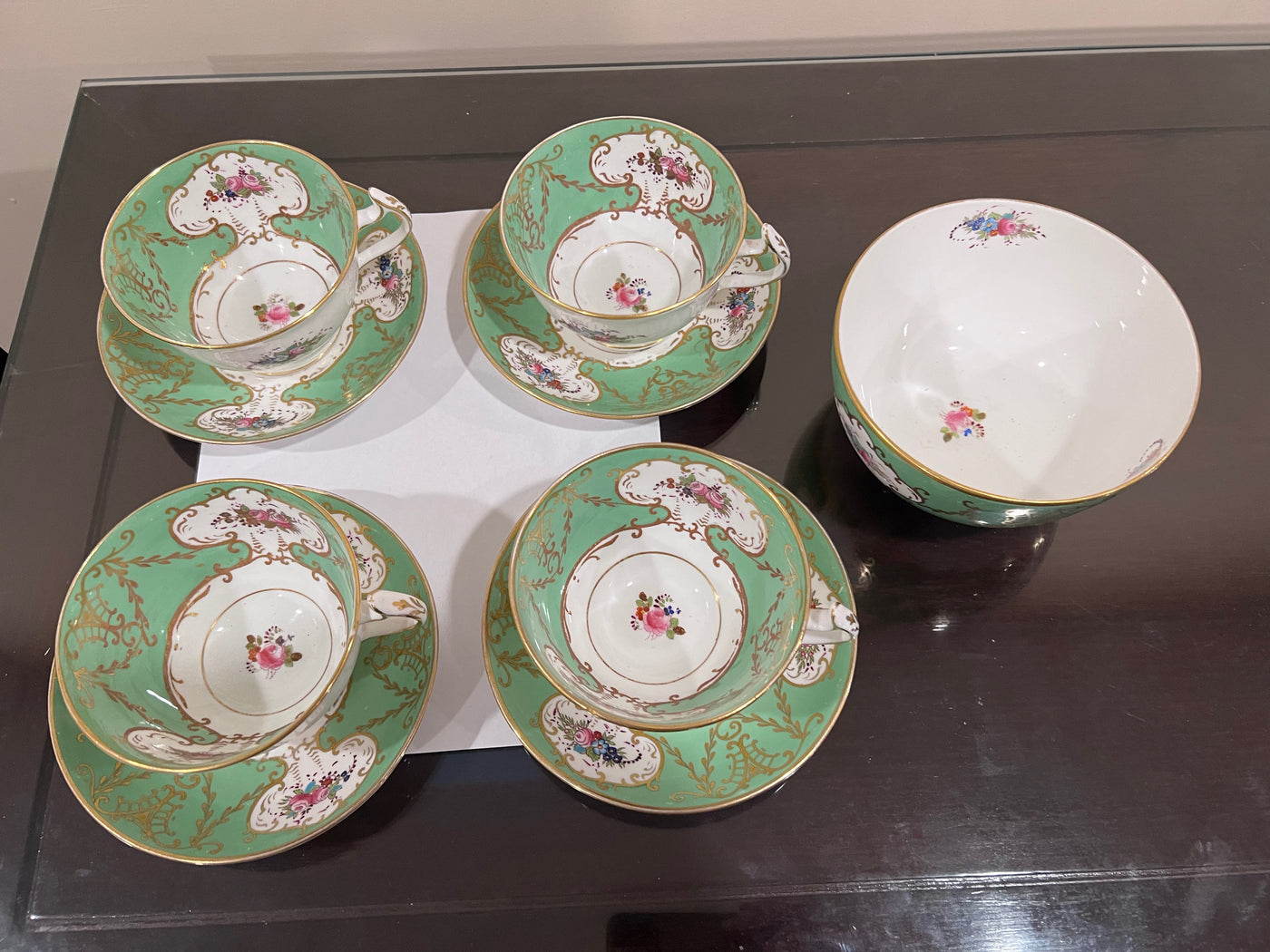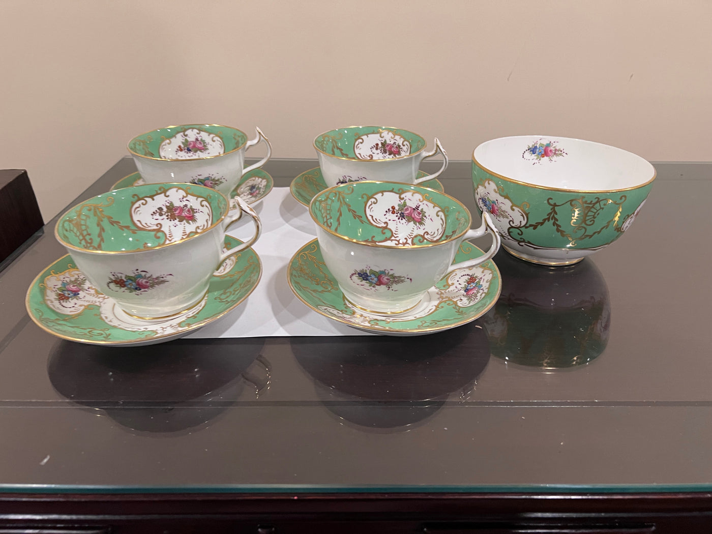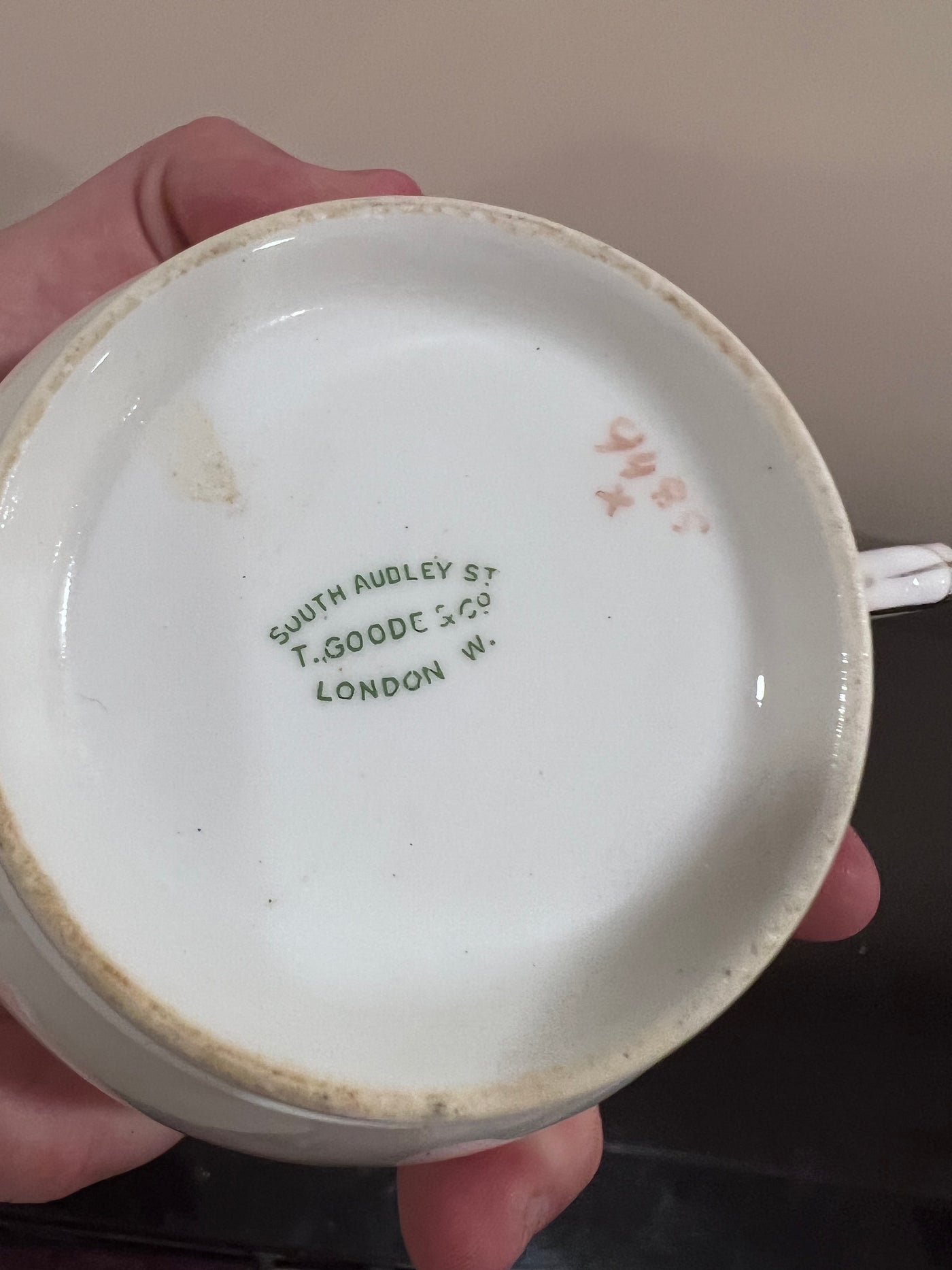 Vintage T. Goode & Co- 4 Cups & Saucers + 1 Bowls.