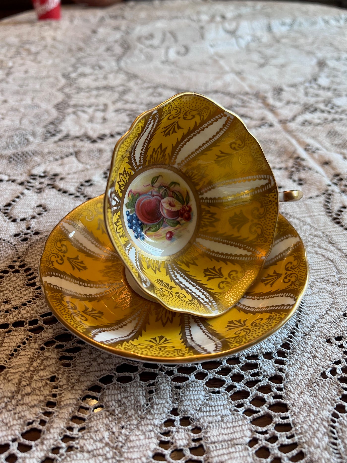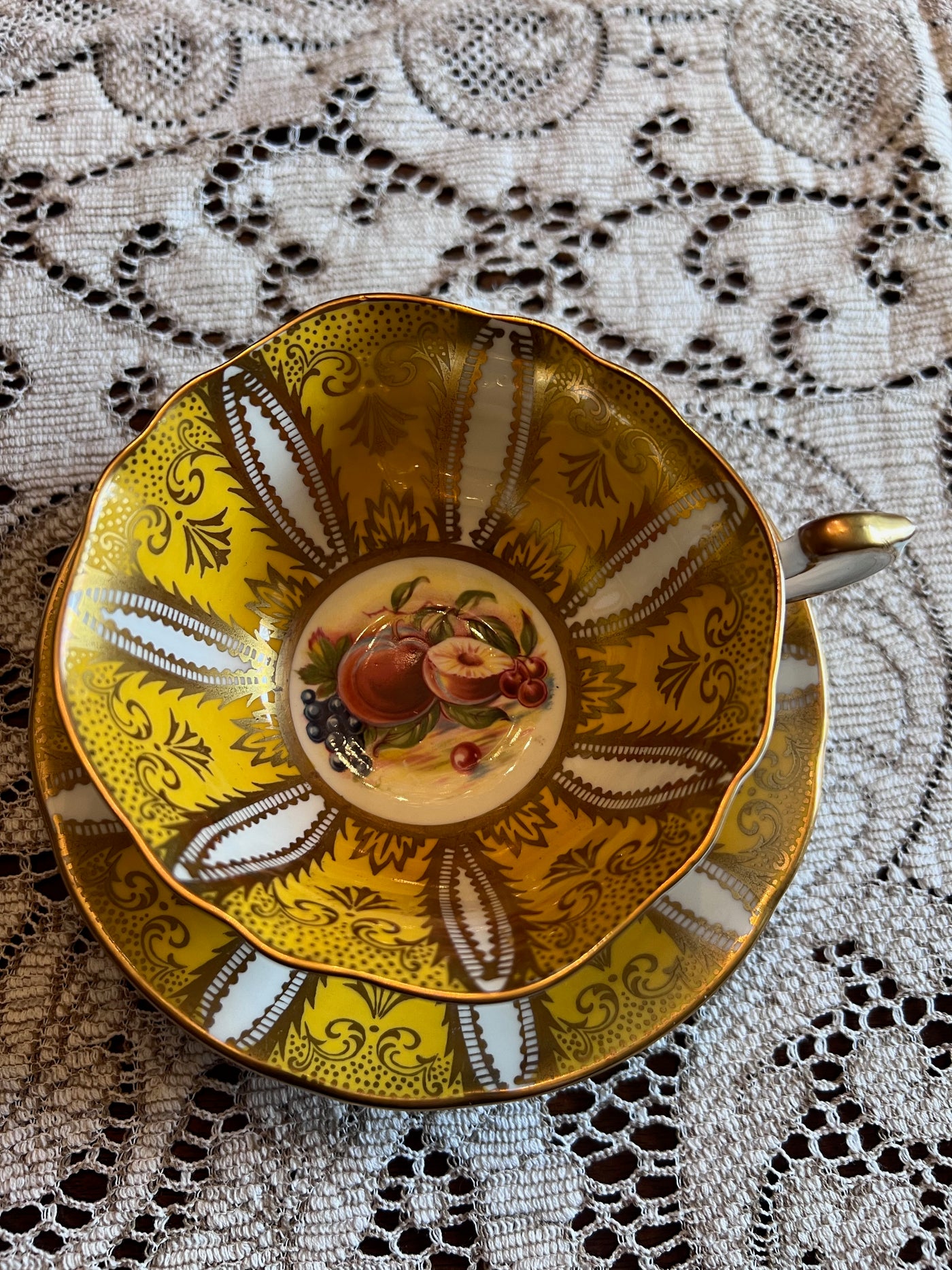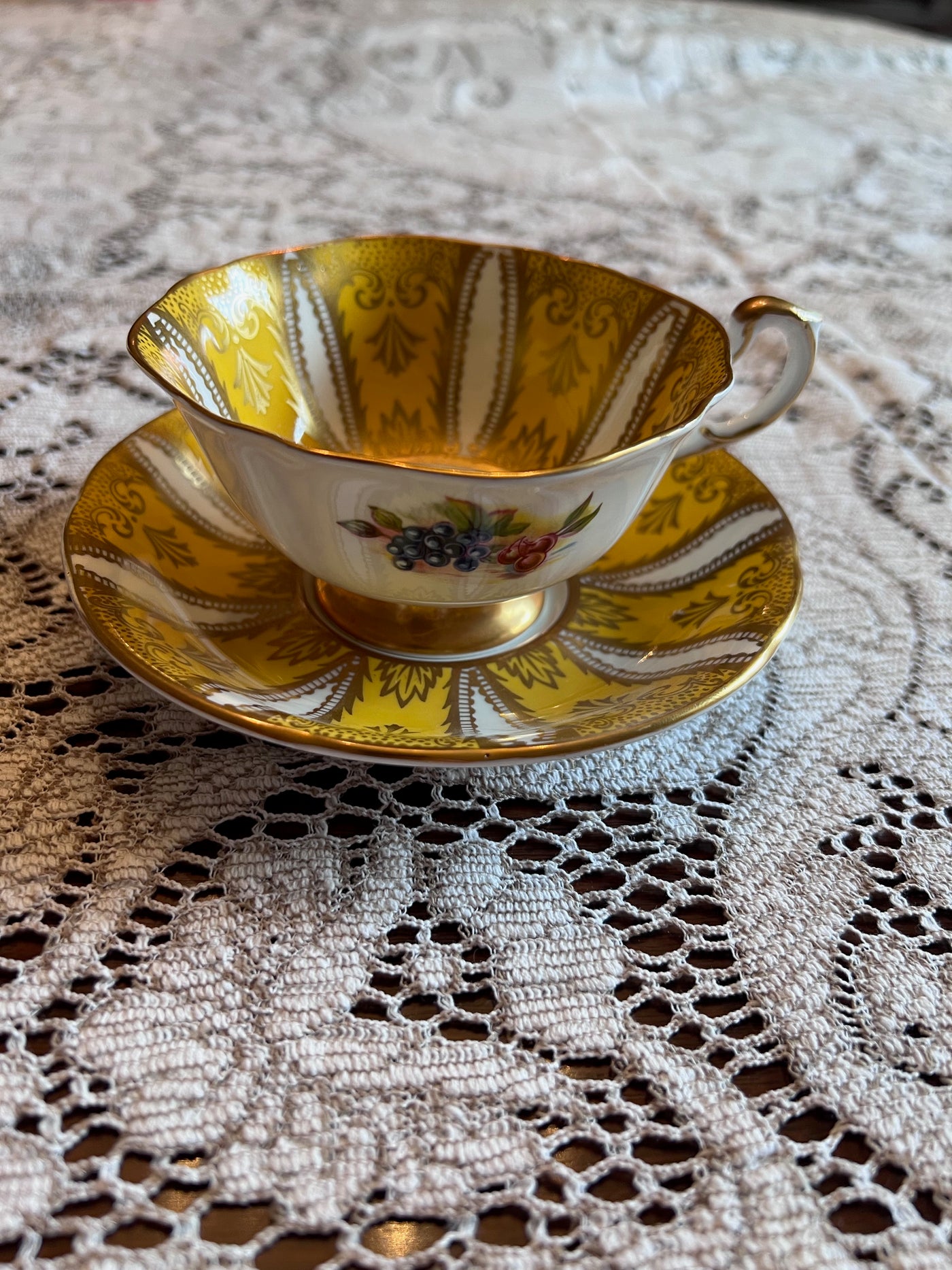 Paragon Yellow and Gold Orchard Panel Teacup and Saucer.