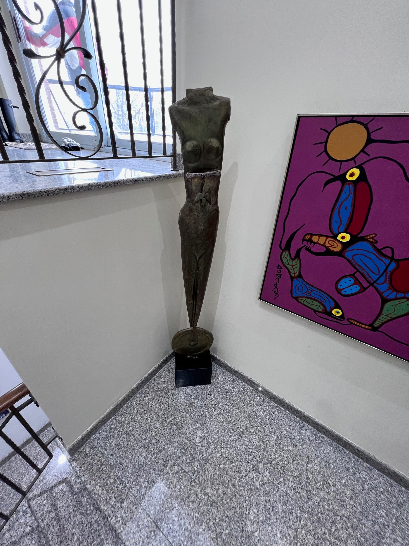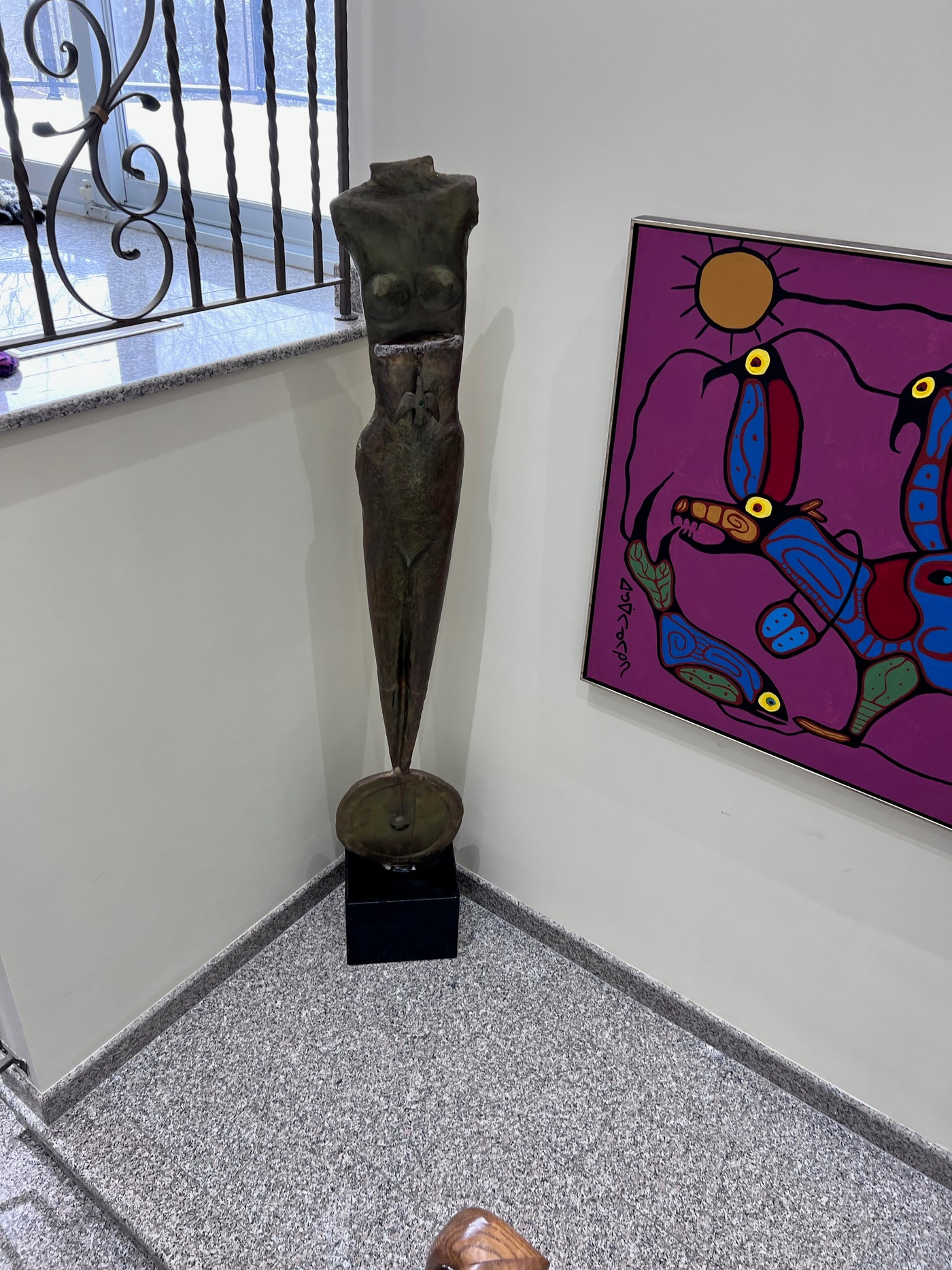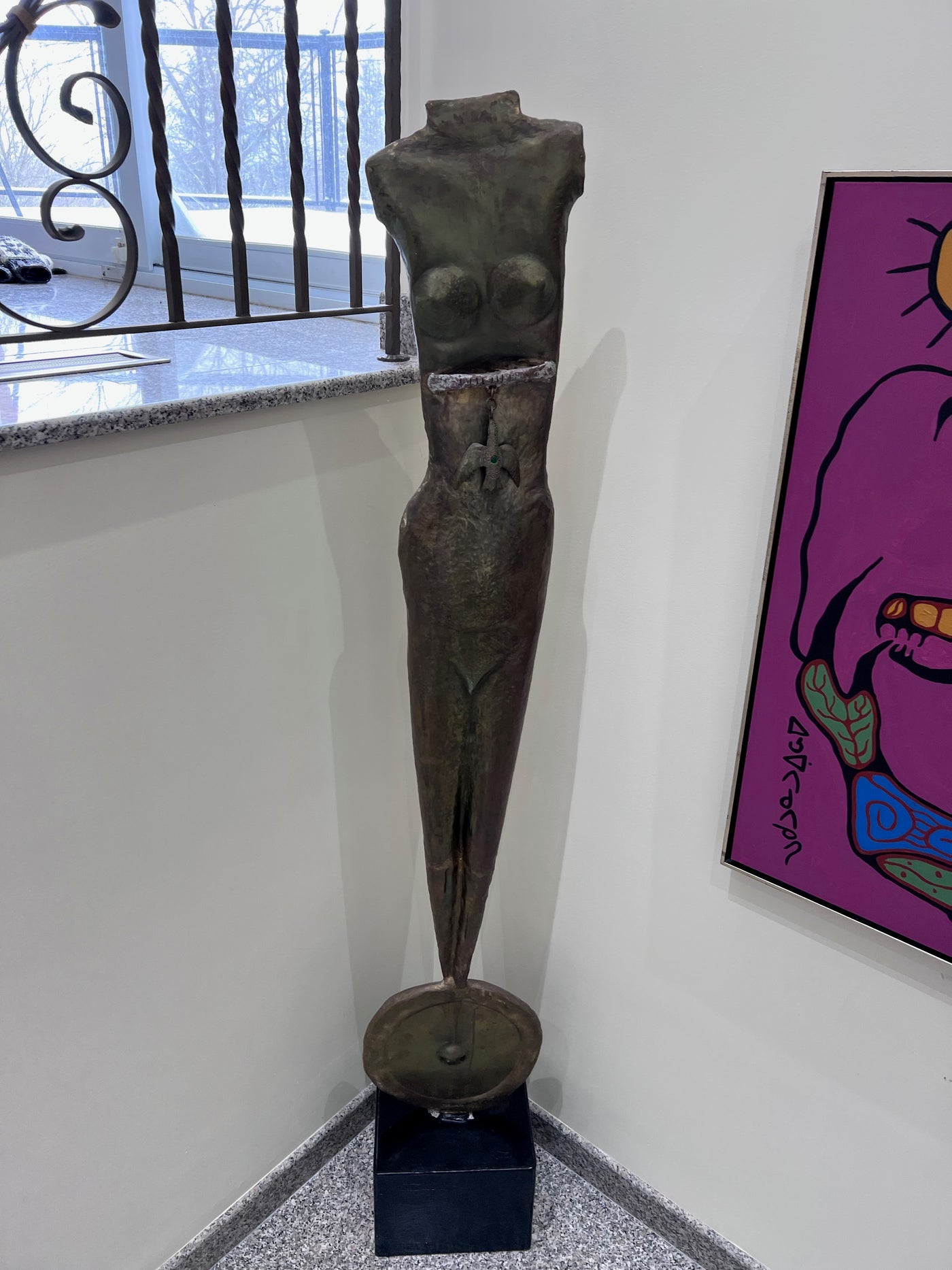 Ruben Zellermayer Painted Steel Sculpture- 'Female Torso w/Dove'.