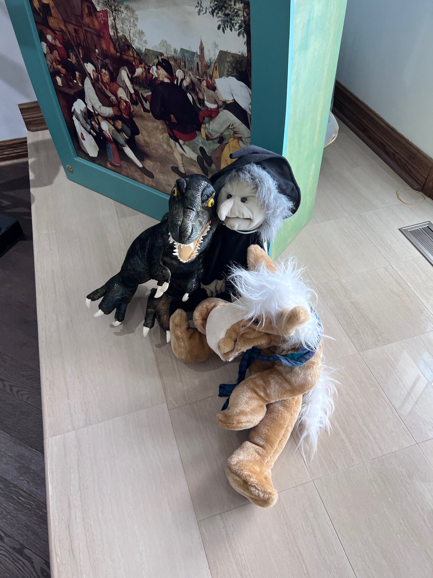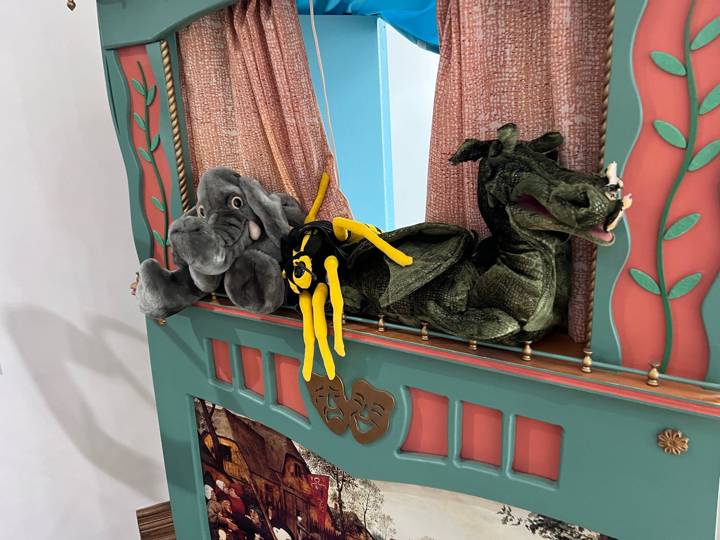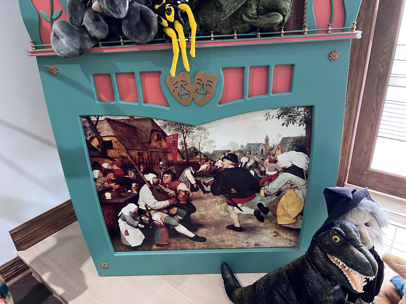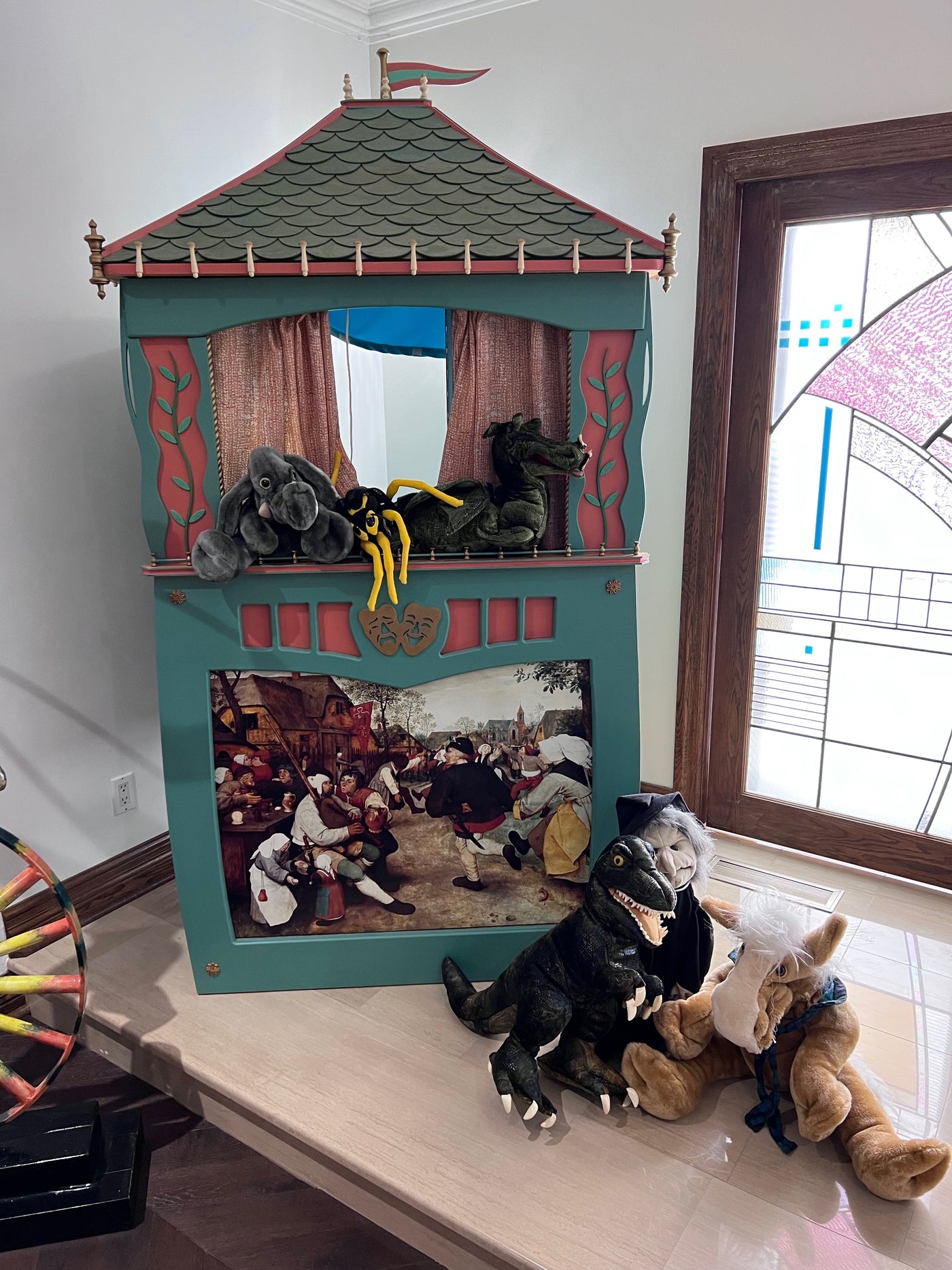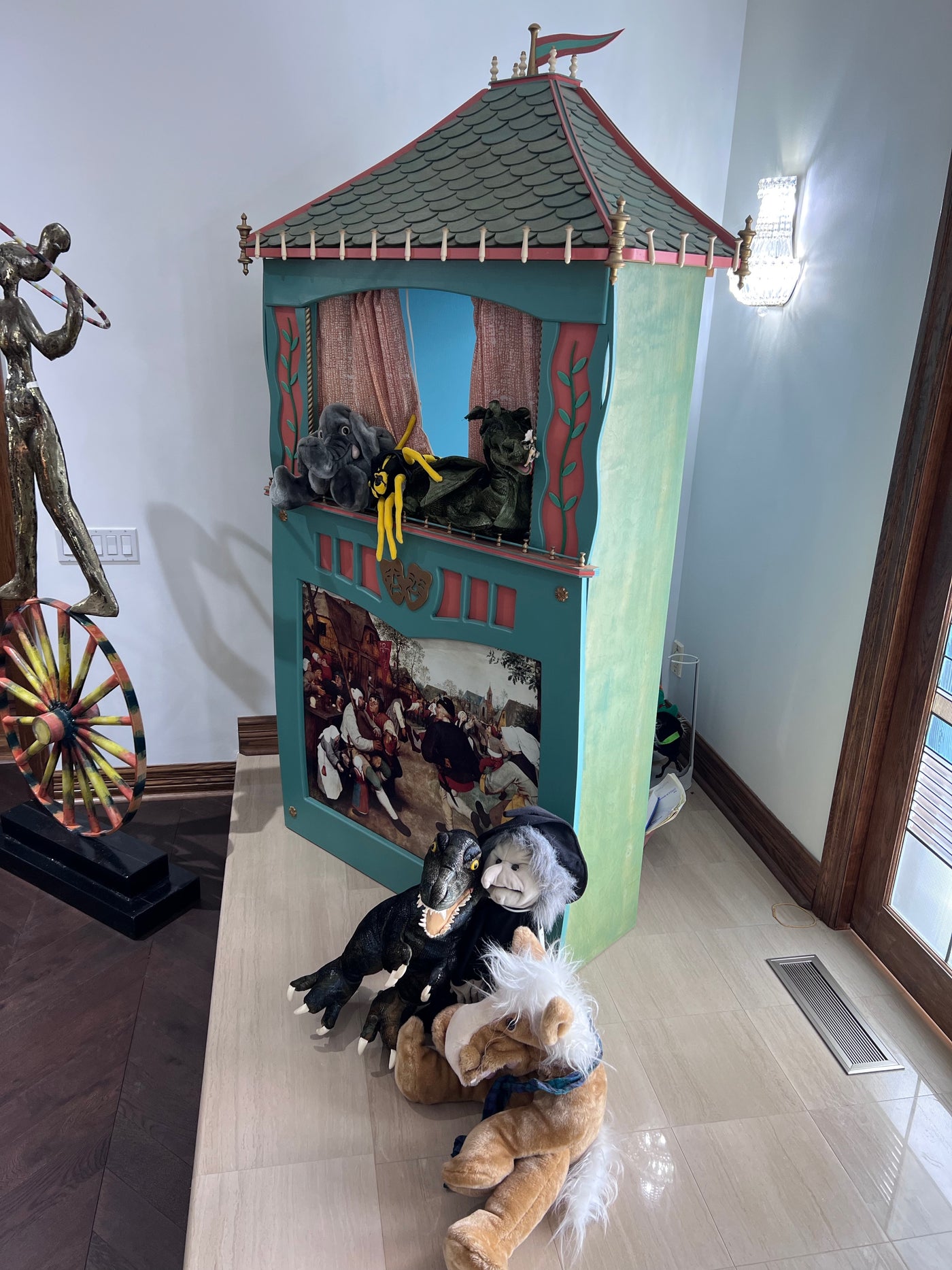 Custom Made Puppet Theatre with 'The Peasant Dance' Print. Includes a variety of different high quality puppets as shown in the pictures.