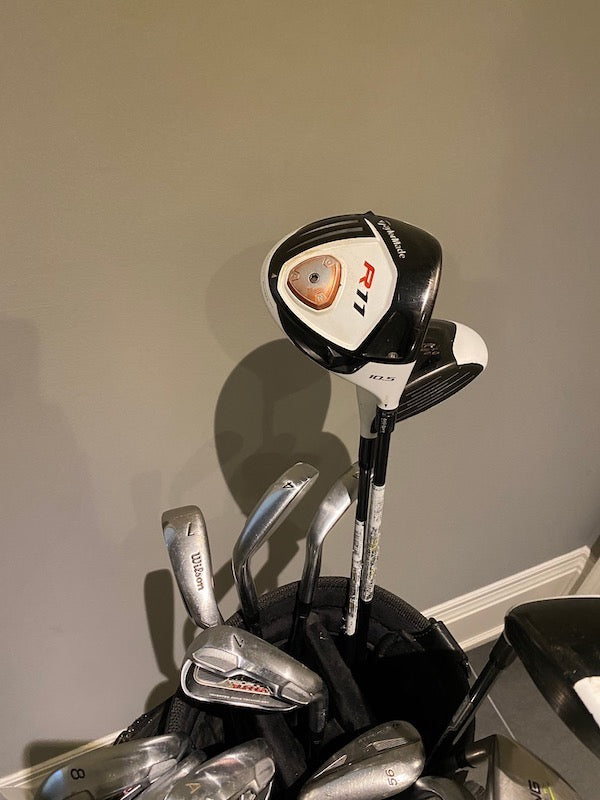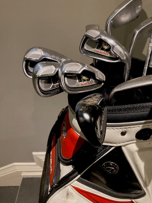 Men's Tour Burner Irons + Taylormade R11 Driver & Hybrids + Taylormade Burner Staff Cart Bag.