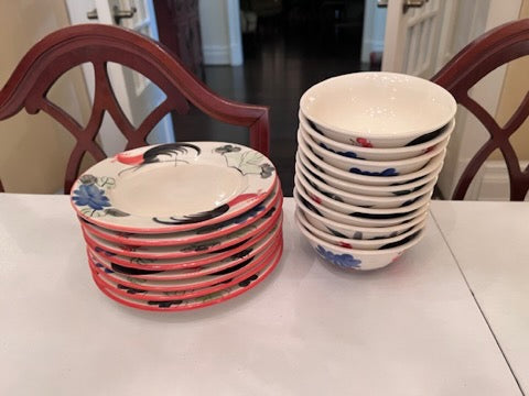 Handpainted Kook Kai Lot- 8 Plates, 11 Bowls.