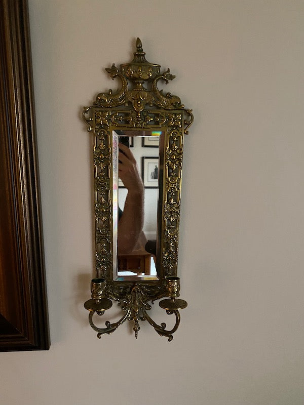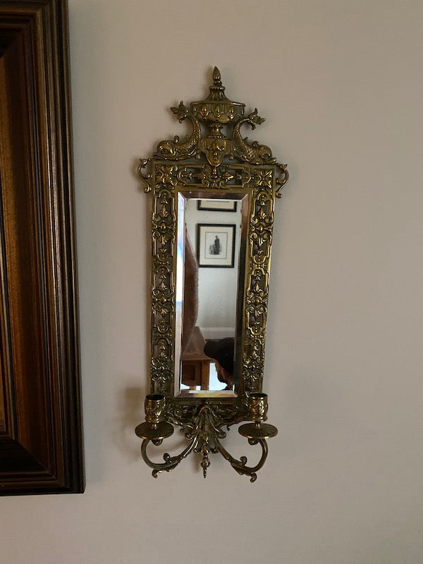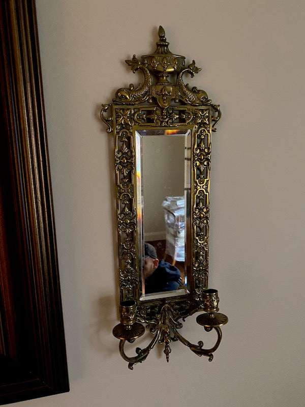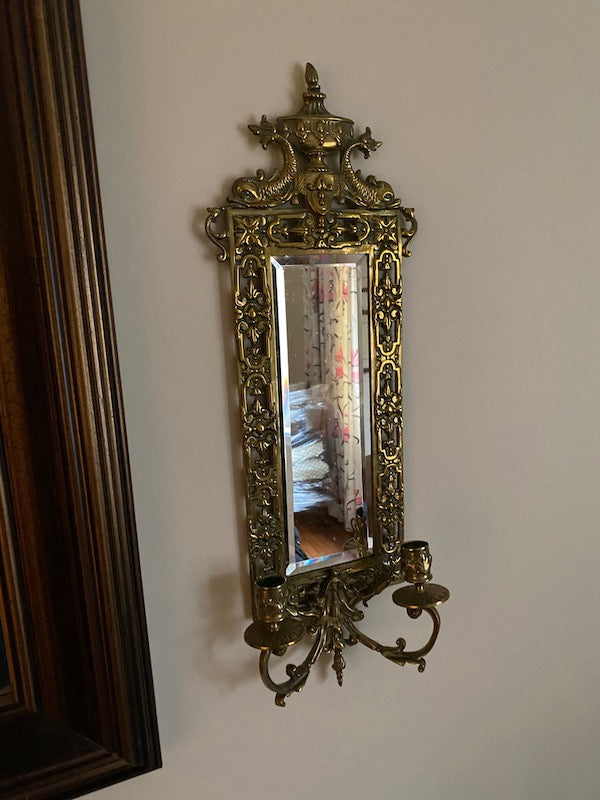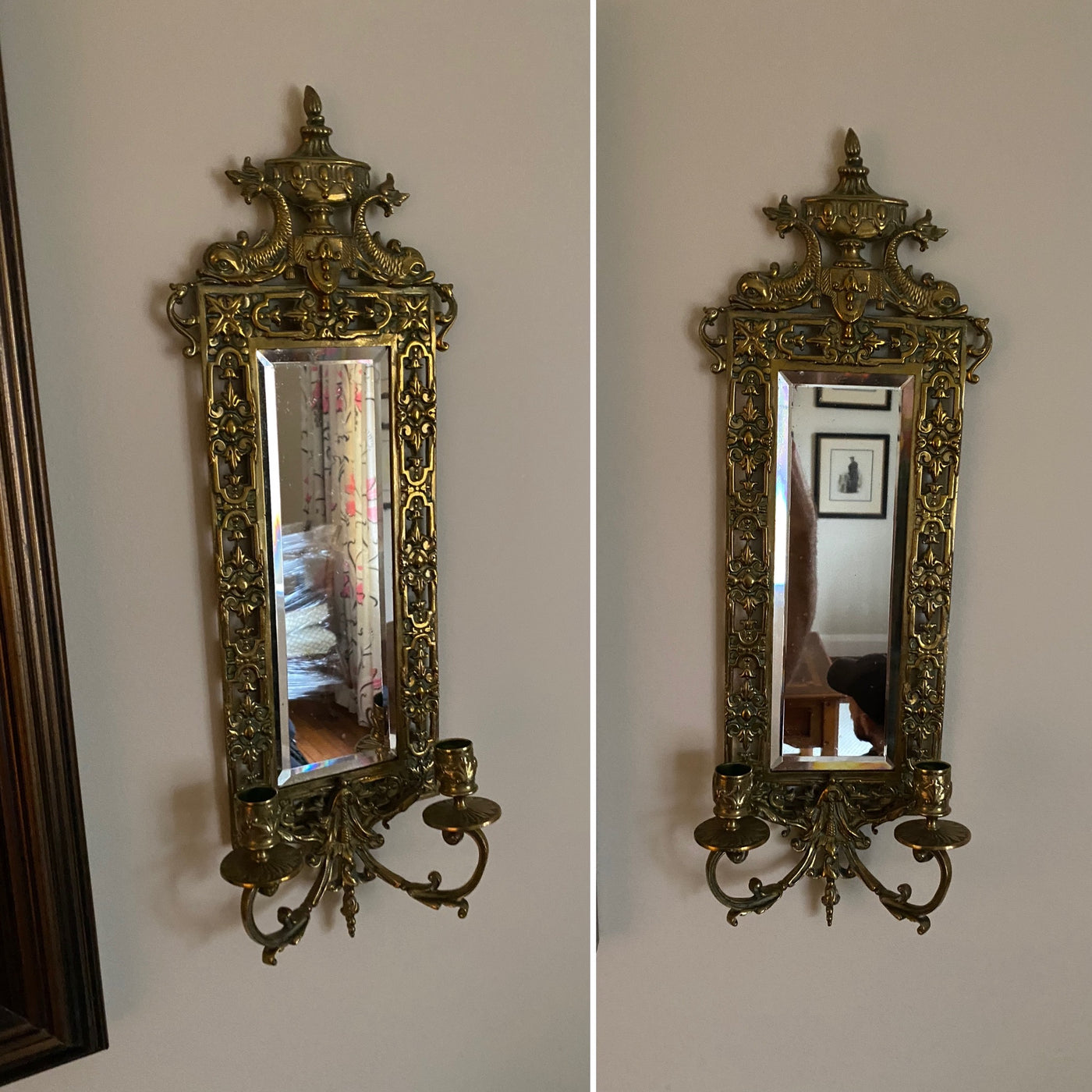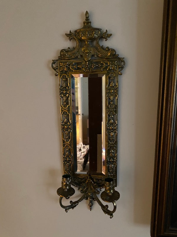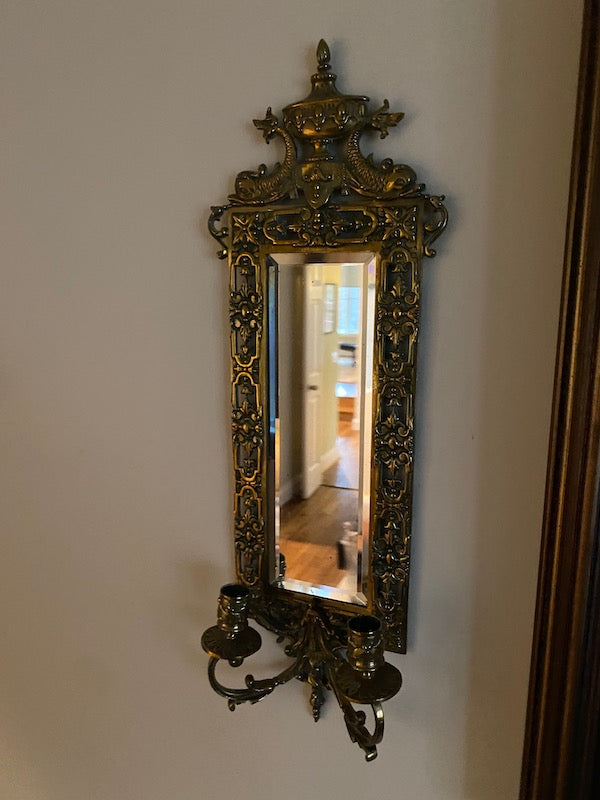 Pair of American Victorian Bradley & Hubbard 3502 Gilt Mirrored Wall Mount Sconces
