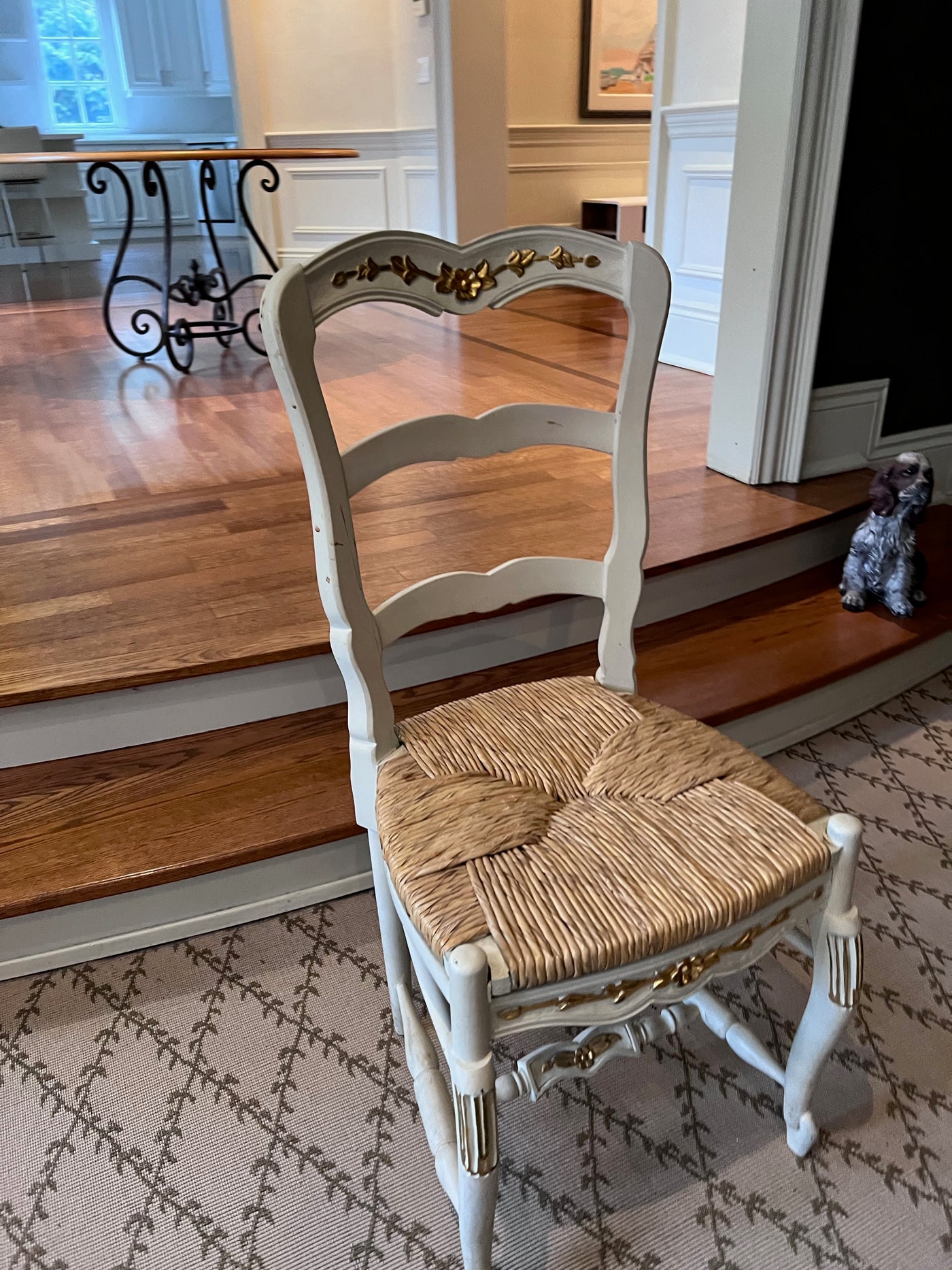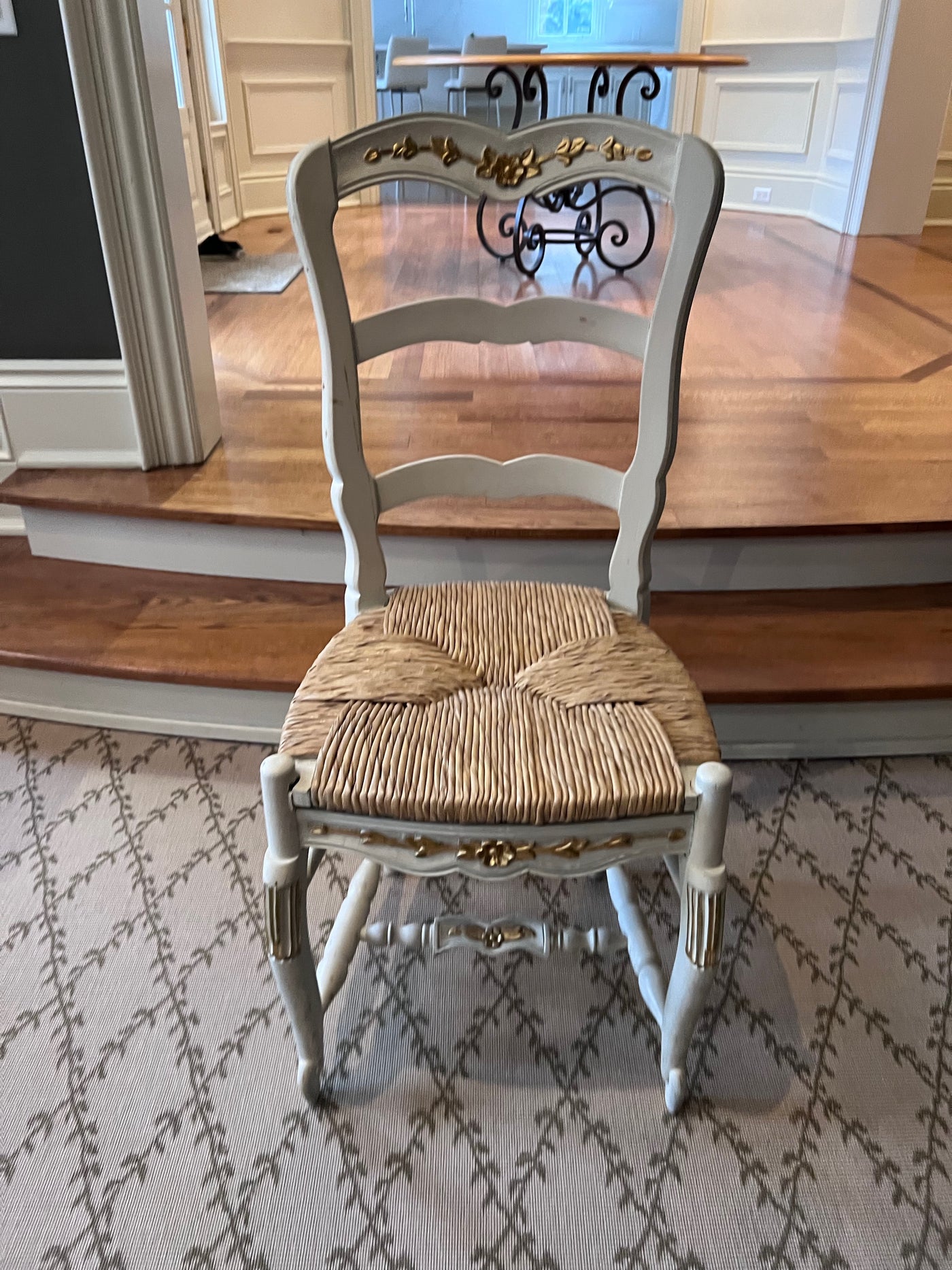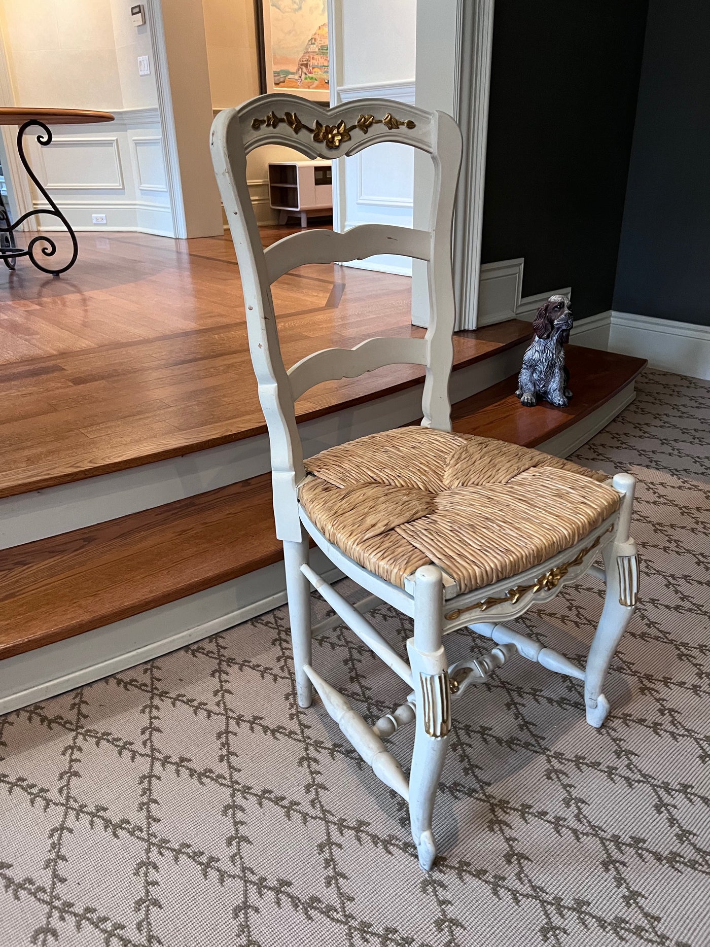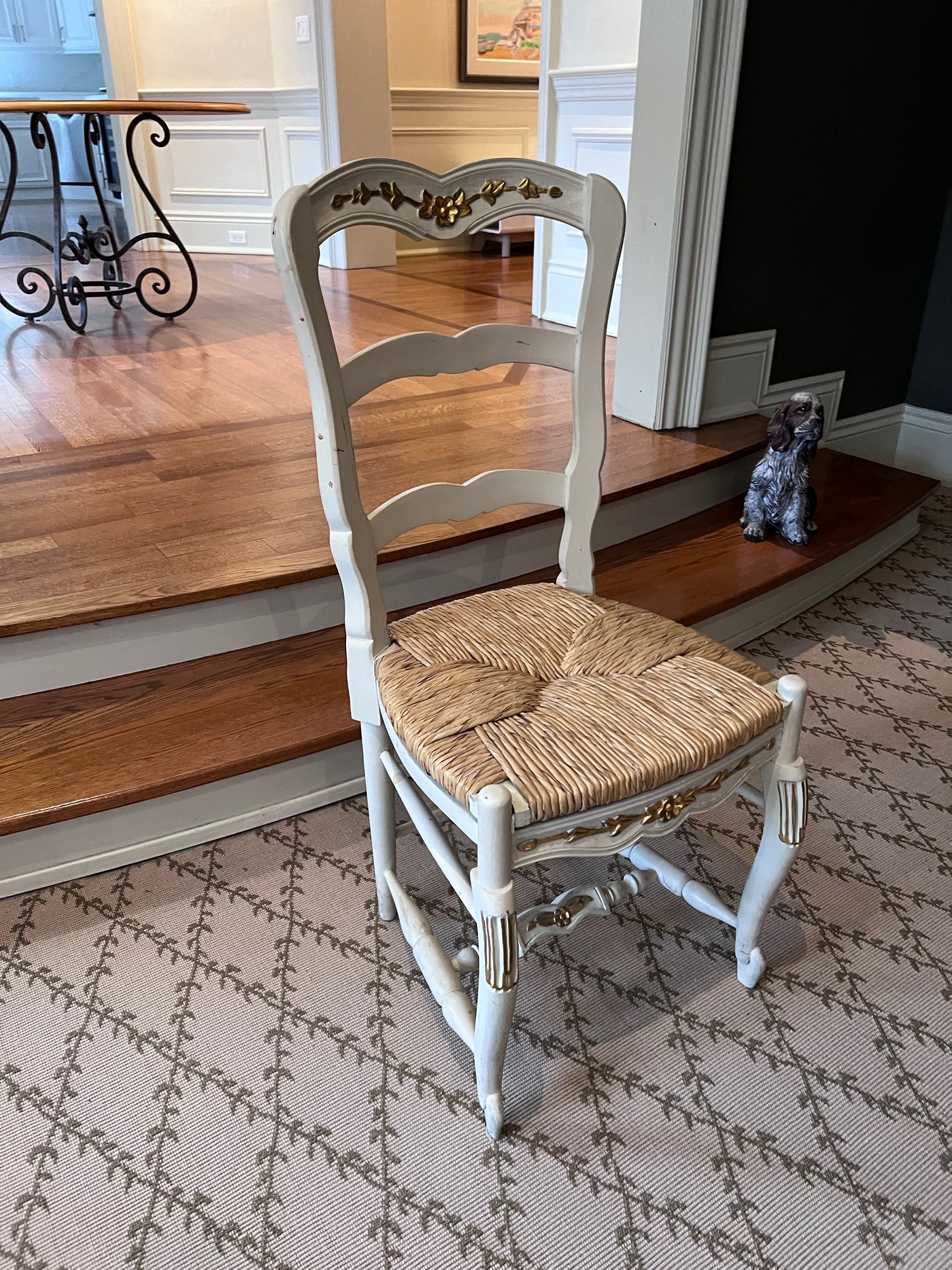 White French Provincial Ladder Back, Rush Seat Dining Chair.