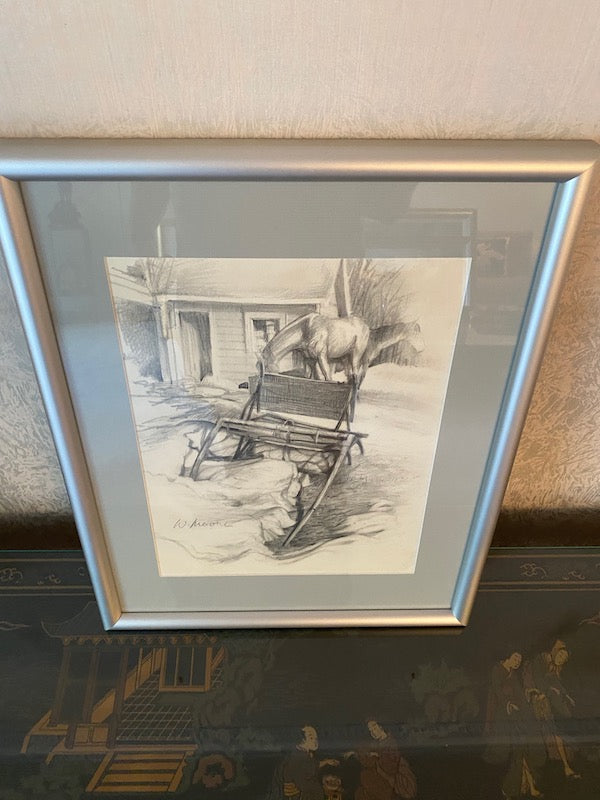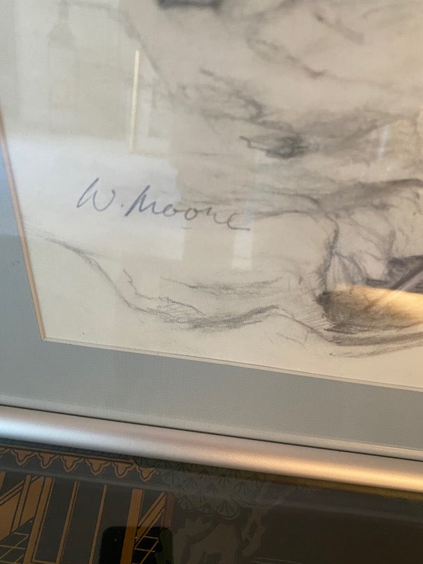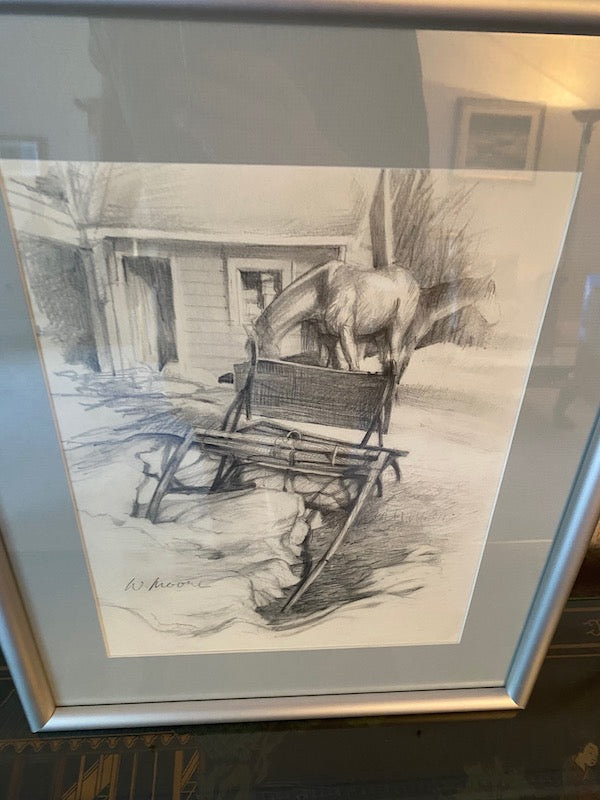 Signed & Framed Etching, Horses by W. Moore.