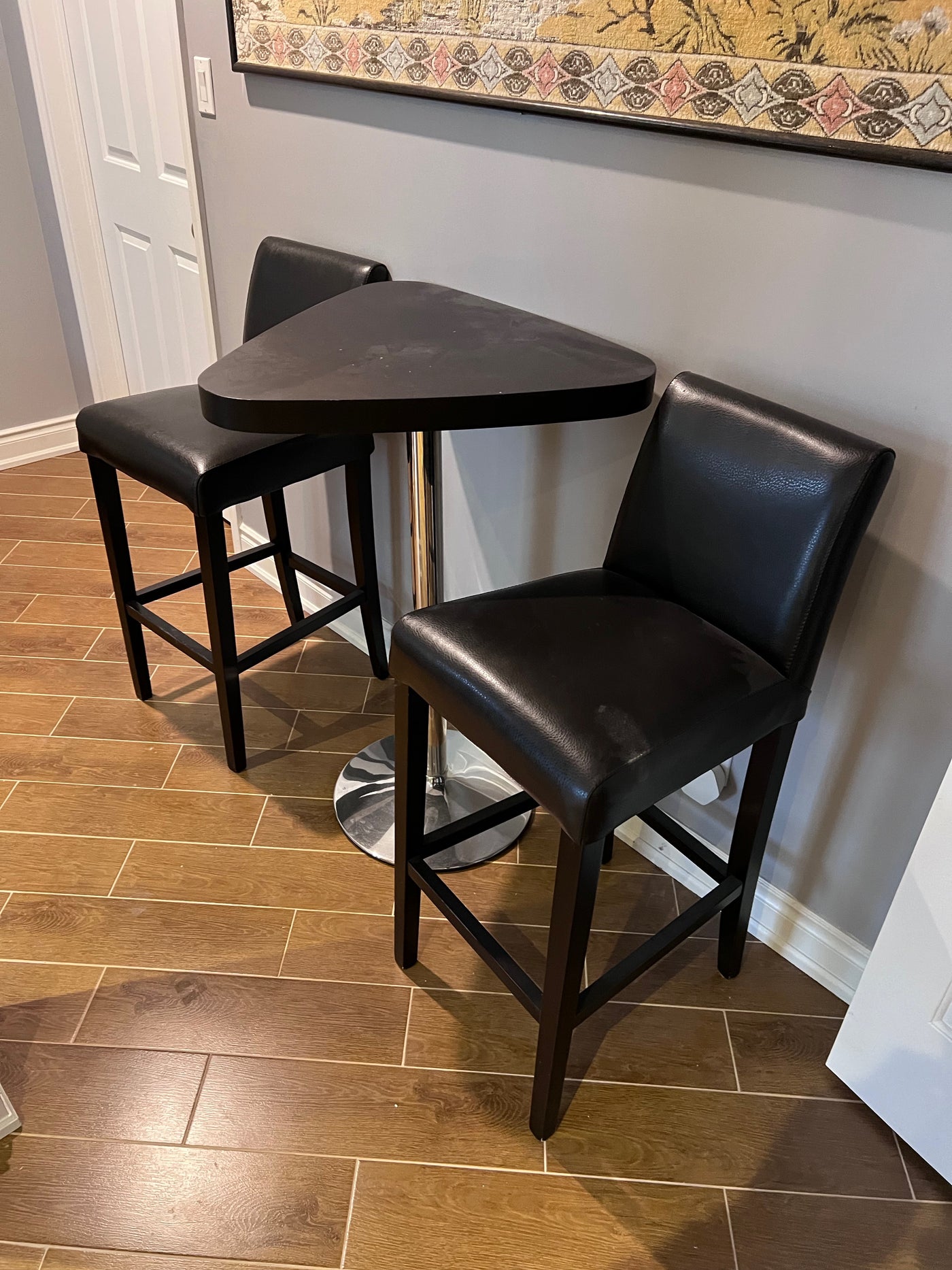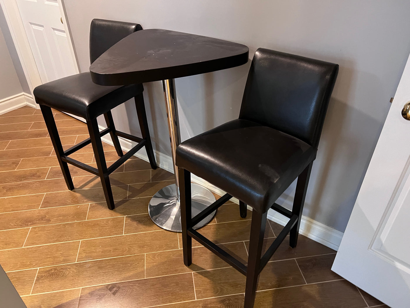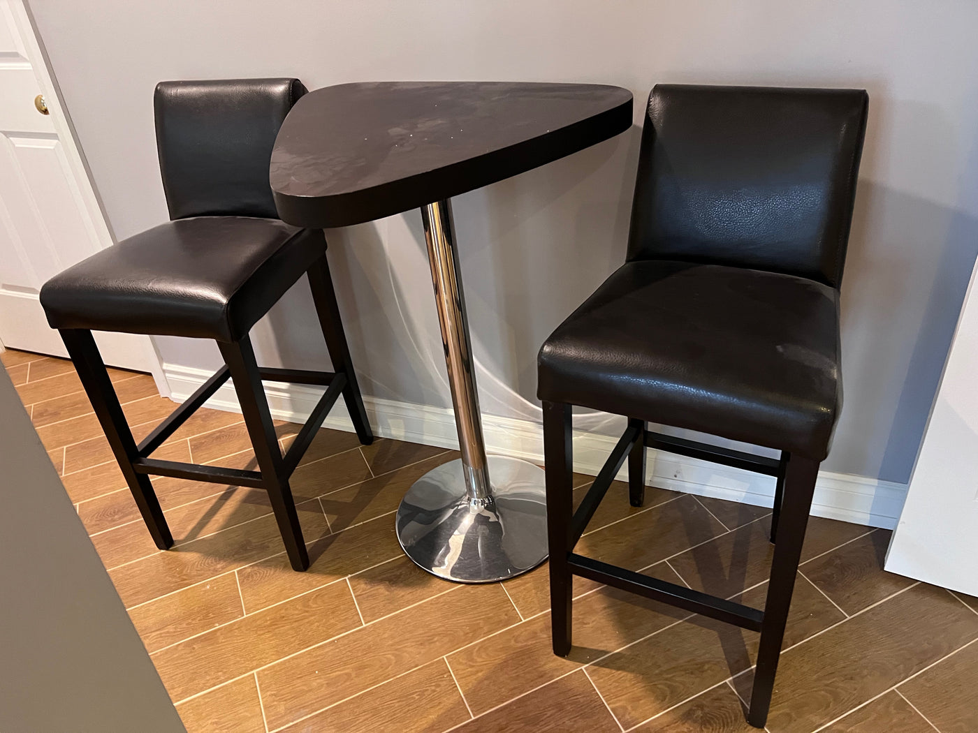 High-Top Bar Table + 2 Faux Leather Stools.