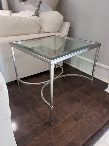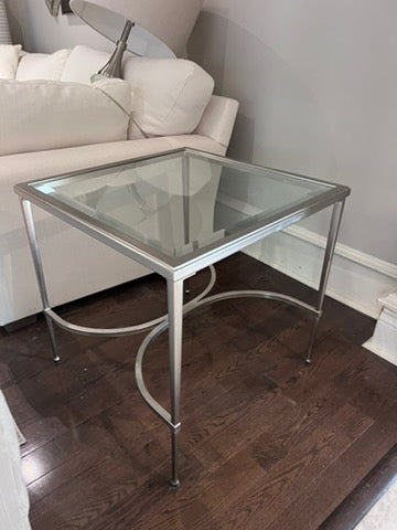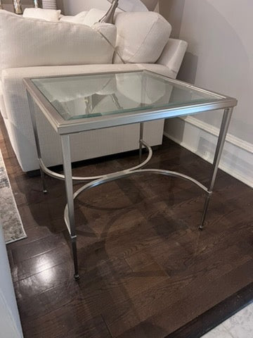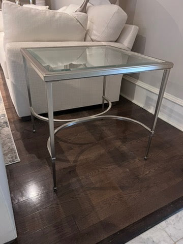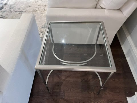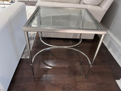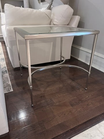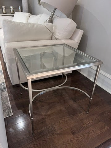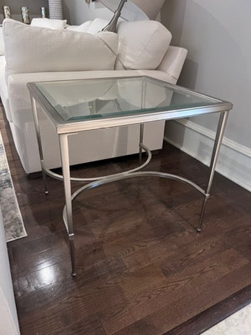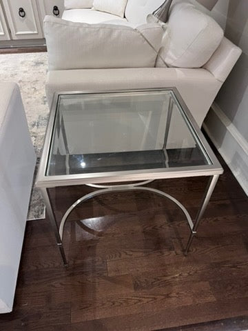Pair of Decor-Rest TRANSITIONAL METAL END TABLES WITH GLASS TOP.