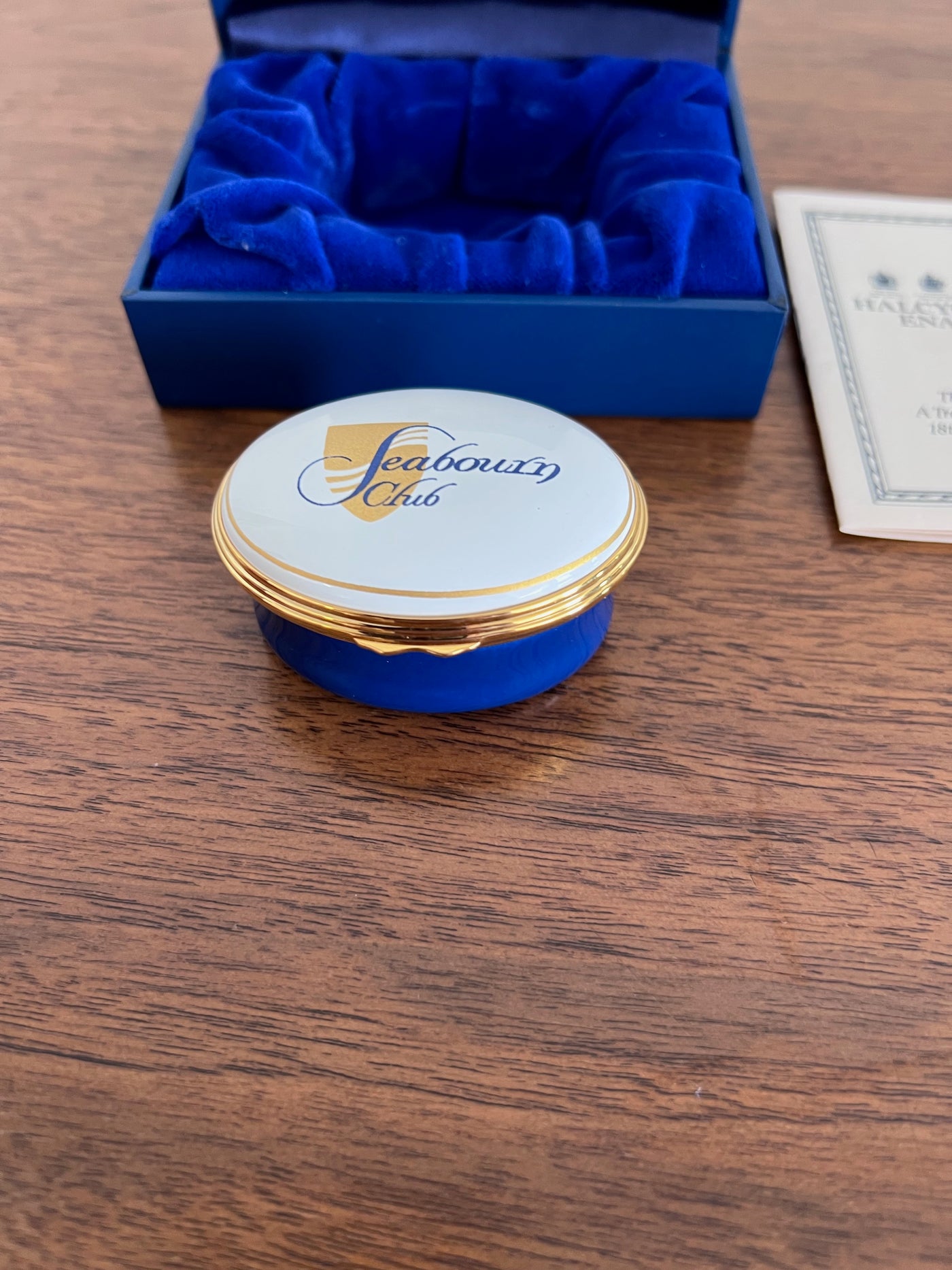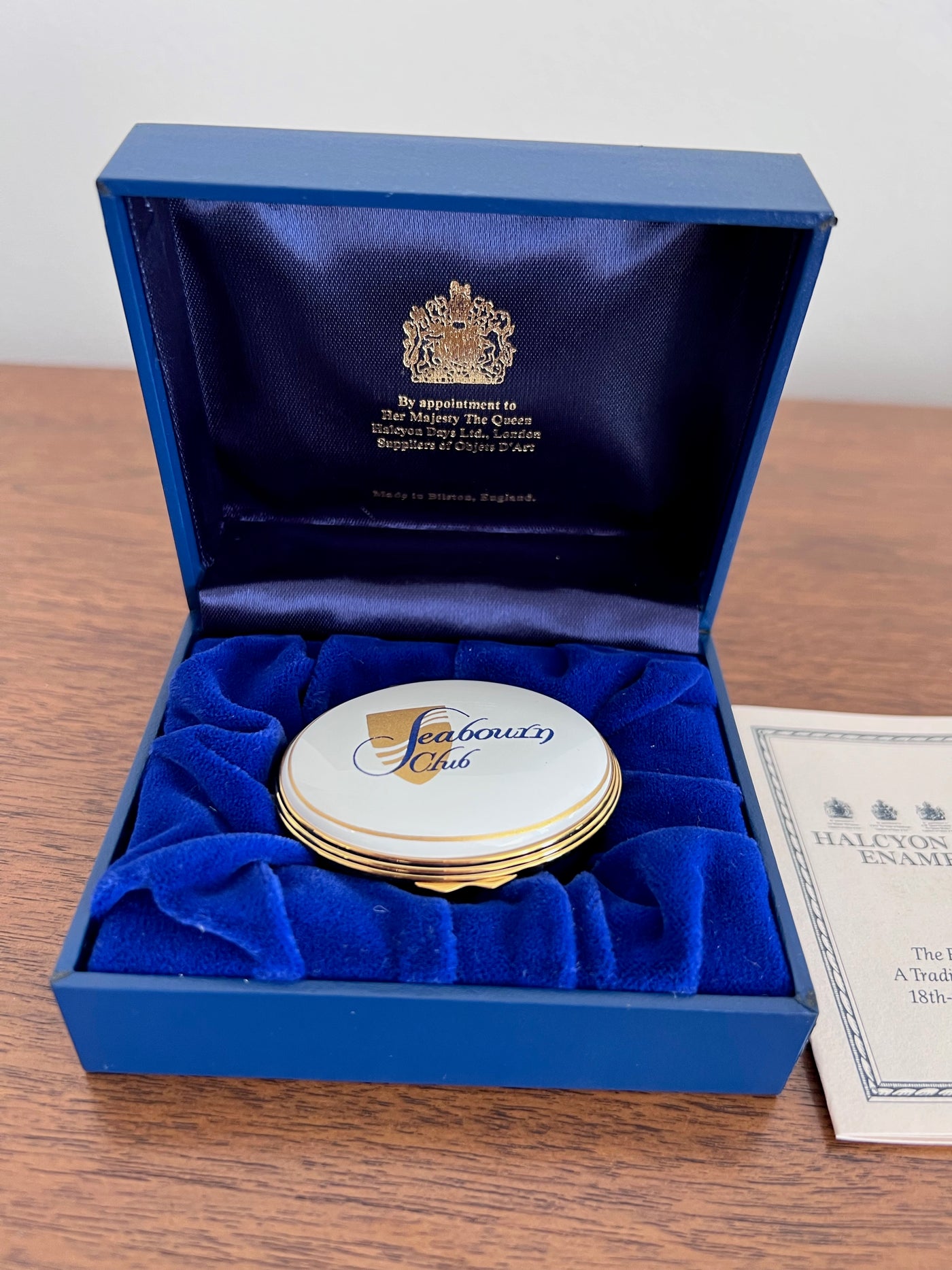 Rare Beautiful Halcyon Days Enamels "Seabourn Club" Trinket Box
