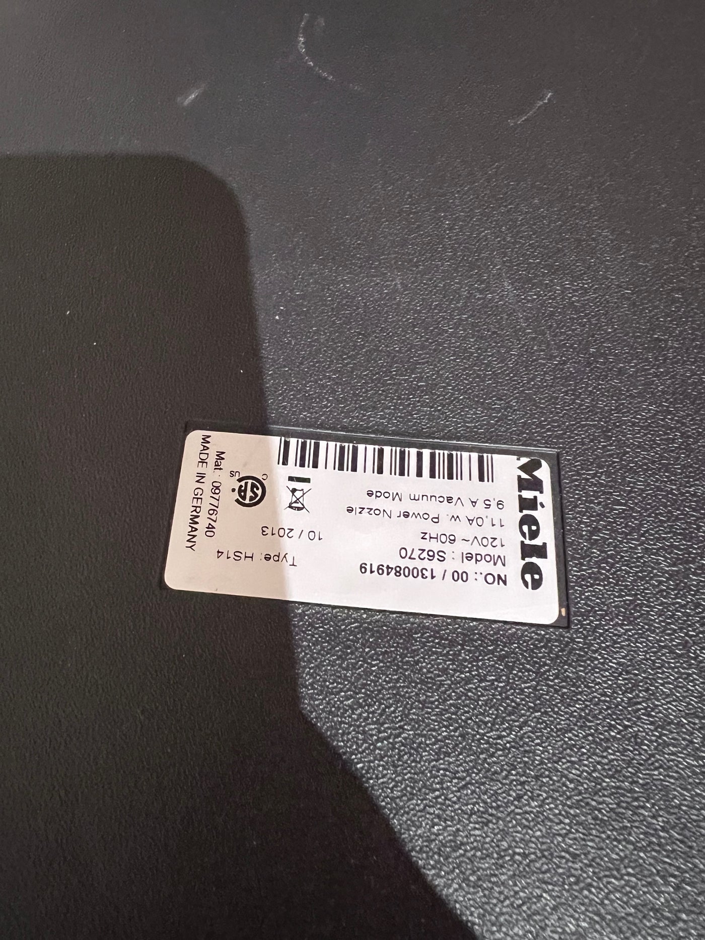 Miele S6270 Onyx Canister Vacuum.
