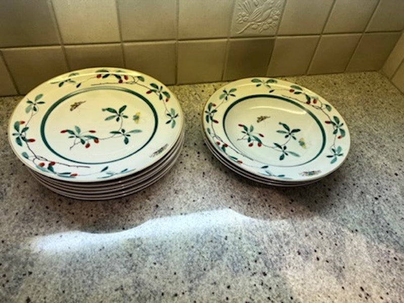 Mottahedeh Famille Vert- 6 Dinner Plates, 3 Bowls (RARE!)