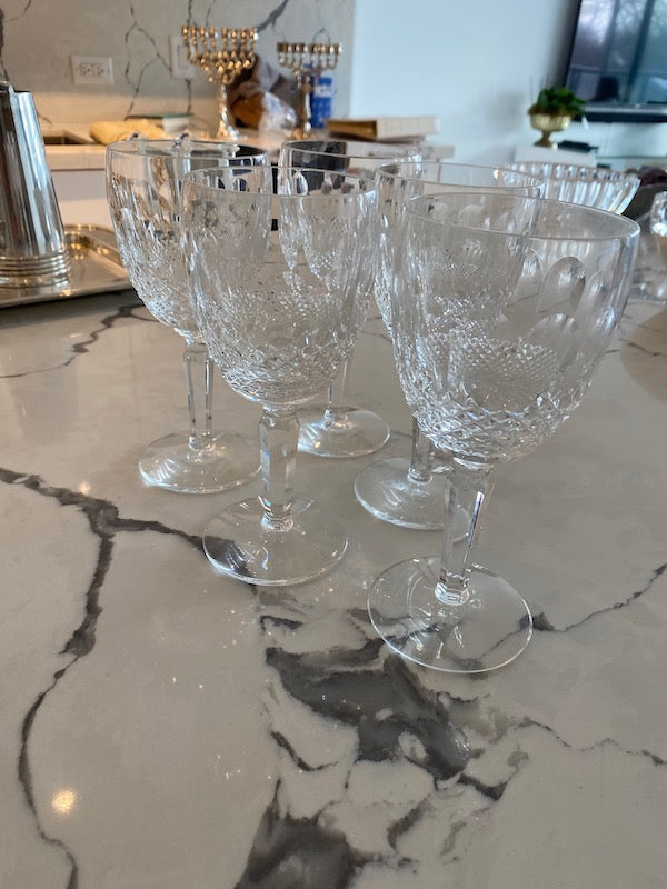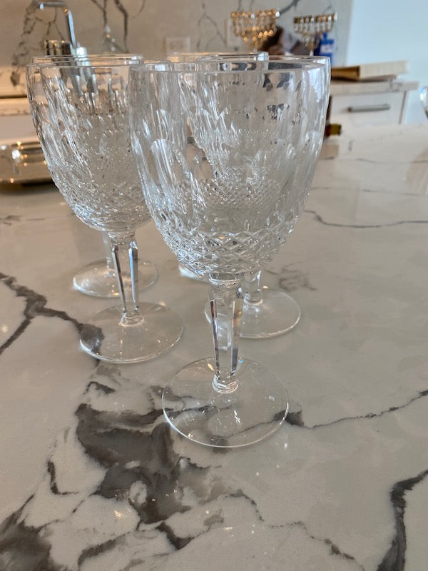 5 Waterford Colleen Tall Stem Water Crystal Glasses.