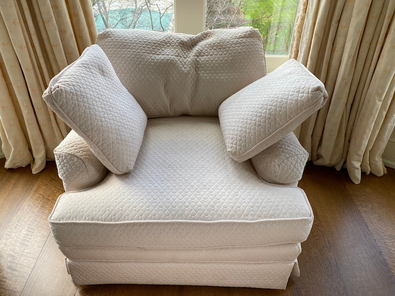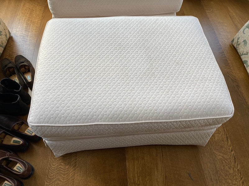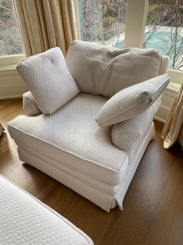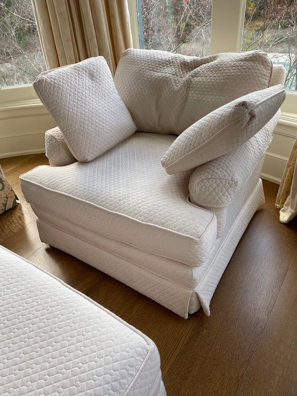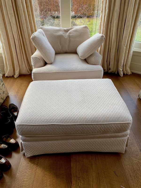 Large White Upholstered Armchair + Ottoman.