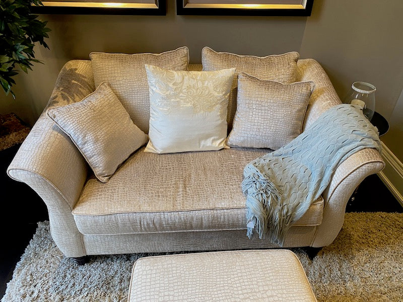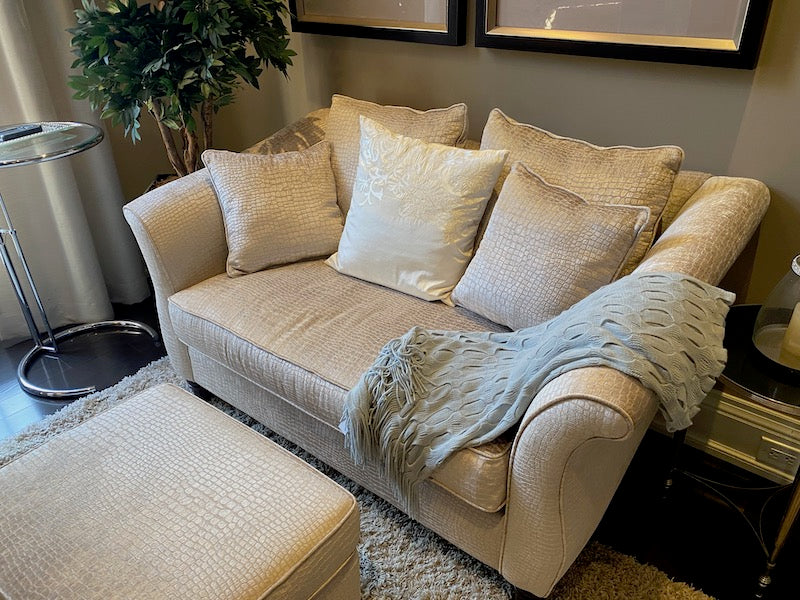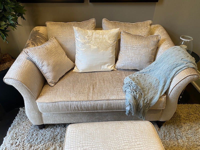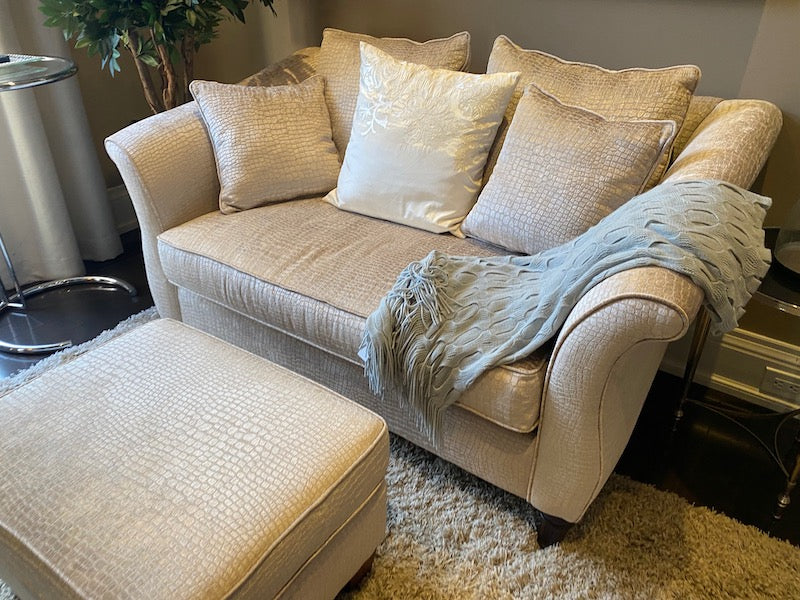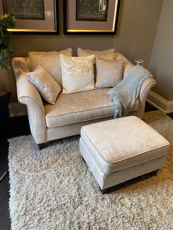 Decor-Rest 'Snakeskin Style" Upholstered Love Seat + Ottoman.