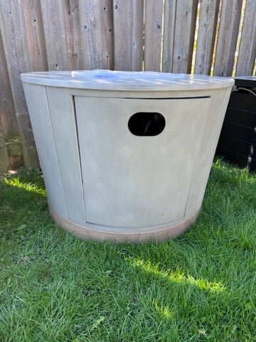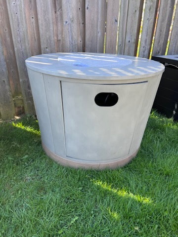 Concrete-Look- Grey Round Steel Propane Gas Fire Table (*retail price $900).