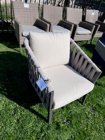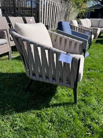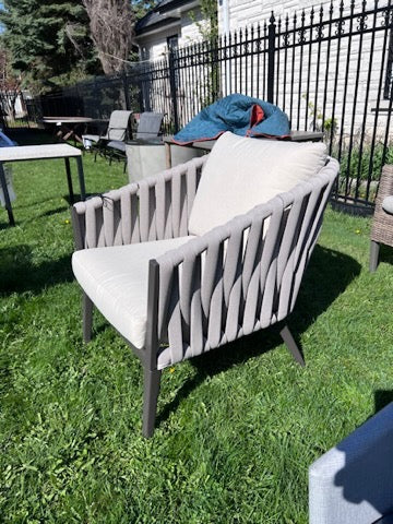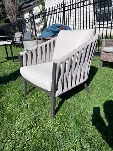 Steel Chair, Foam Cushioned Rope w/Grey Cushions.
