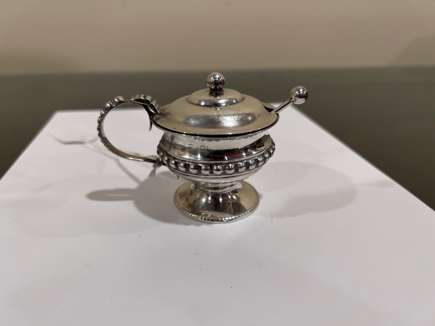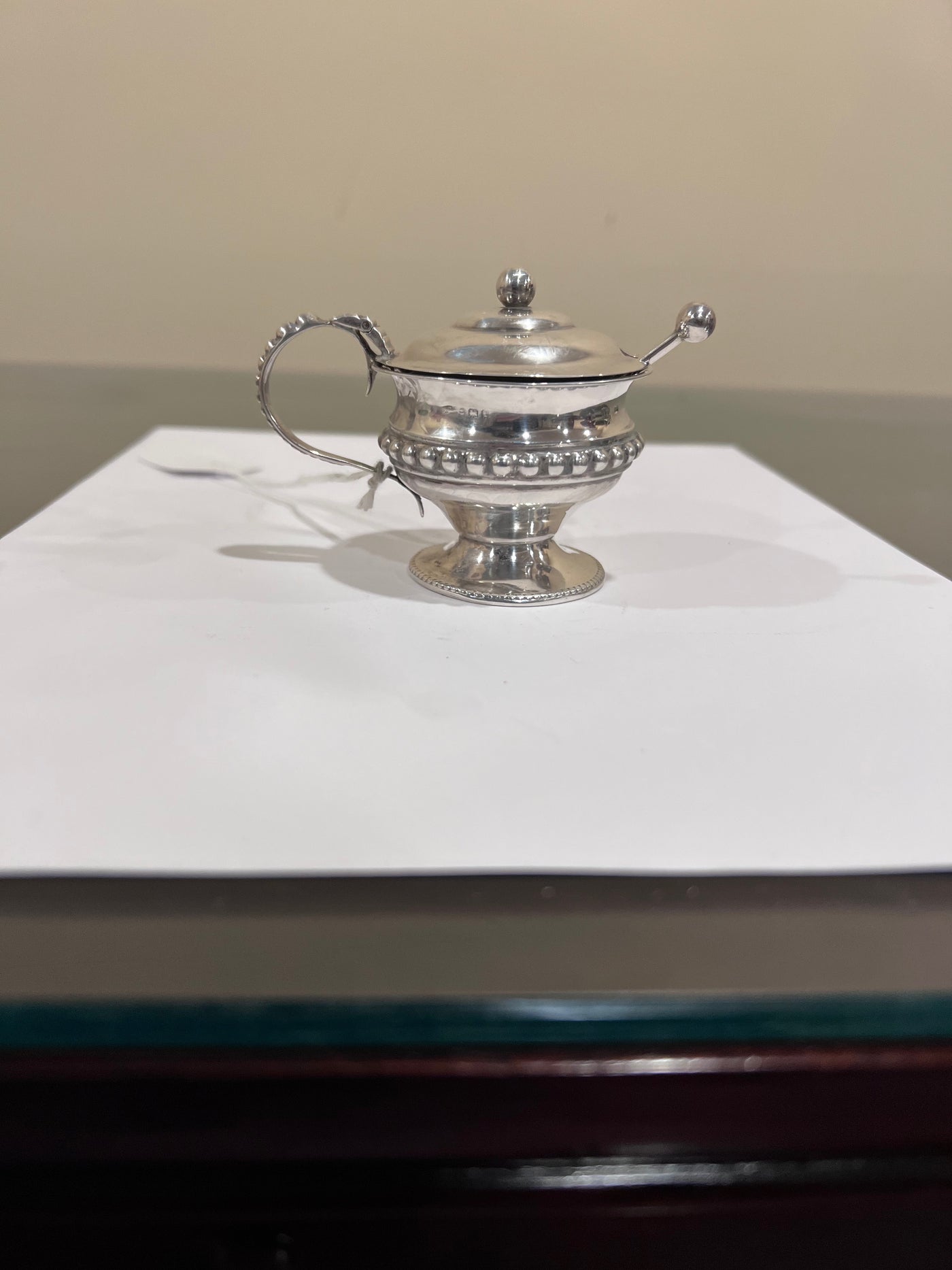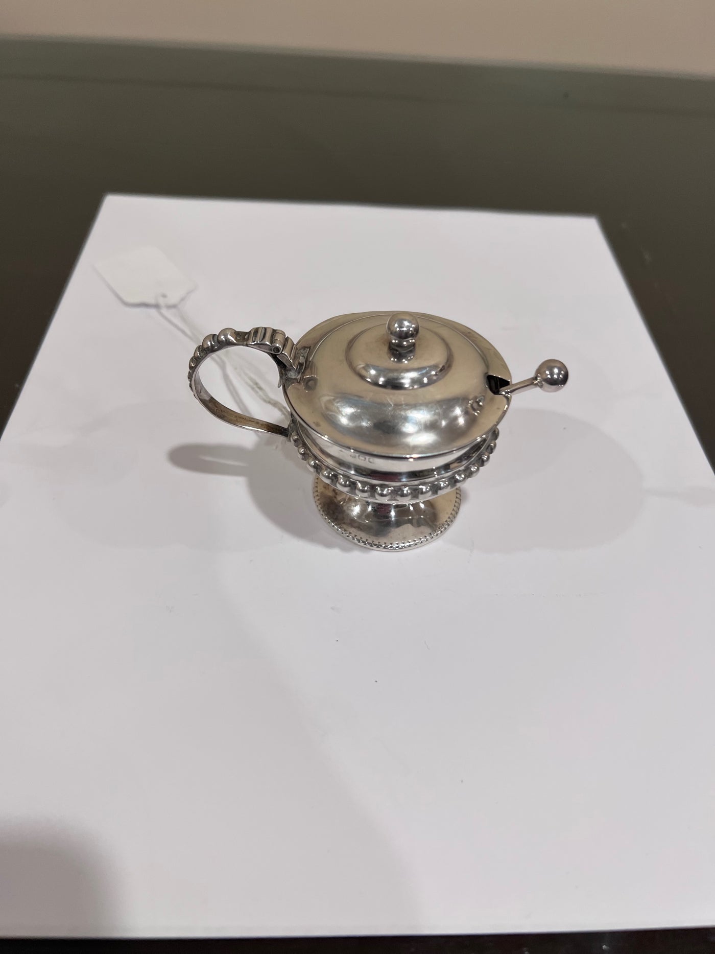 Sterling Silver Mustard Pot + Spoon- 51g.