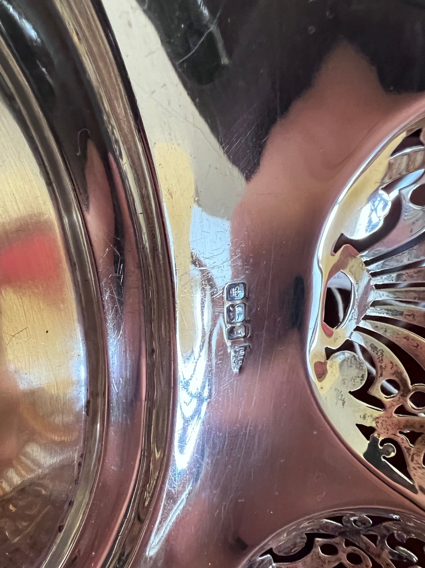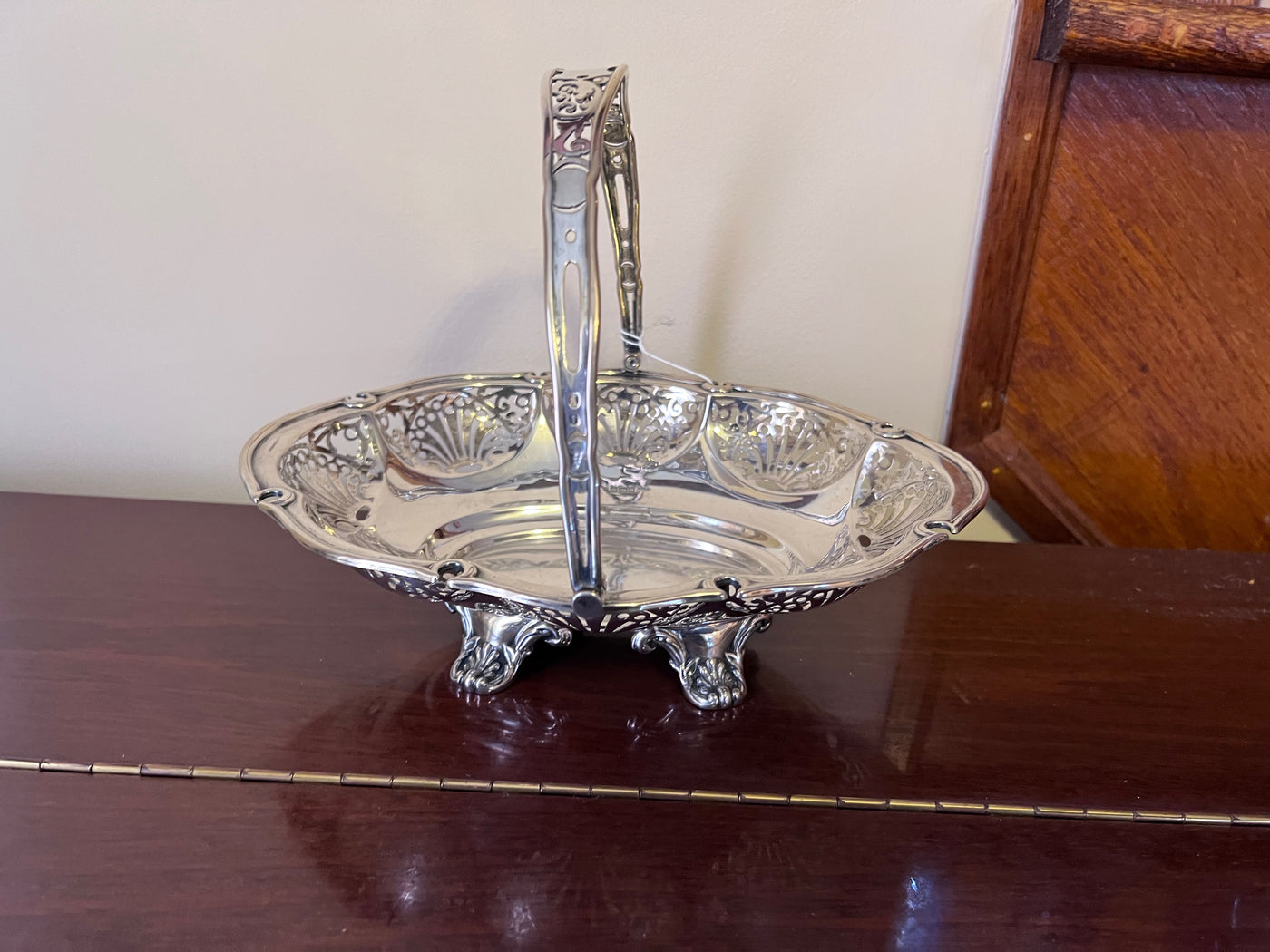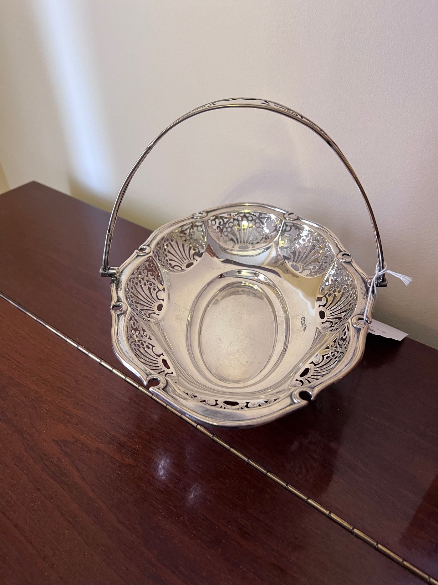 Sterling Silver Walker & Hall Basket with Handle, 10.5"w- 366g.