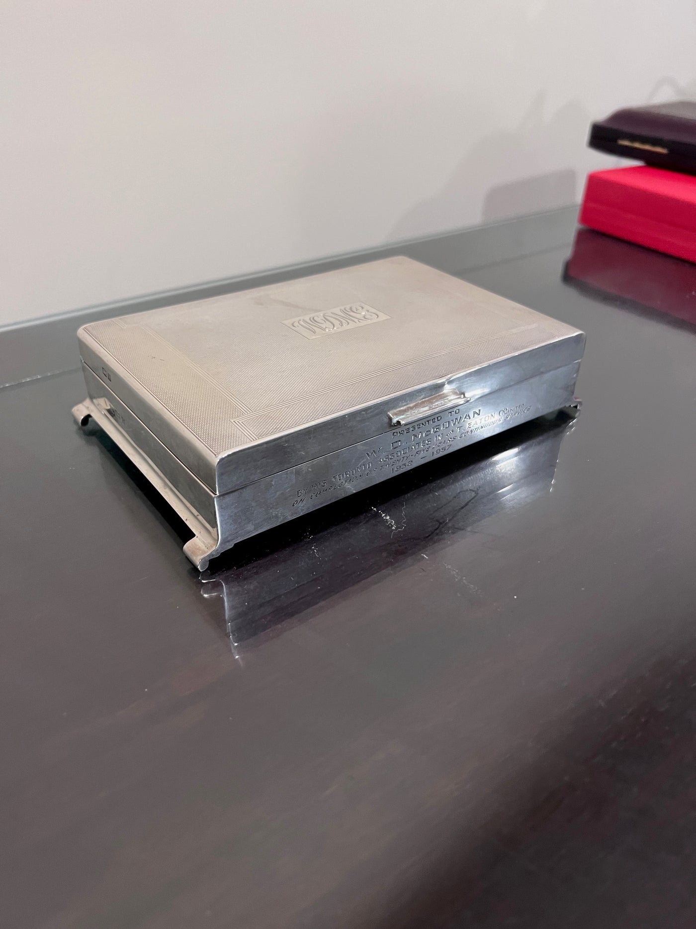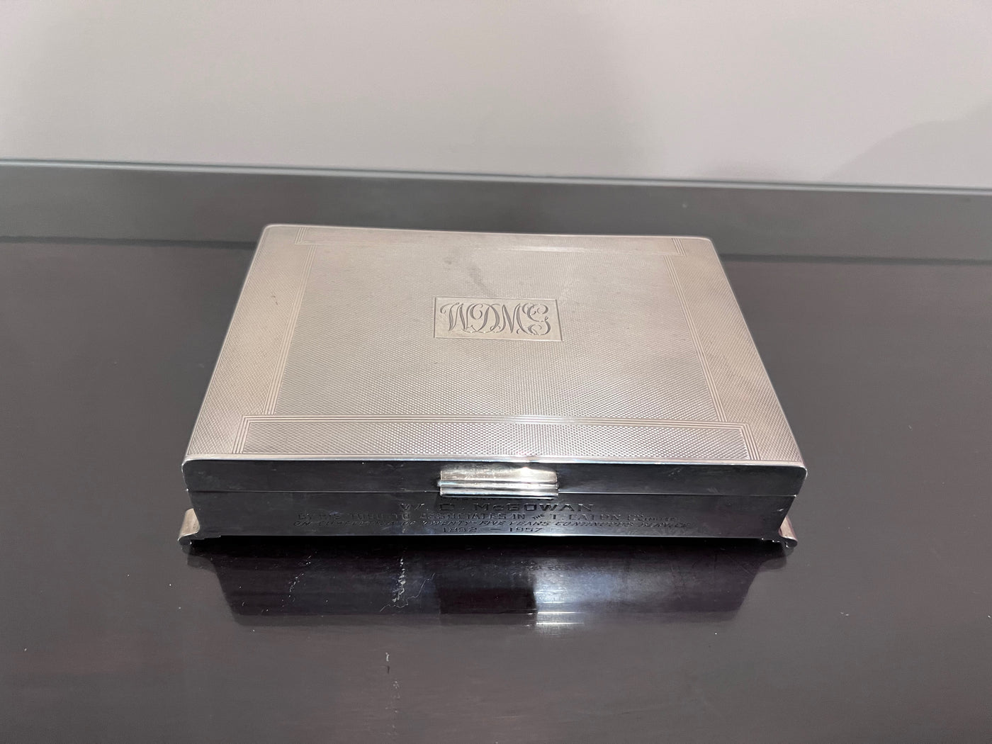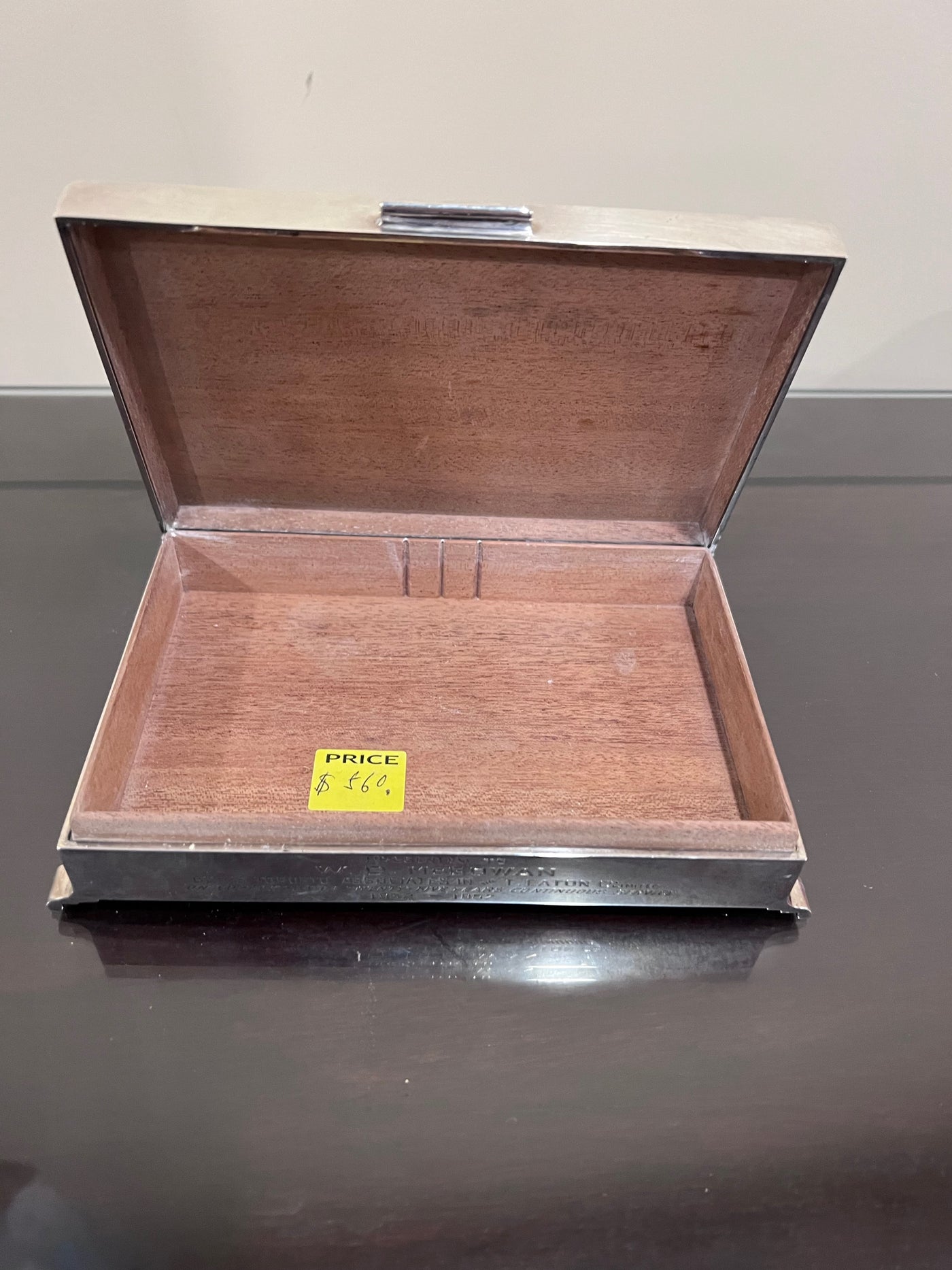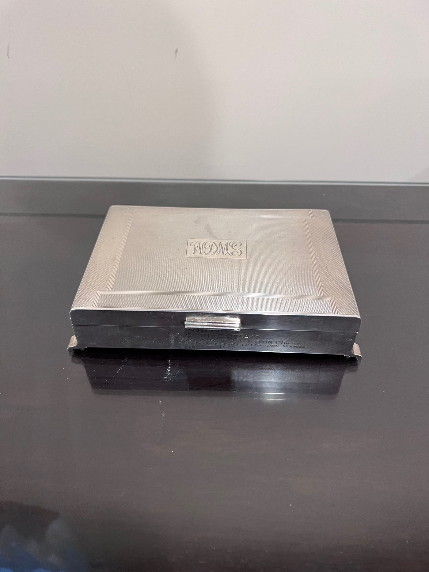 Sterling Silver Monogramed Box with Wood Liner- 563g.