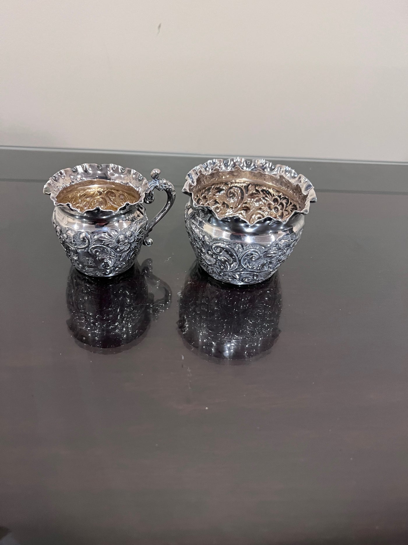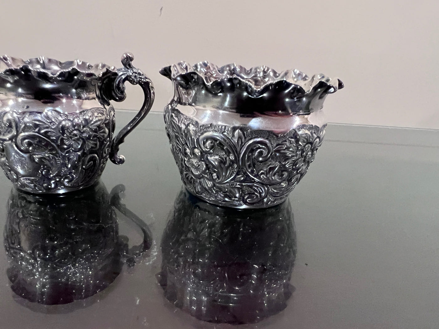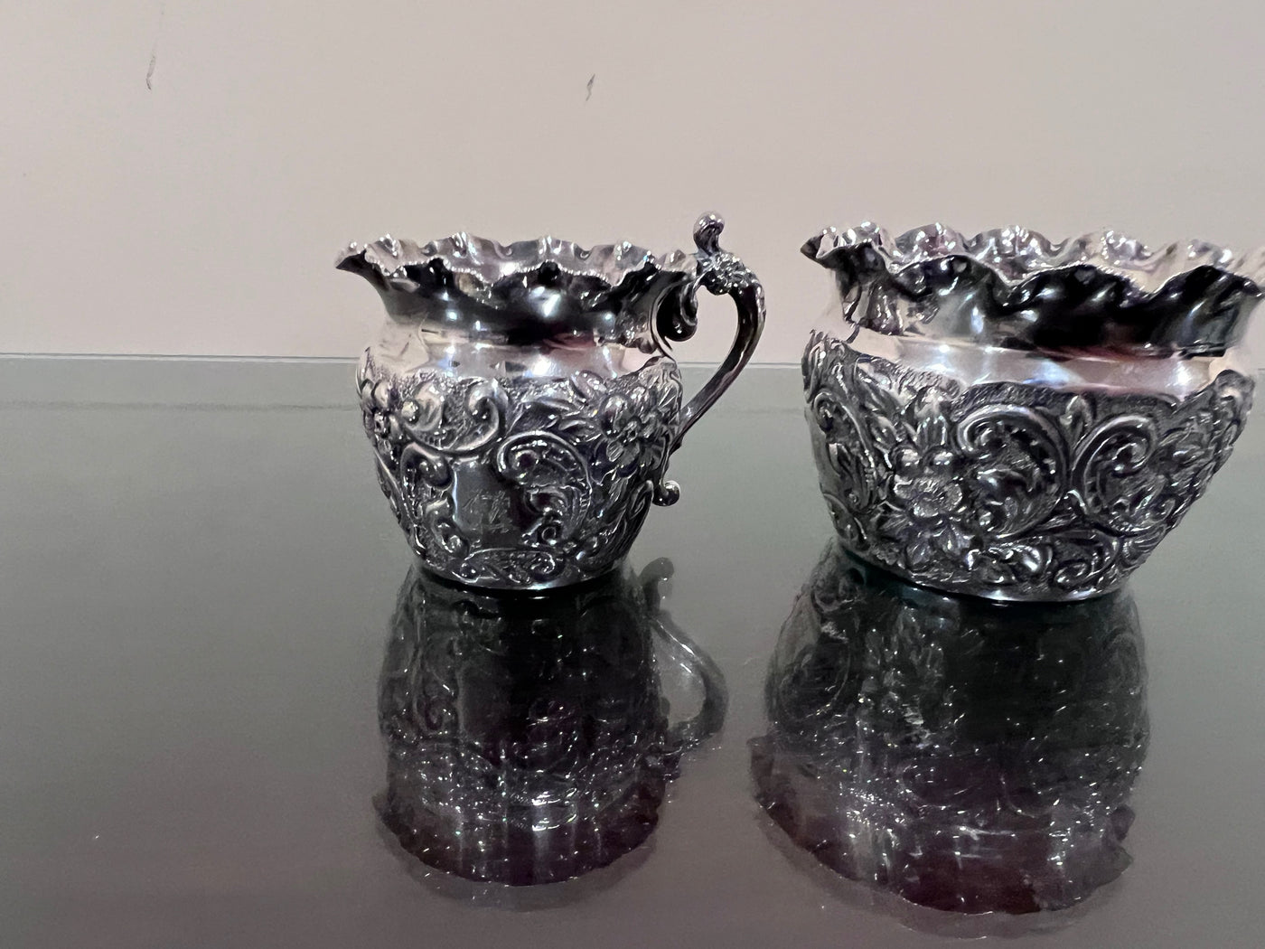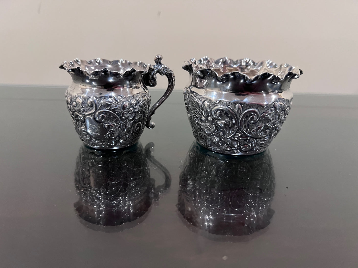 Sterling Silver Monogramed Ornate Cream & Sugar-125g.