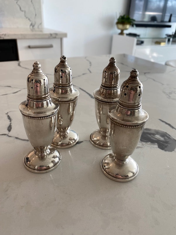 2 Pairs of 'Empire Silver' Sterling Weighted Salt & Pepper Shakers.