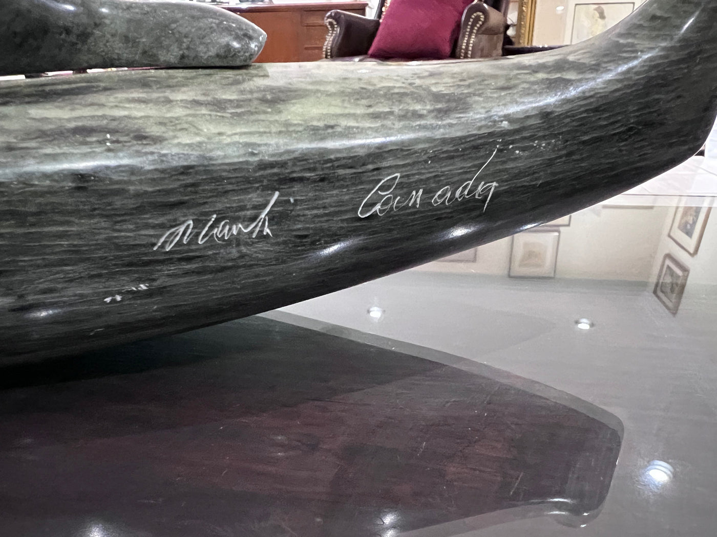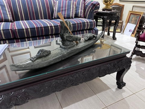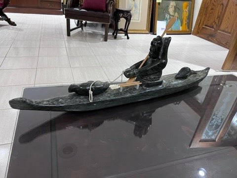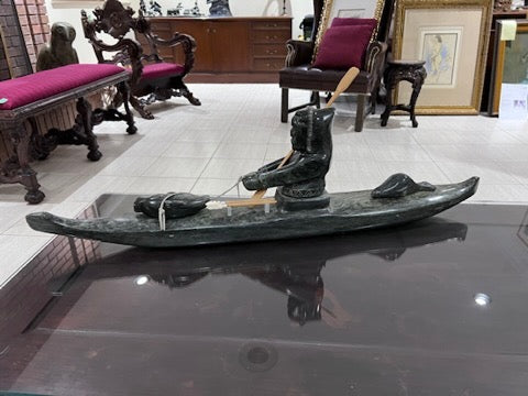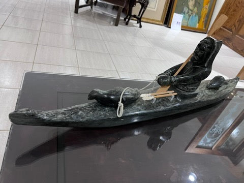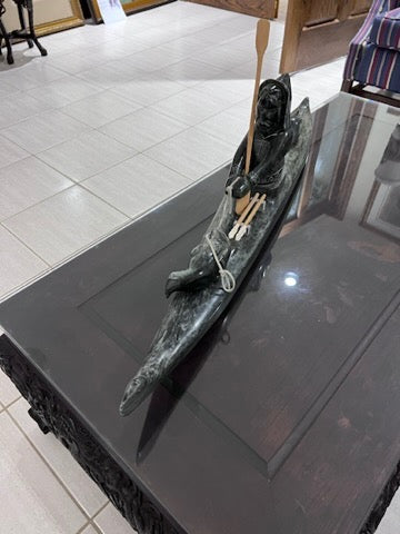 Inuit Soapstone Sculpture/Carving- 'Hunter in Kayak'.