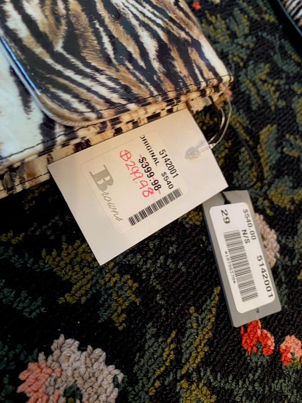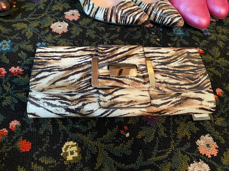 Stuart Weitzman Patent Leather Tiger Print Heels + BRAND NEW Browns Clutch- Combo.