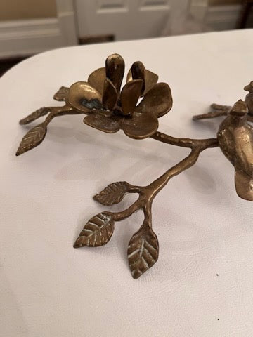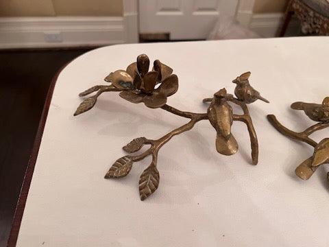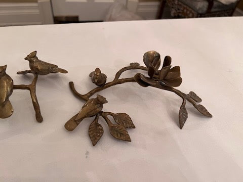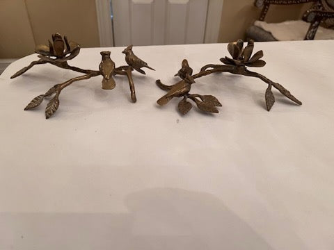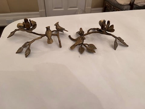 Pair of 'Birds on Branches' Gold Metal Candle Holders.