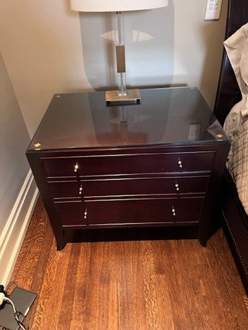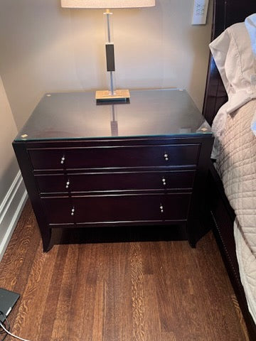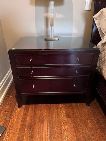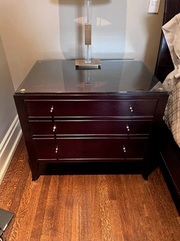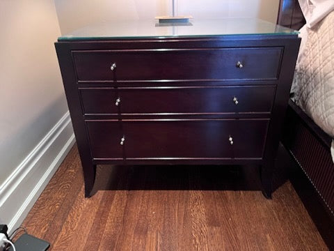 Pair of The Barbara Barry Collection by Baker Nightstands. Custom glass top.