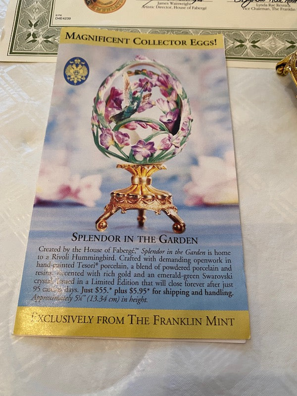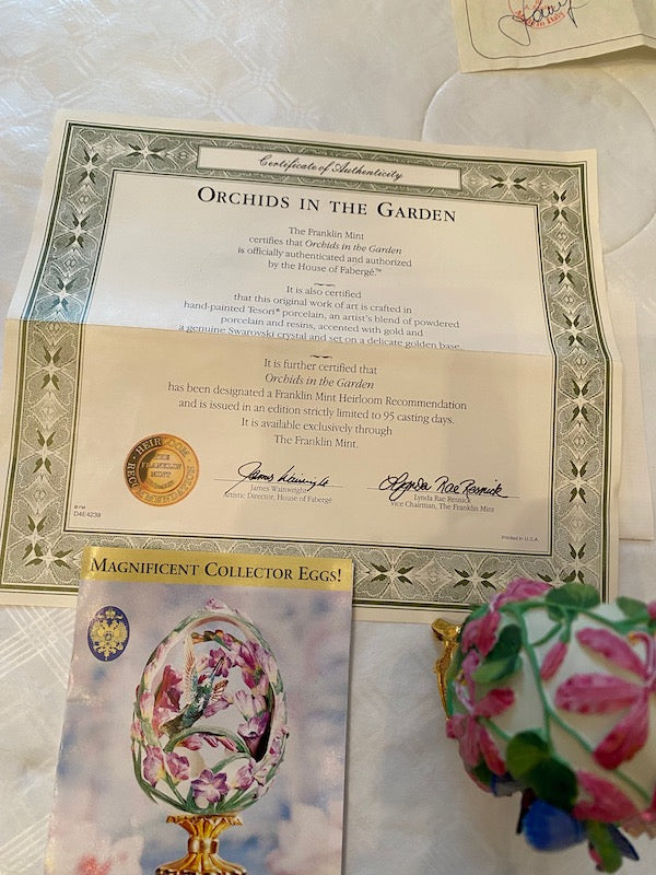 The Franklin Mint Porcelain, Magnificent Collector Eggs, "Orchids in the Garden"- Created by The House of Faberge.