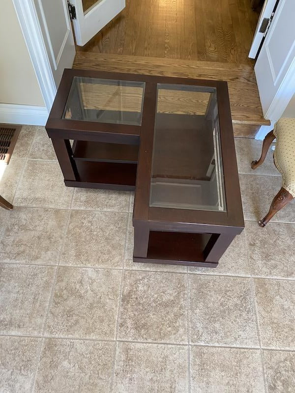 2 L-Shaped Glass Accent Tables.