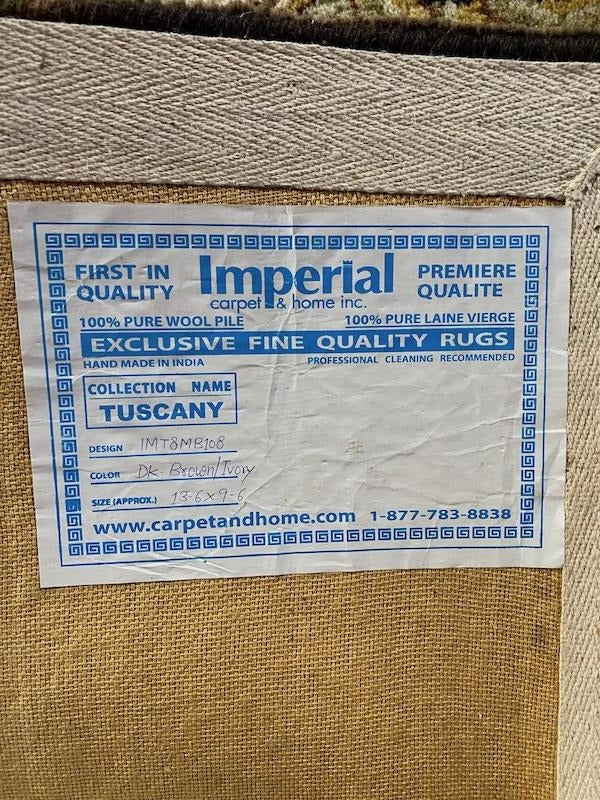 The Imperial Carpet & Home- Tuscany Collection- Dark Brown & Ivory Hand Made Indian Wool Rug- 13.6x9.6ft