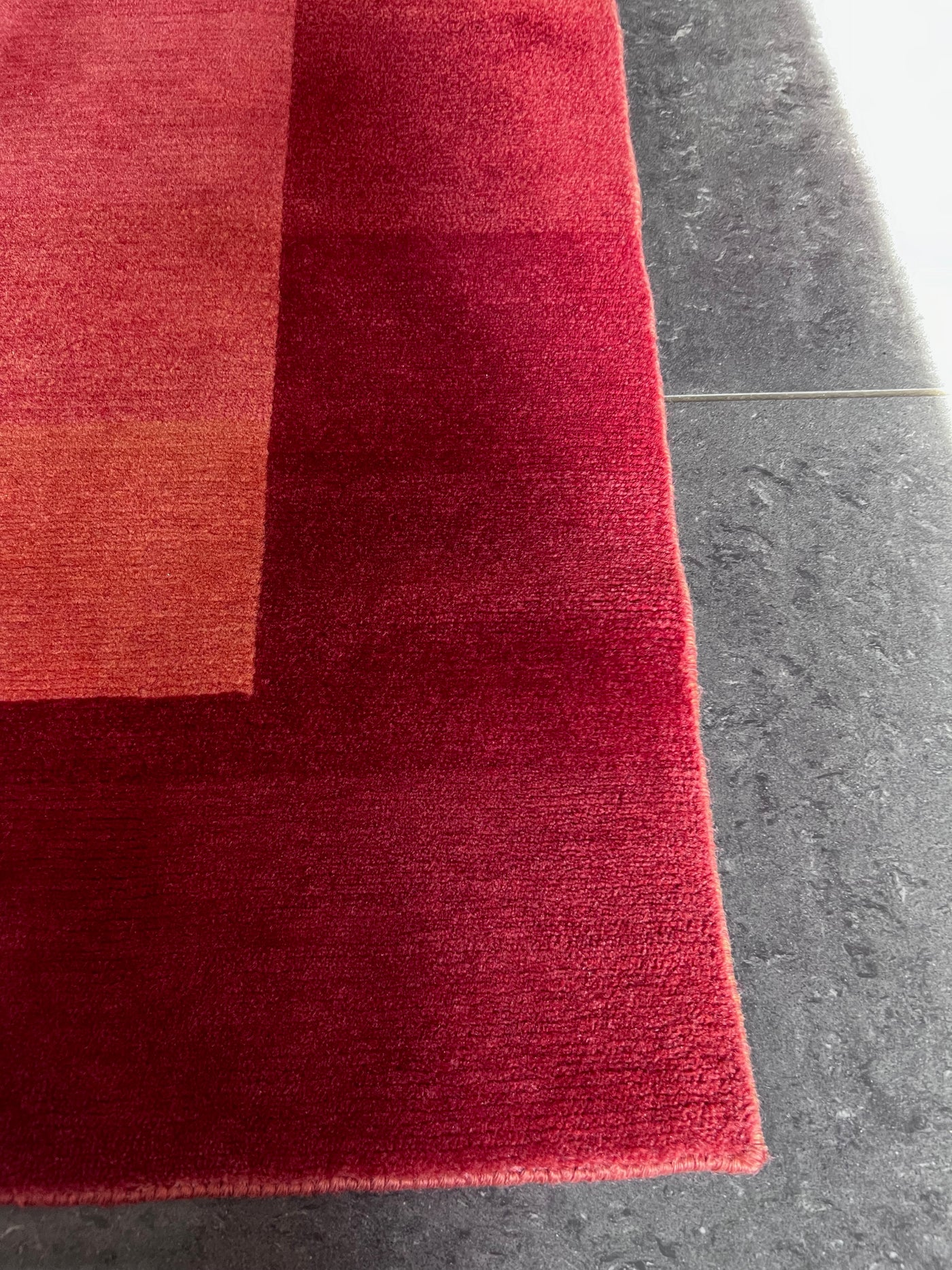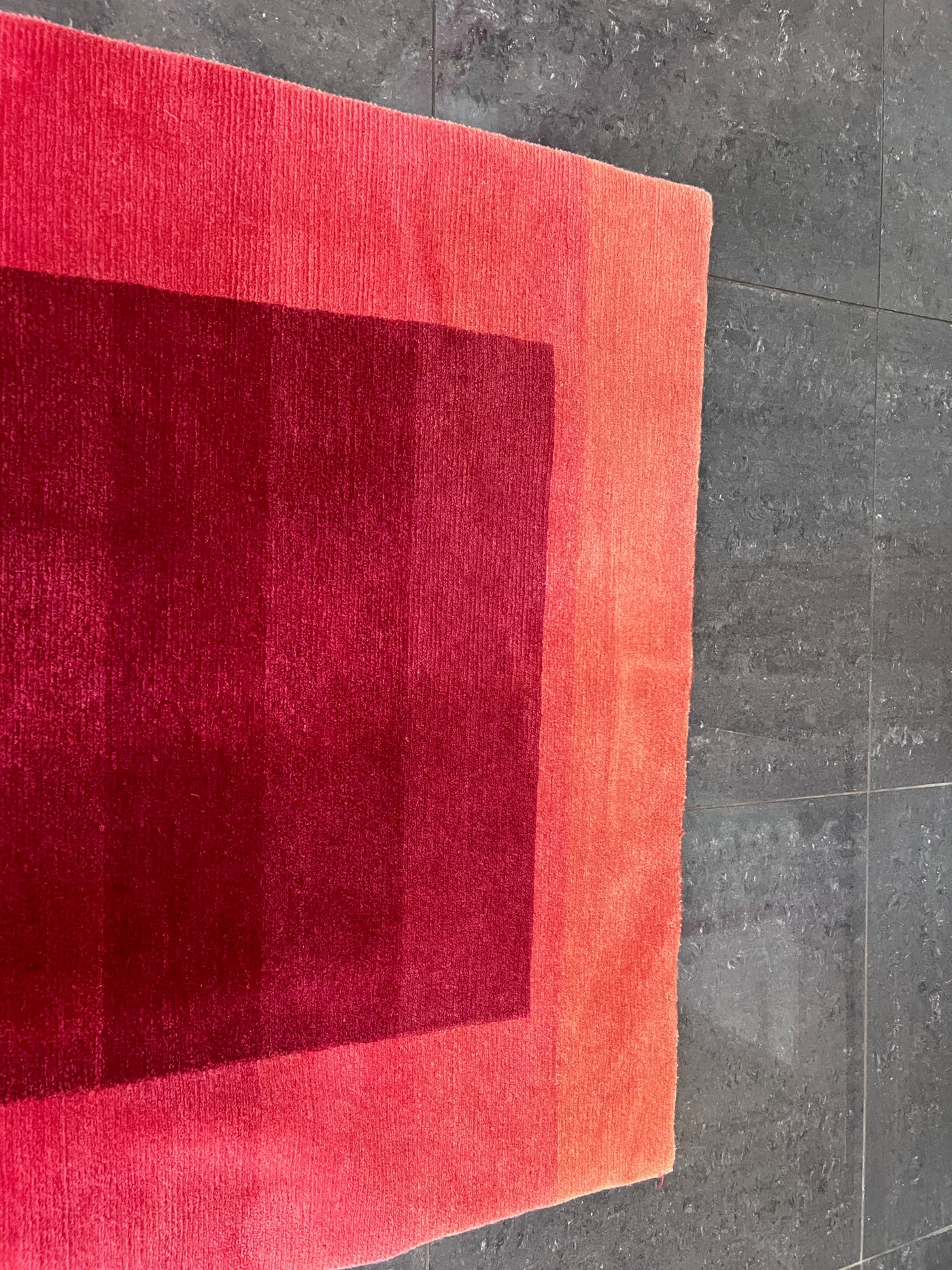 The edge of the rug has some sun fading.