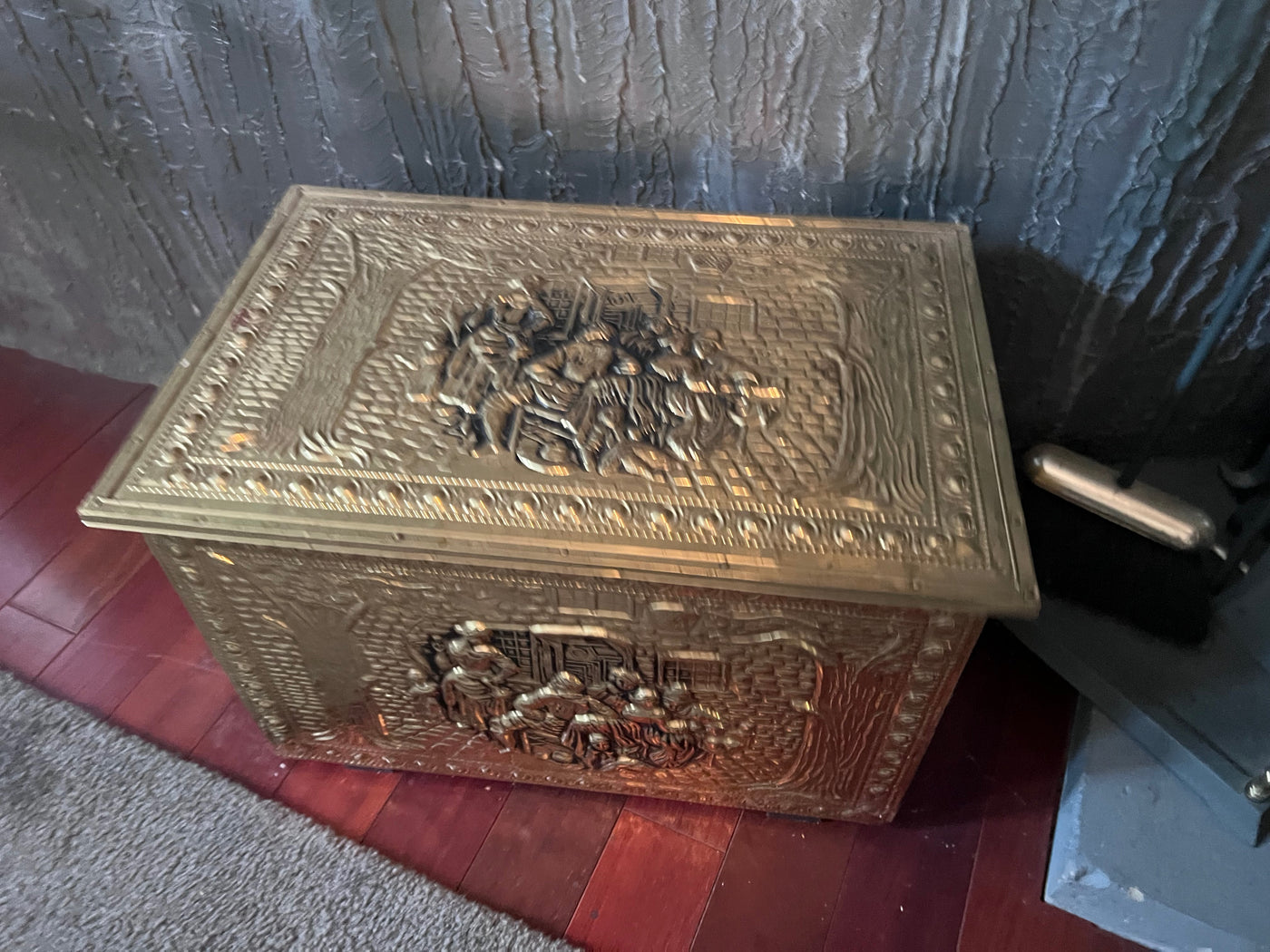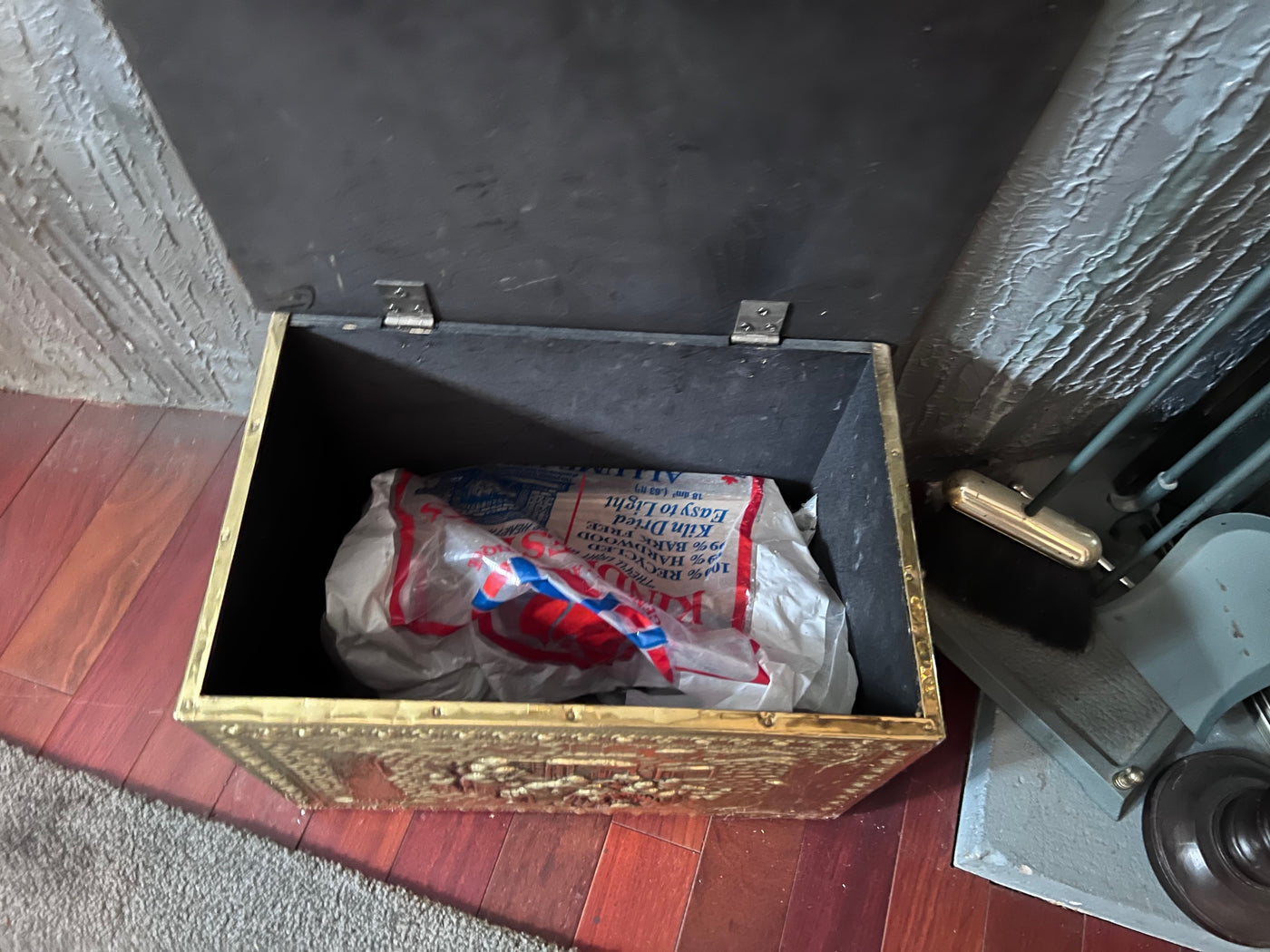 Gold Metal Firewood Box.