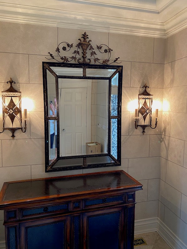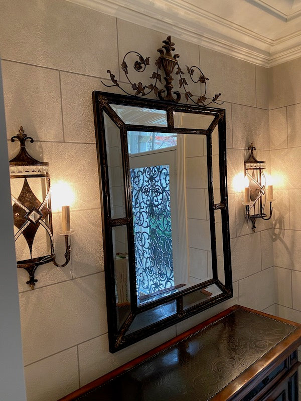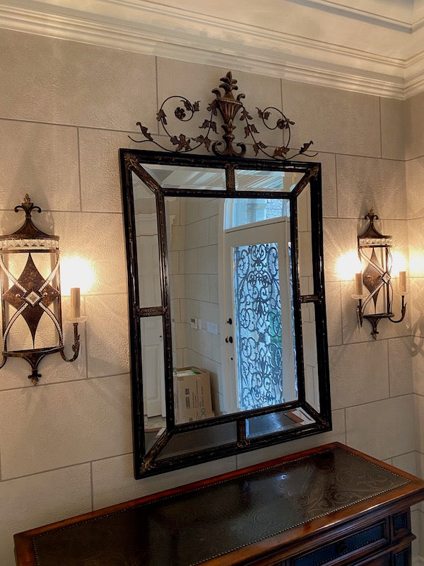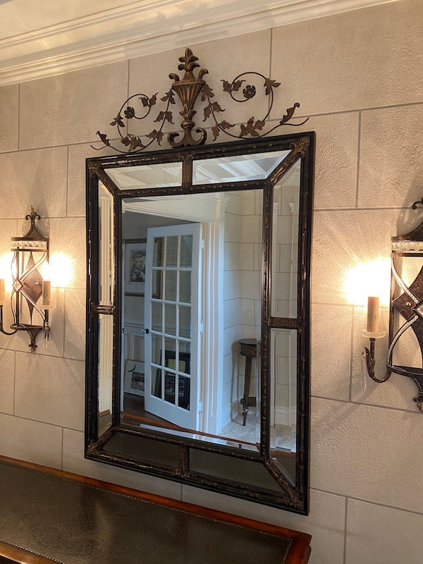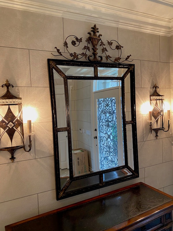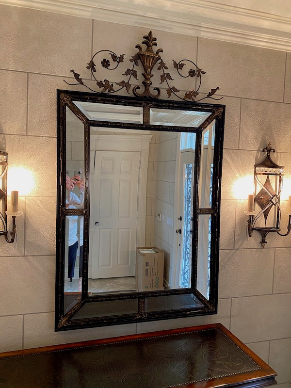 Ornate Solid Marginal Wall Mirror, Gold Metal Accents. In excellent condition.