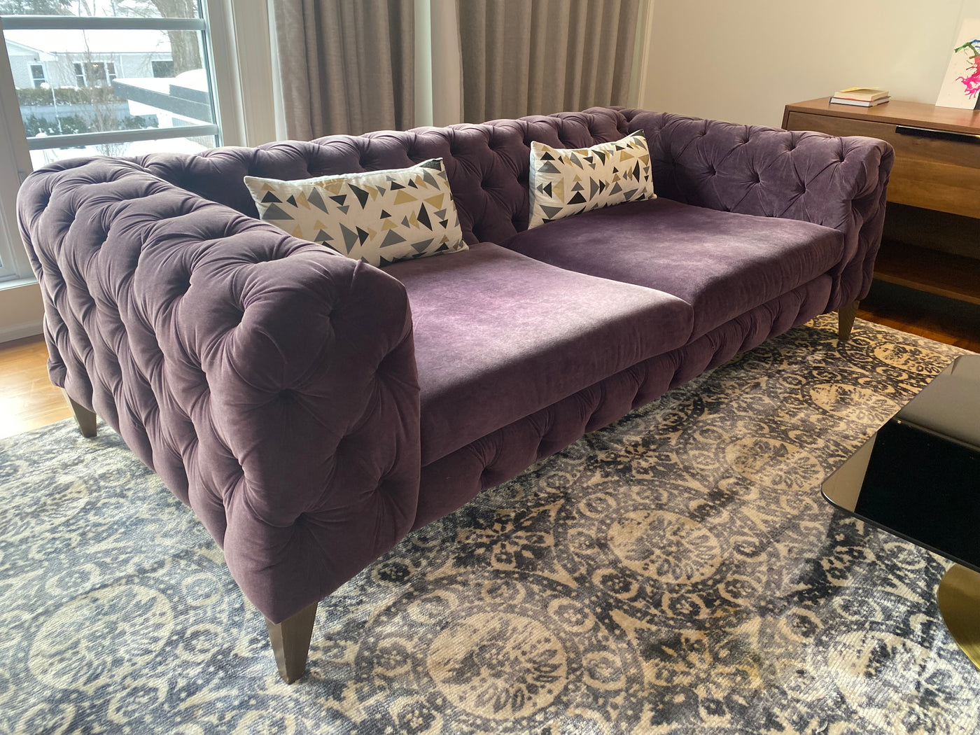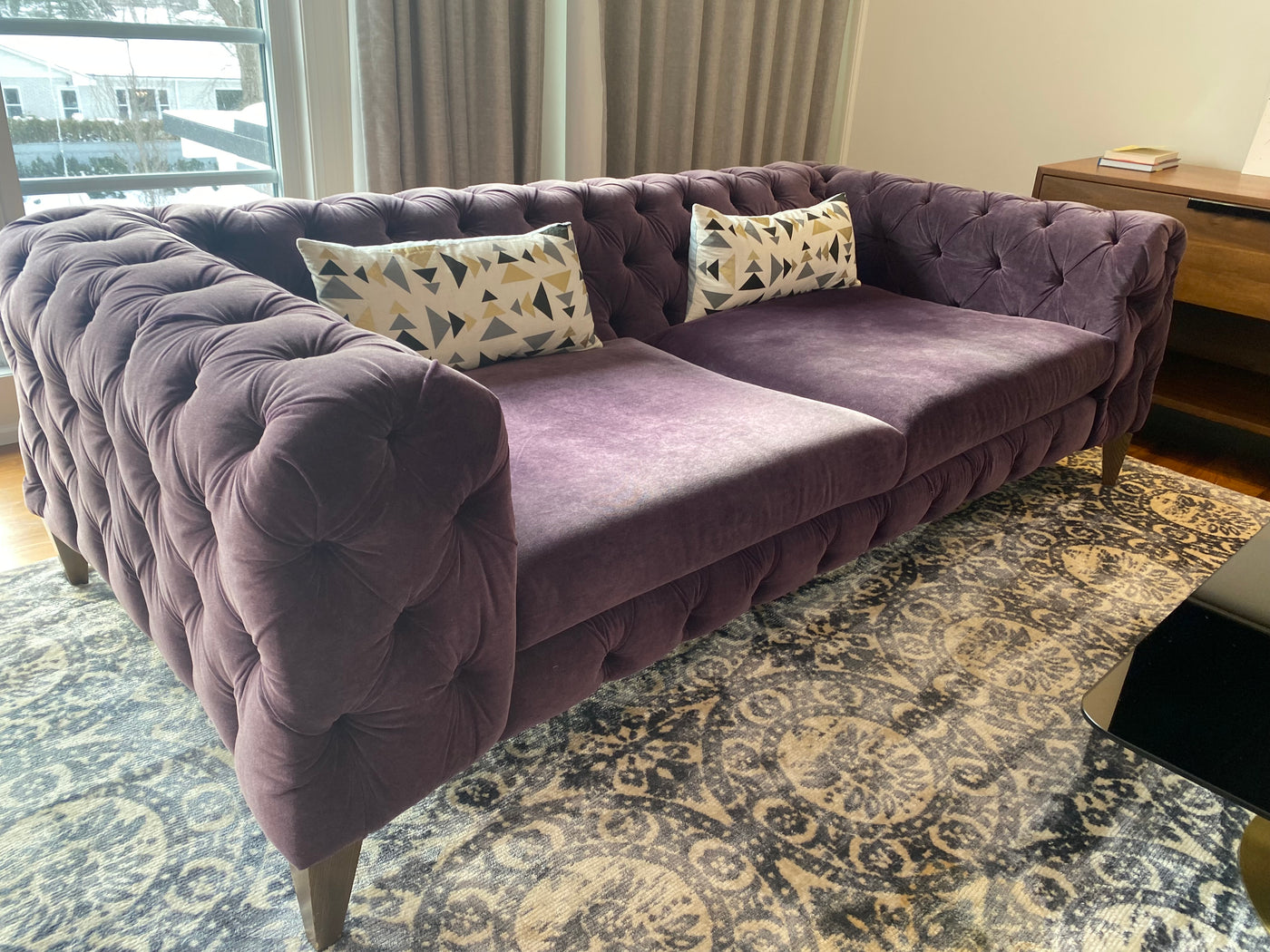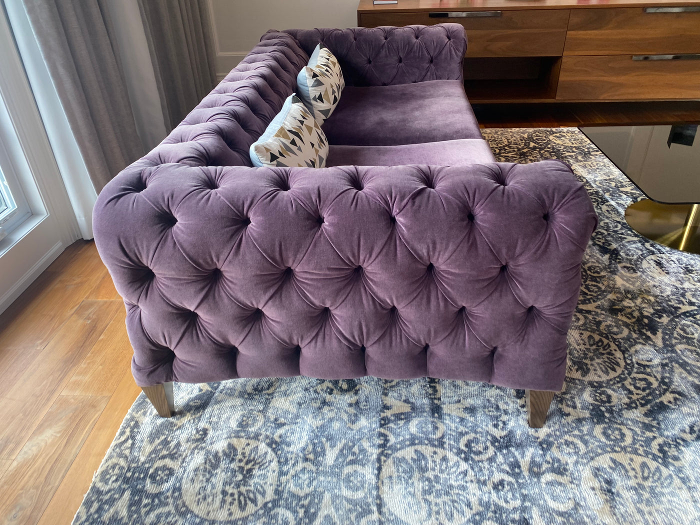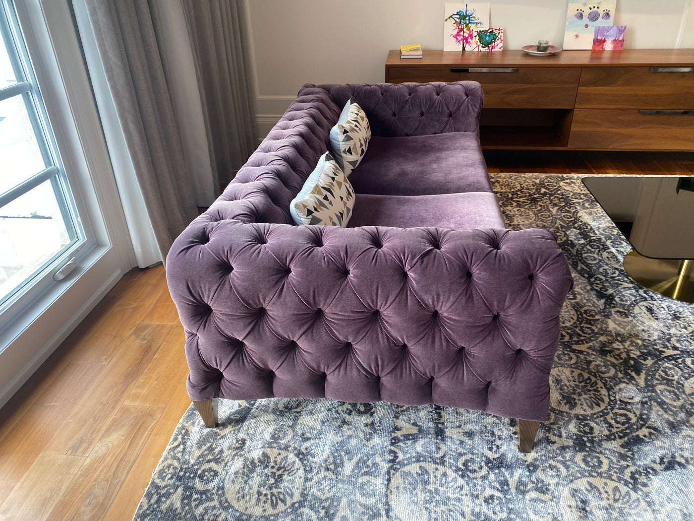 Custom Made Purple Tufted Sofa from Silva Custom Furniture.