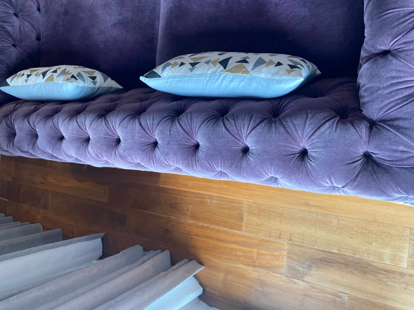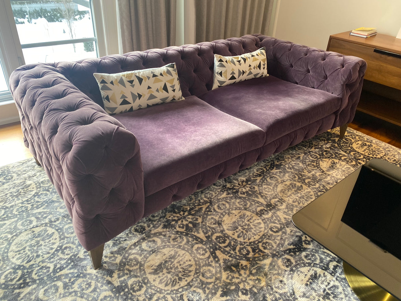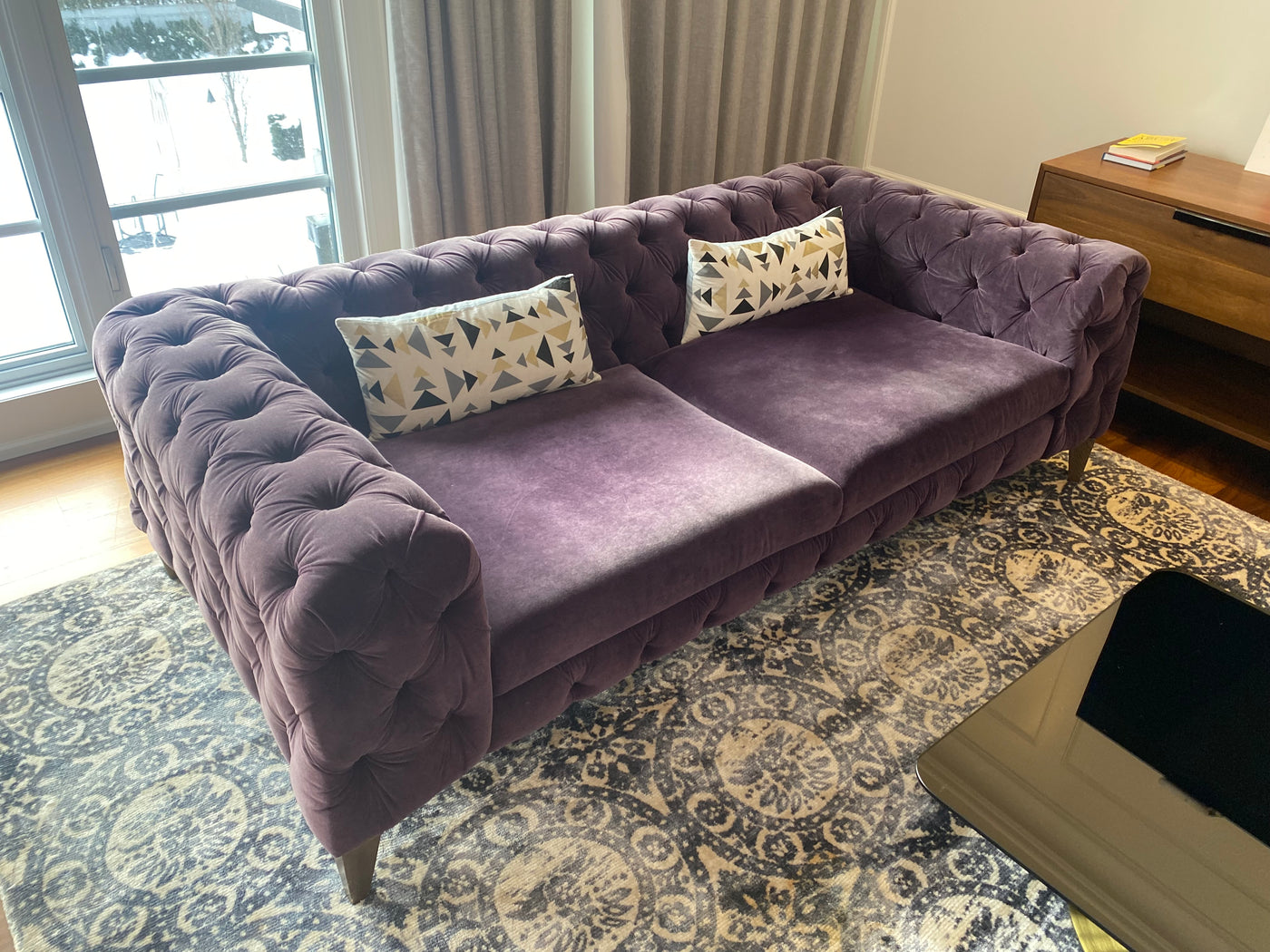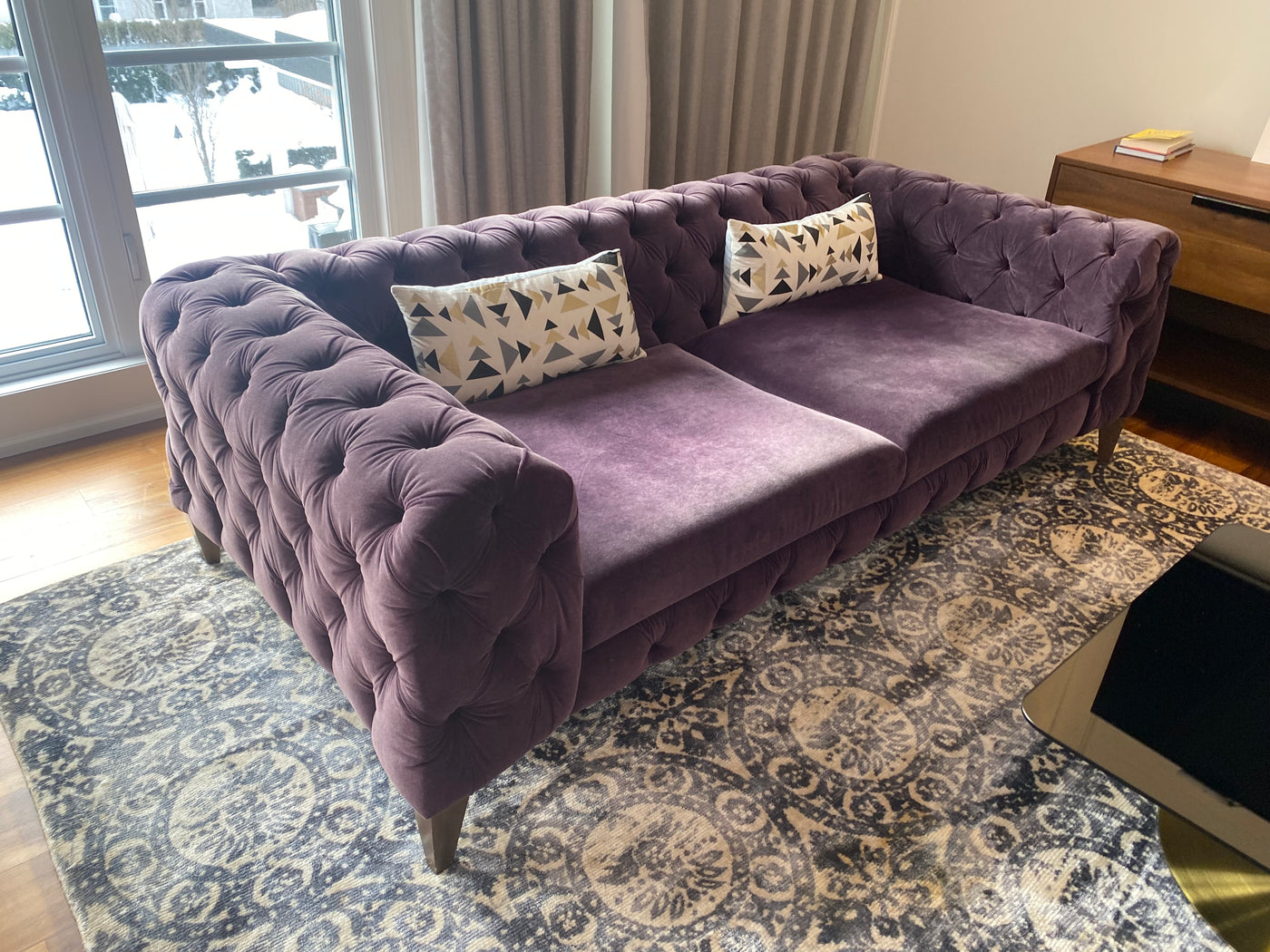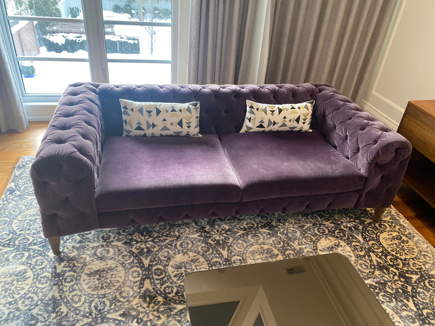 Custom Made Purple Tufted Sofa from Silva Custom Furniture.