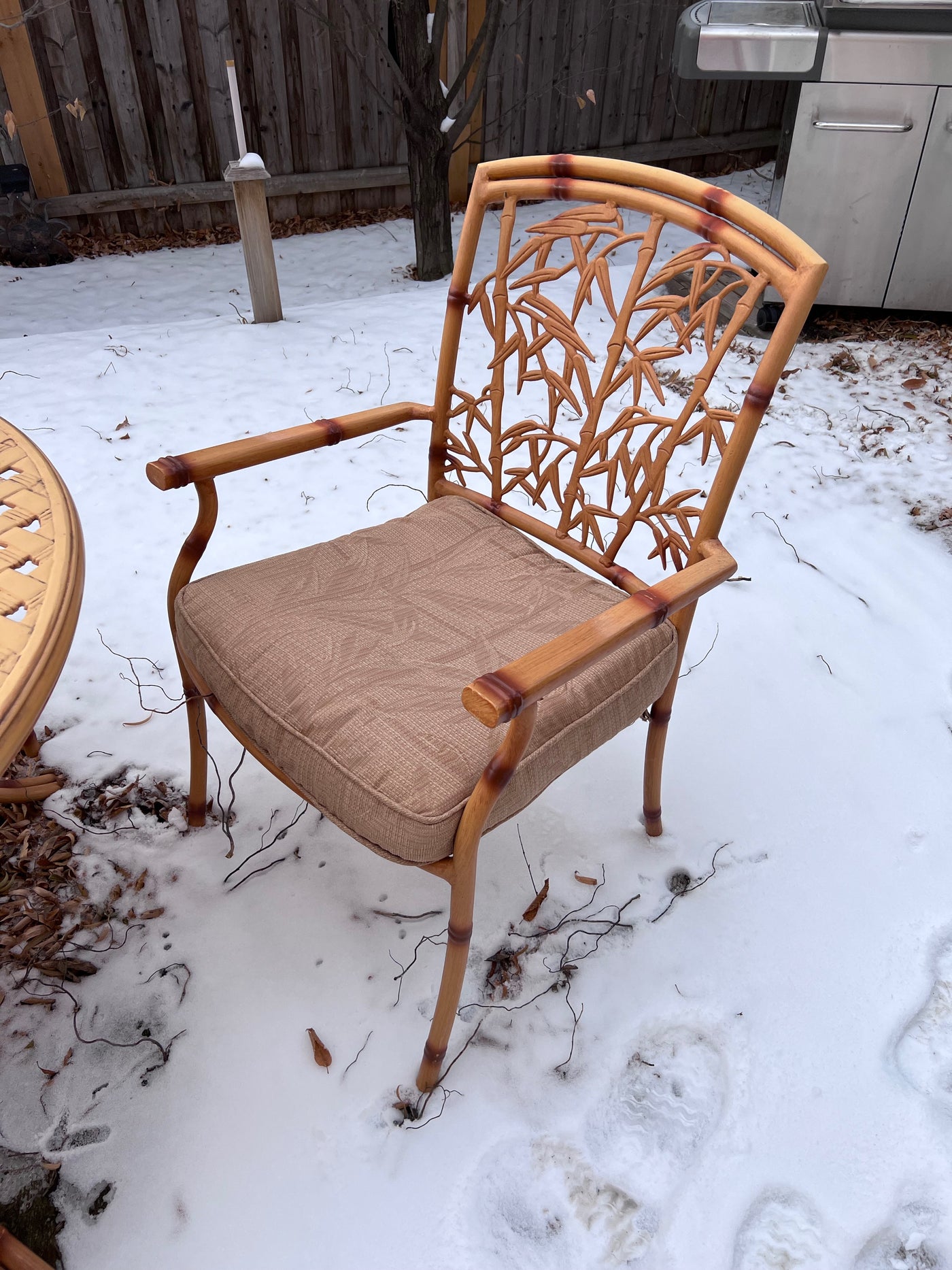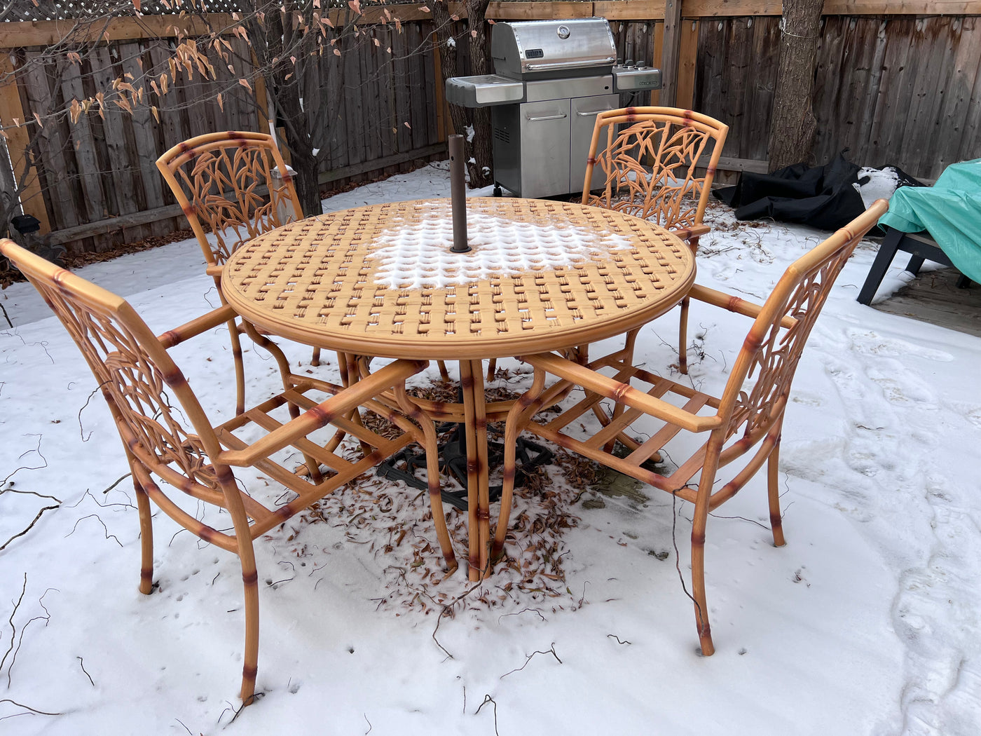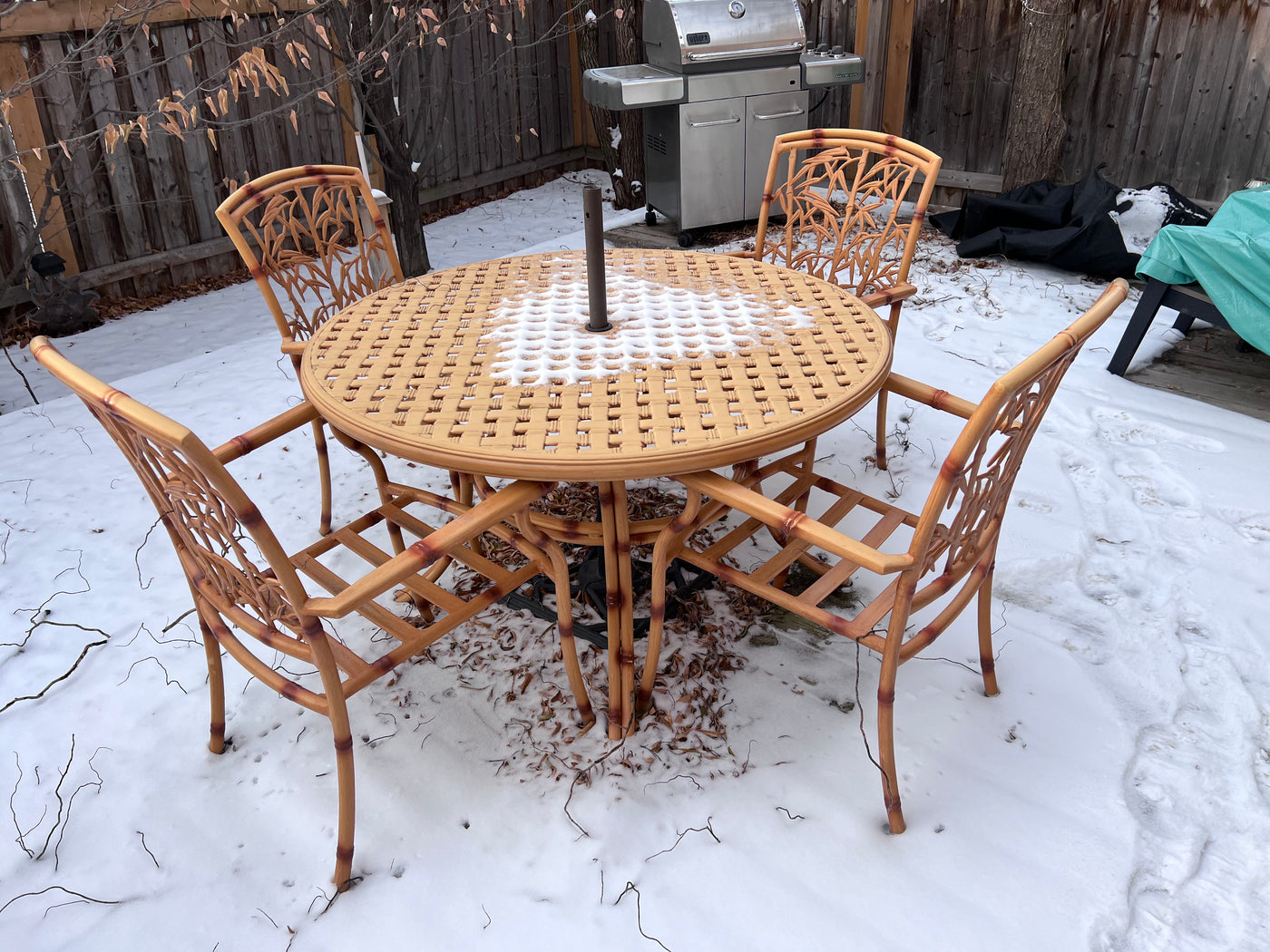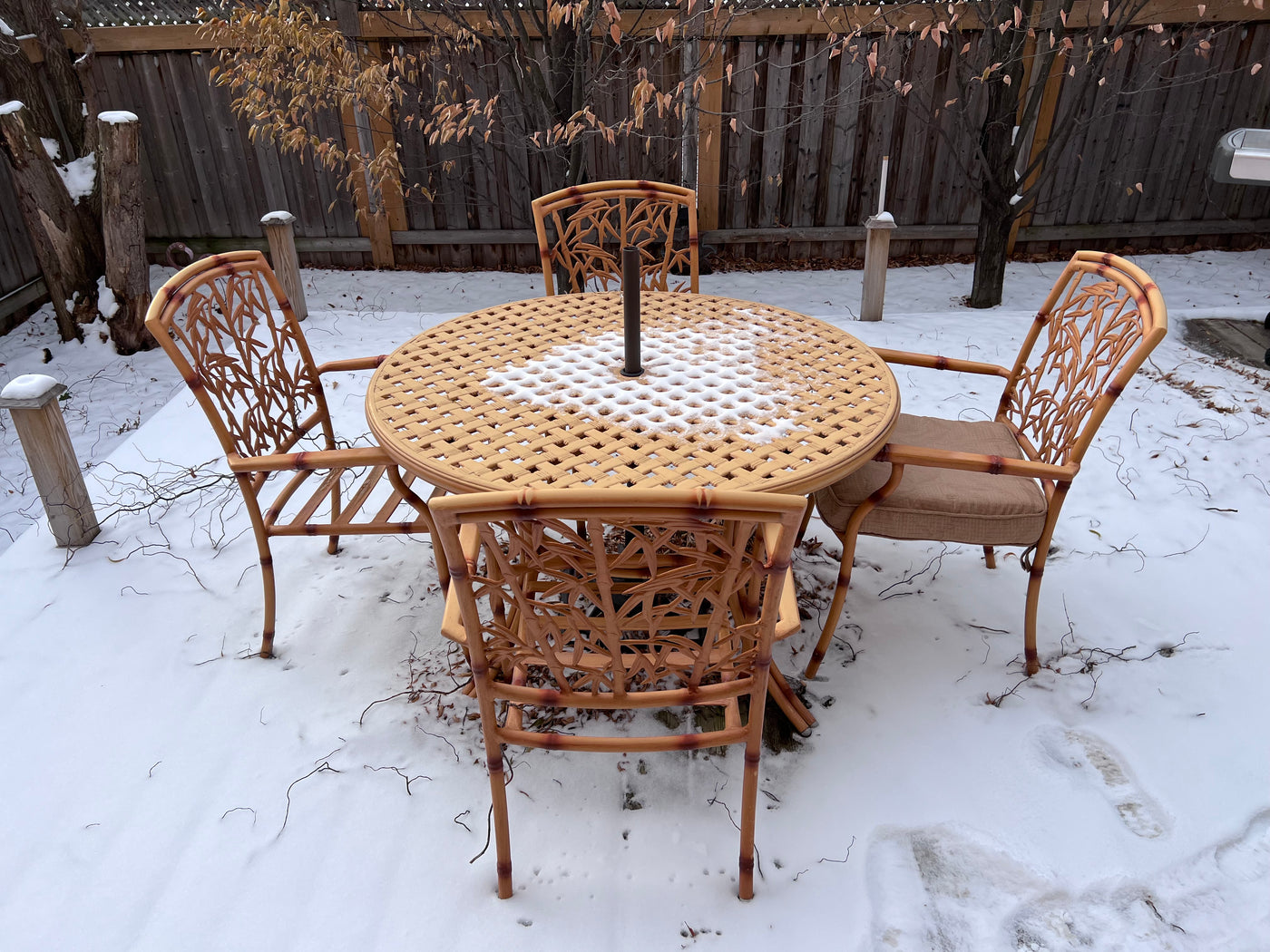 Cast Aluminum Bamboo Style Patio Table + 4 Chairs (cushions included)