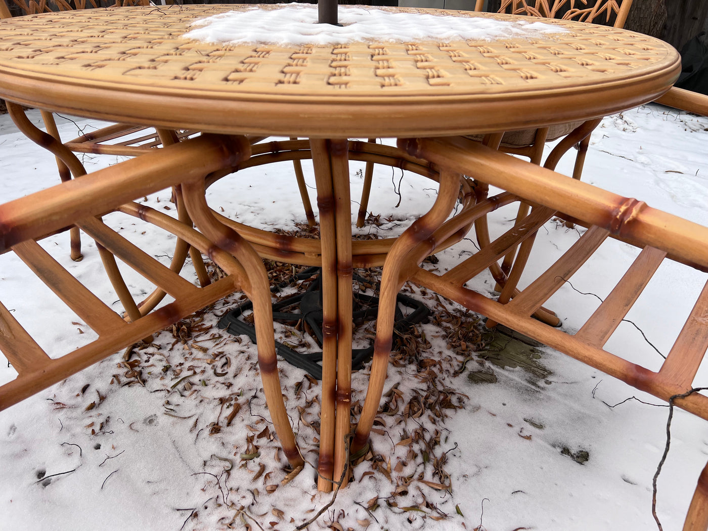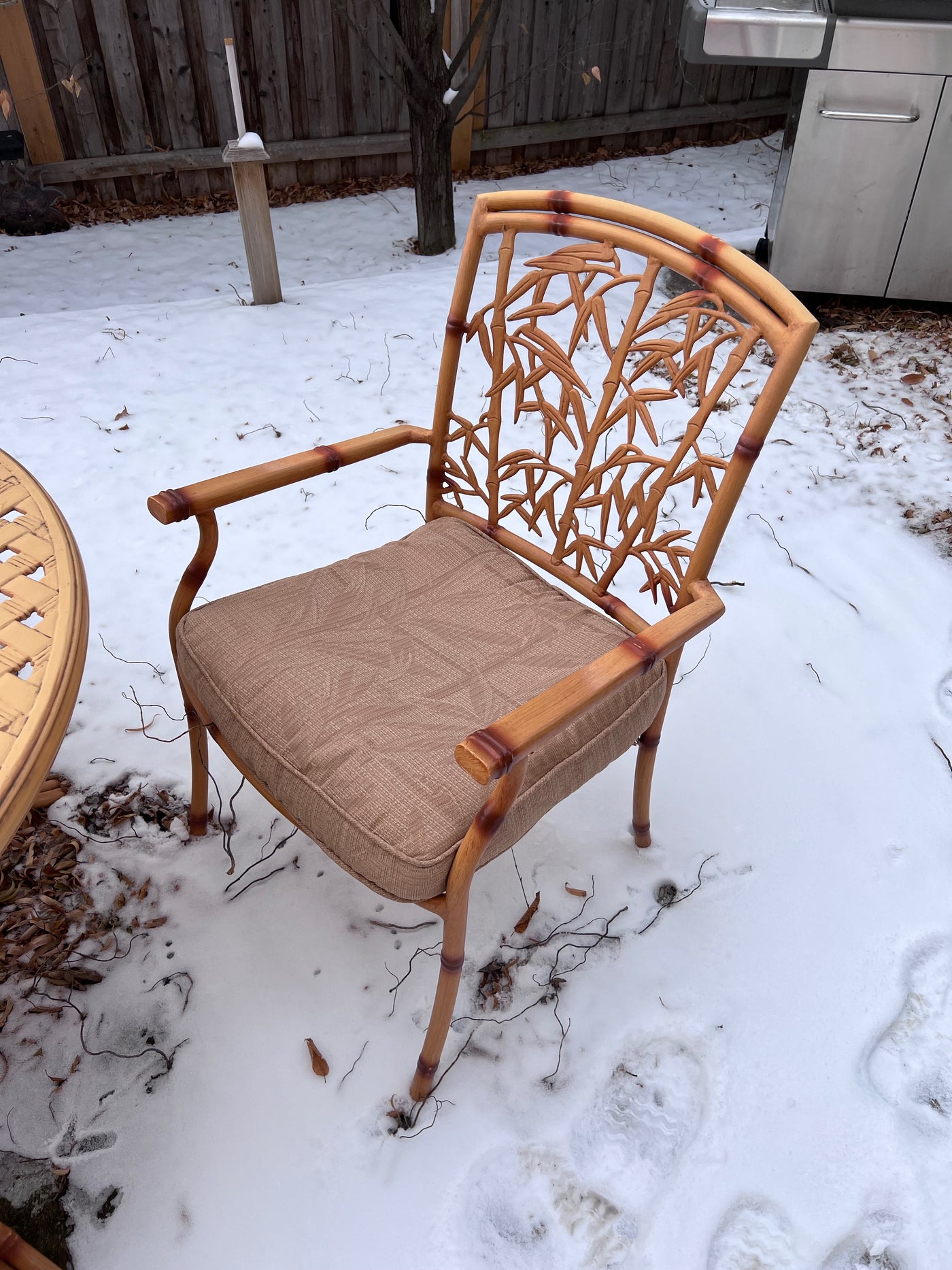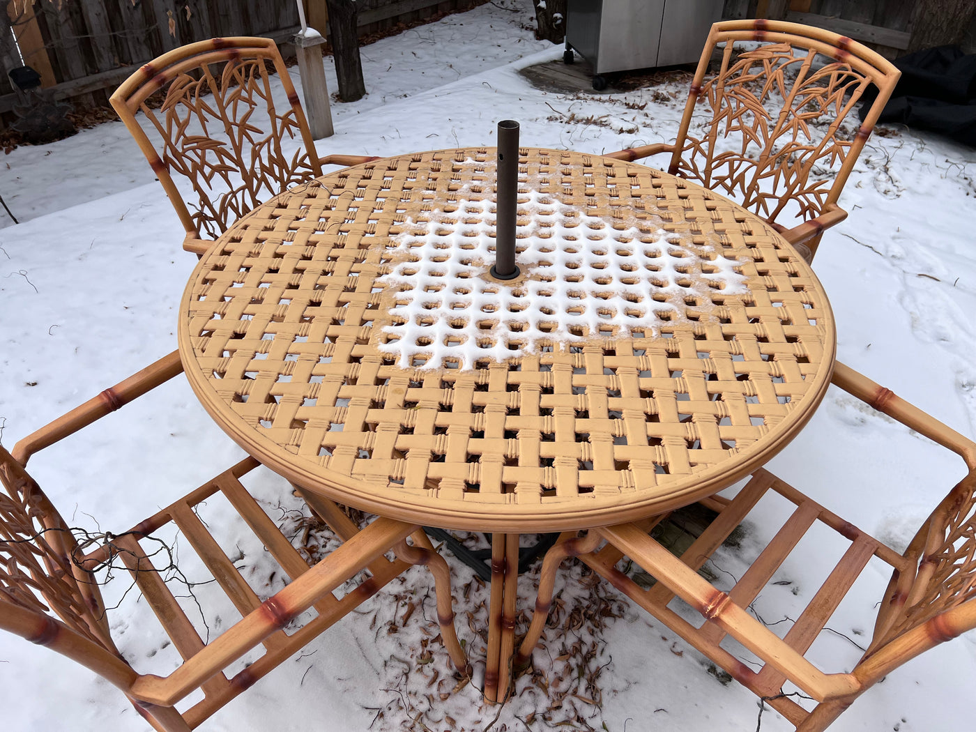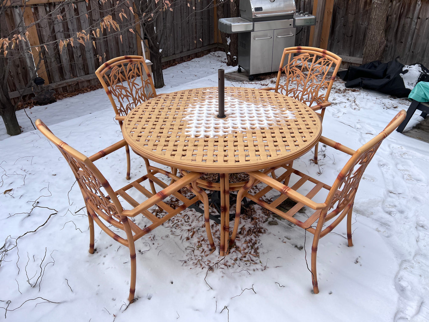 Cast Aluminum Bamboo Style Patio Table + 4 Chairs (cushions included)