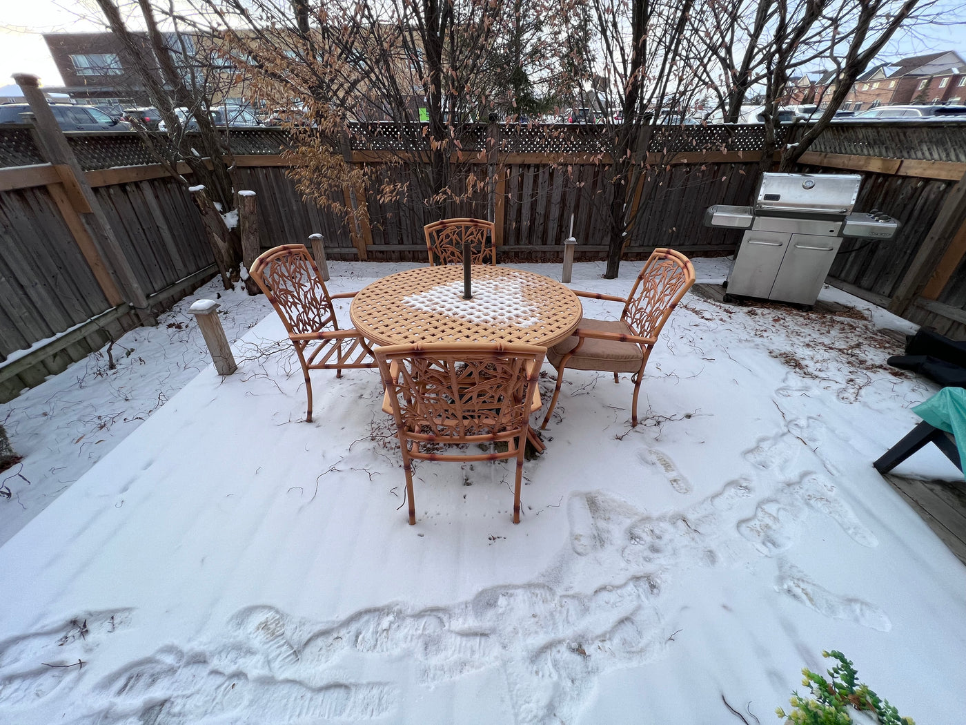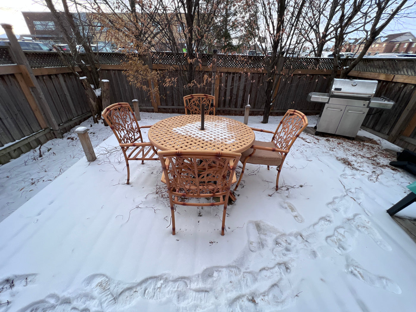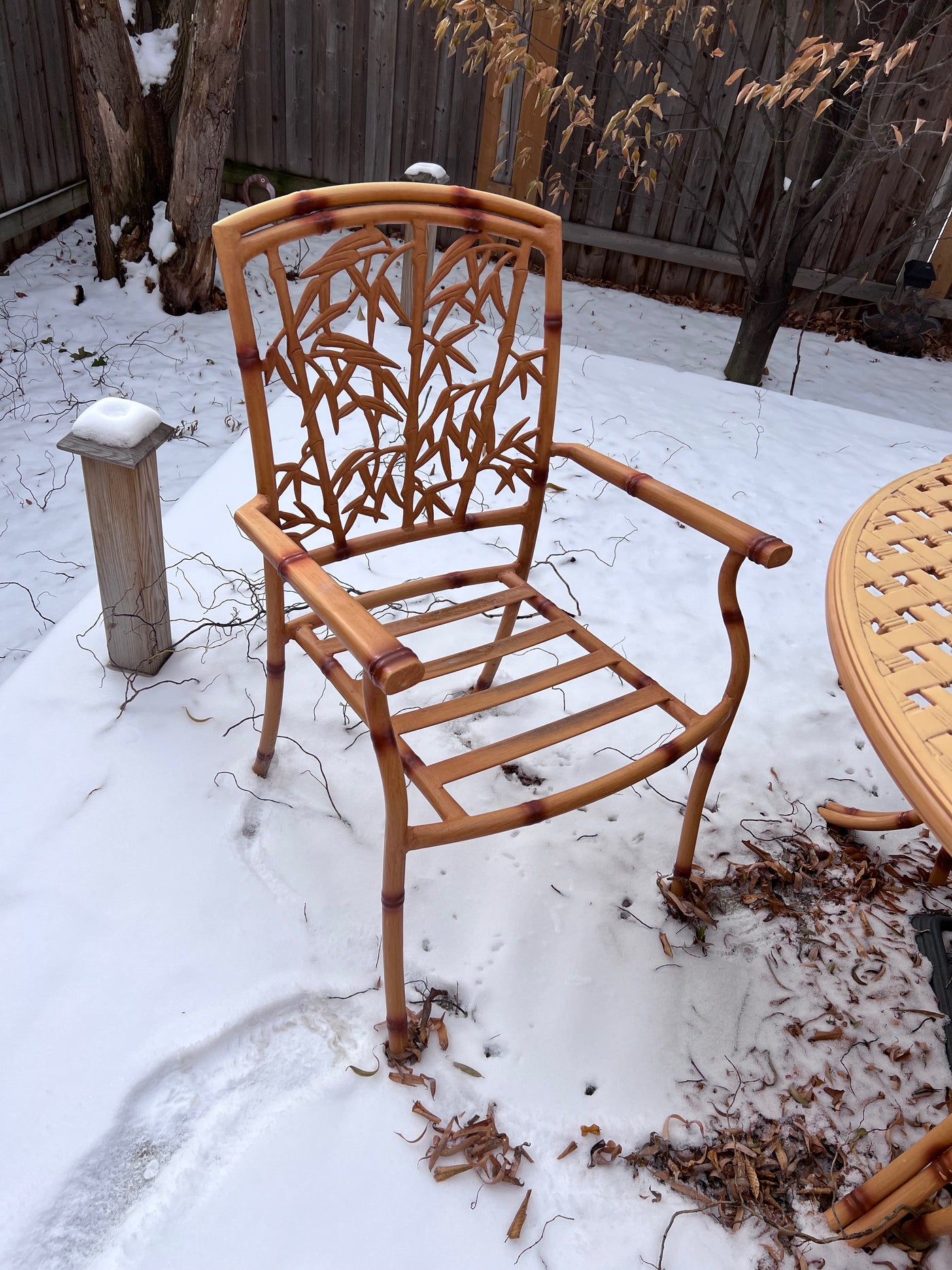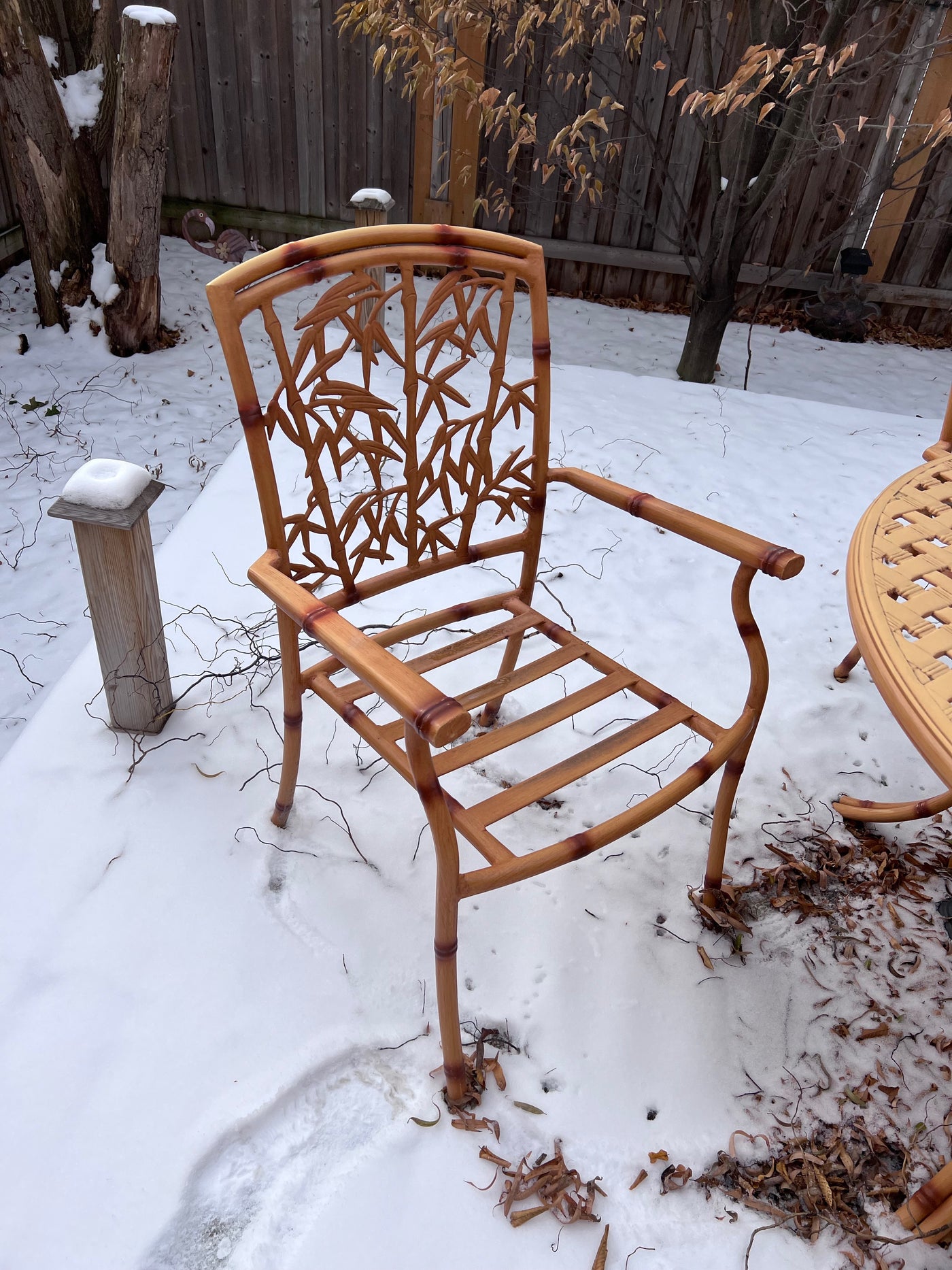 Cast Aluminum Bamboo Style Patio Table + 4 Chairs (cushions included)