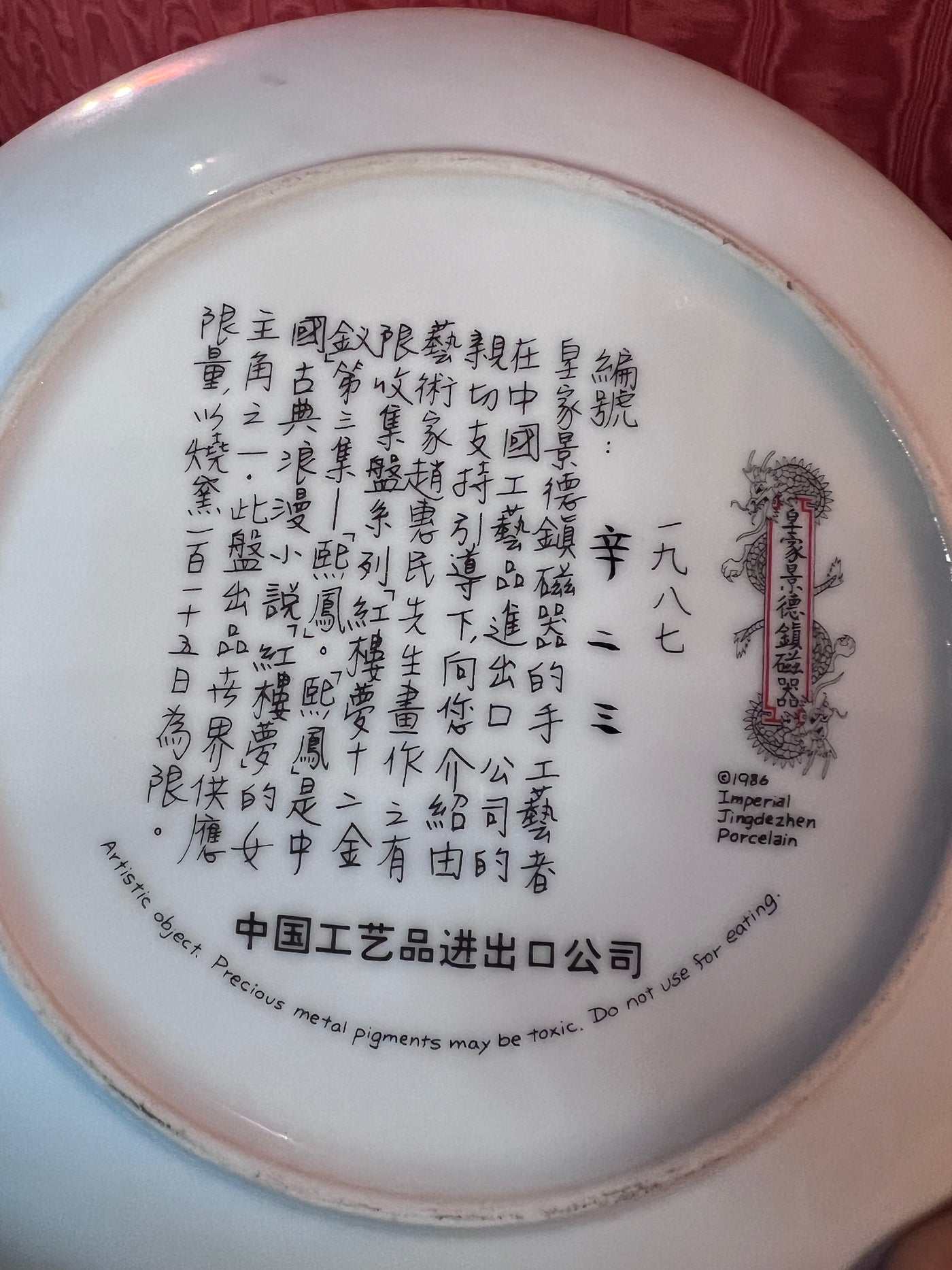 Imperial Jingdezhen Porcelain 1986 Collector Plate.