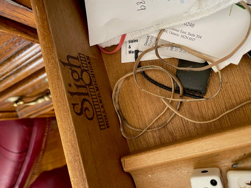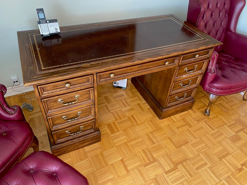 The top does have some medium cracking to the leather and a few scratches. Please view up close pictures for FULL disclosure and details.
