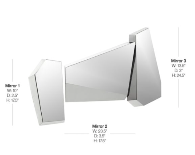 Three-piece wall mirror set adds an eclectic edge to the goop x CB2 collection. "This sculptural, three-dimensional set is an art piece. It's always nice to have something punk rock in an elegant room – we even named this piece after Italian punk band Negazione." Mounting hardware is included. CB2 exclusive.