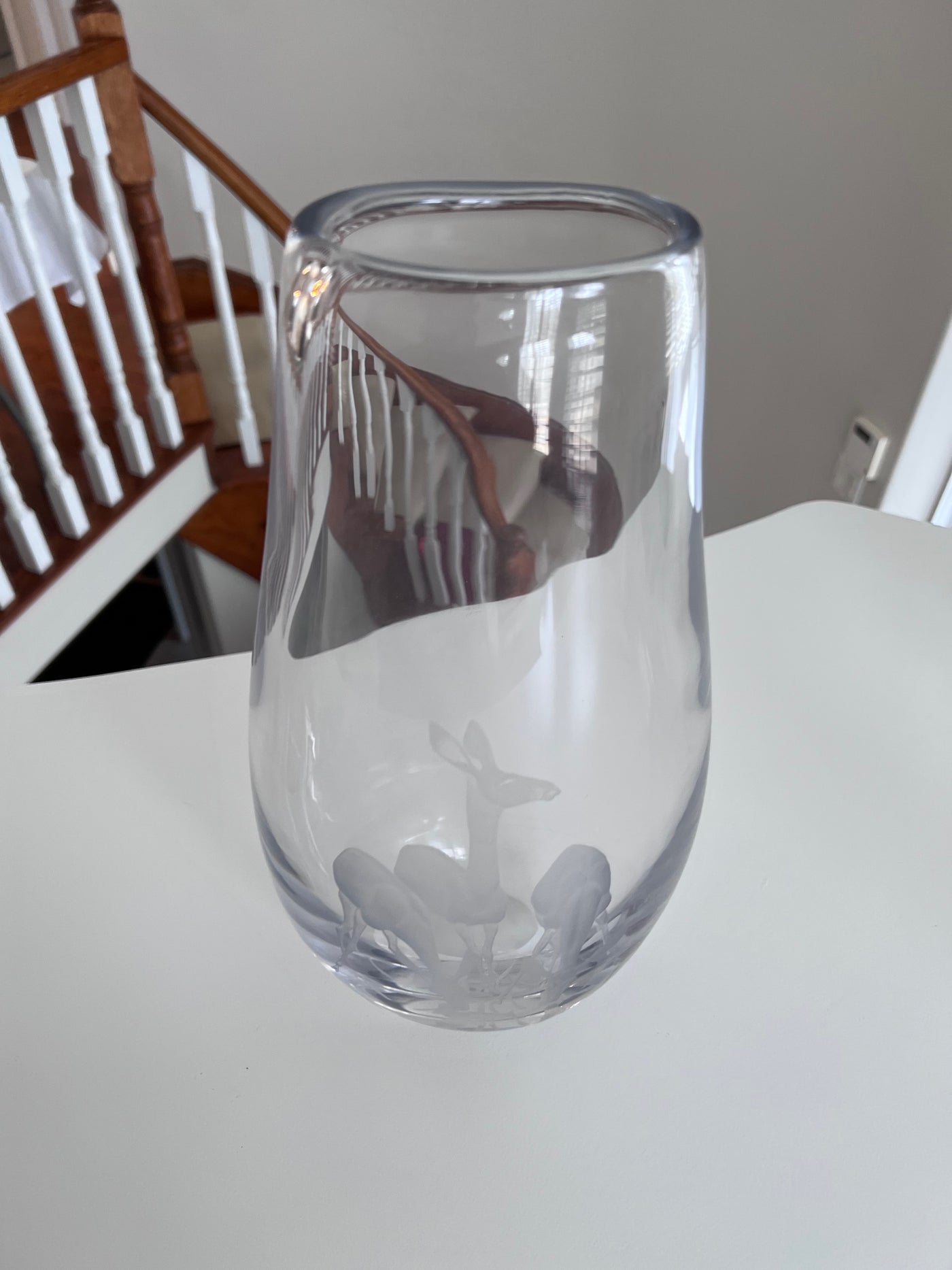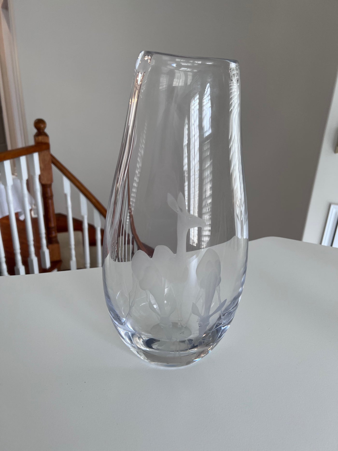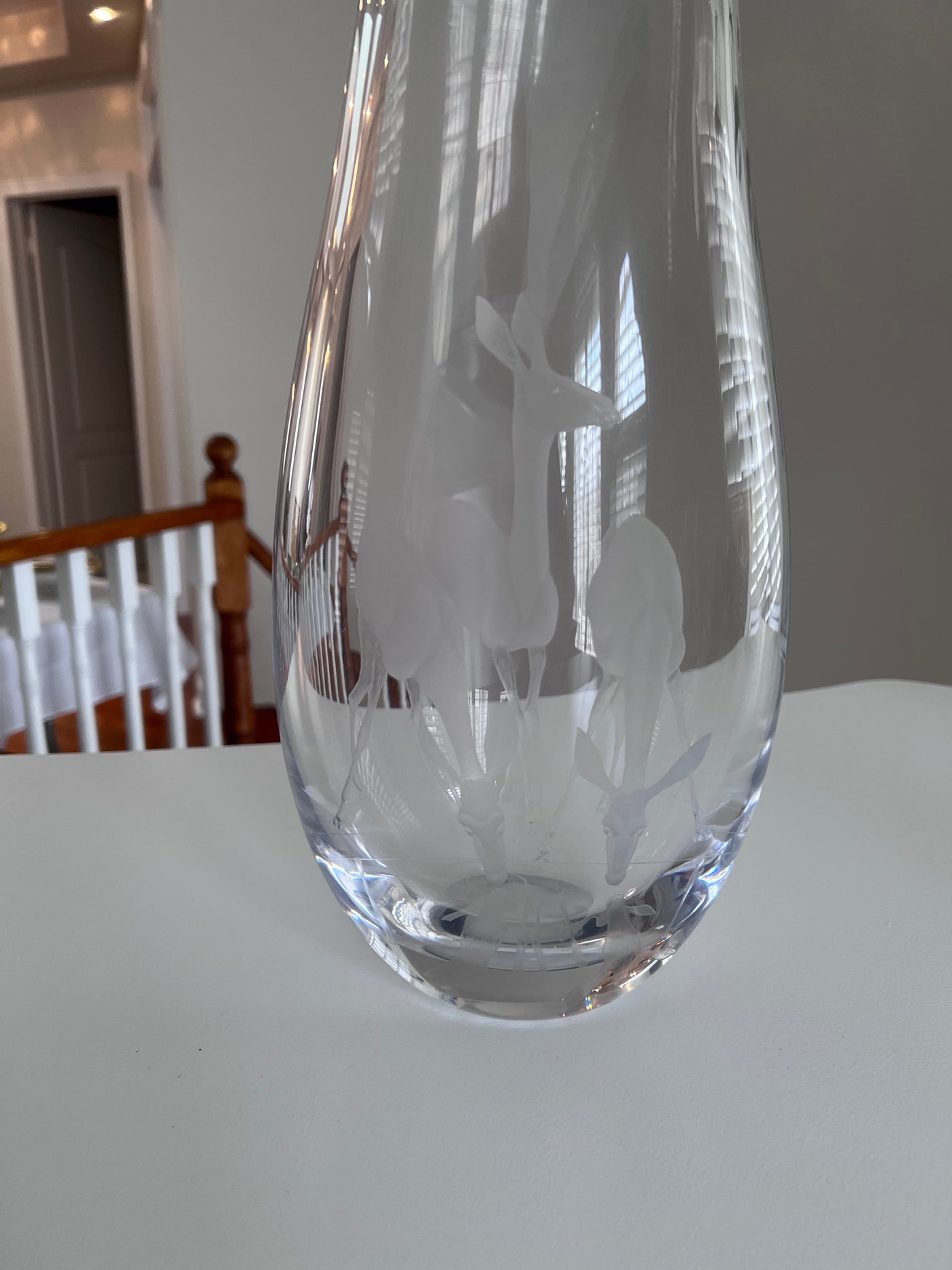 Orrefors Itaglio Cut Glass Vase with Deer Motifs.