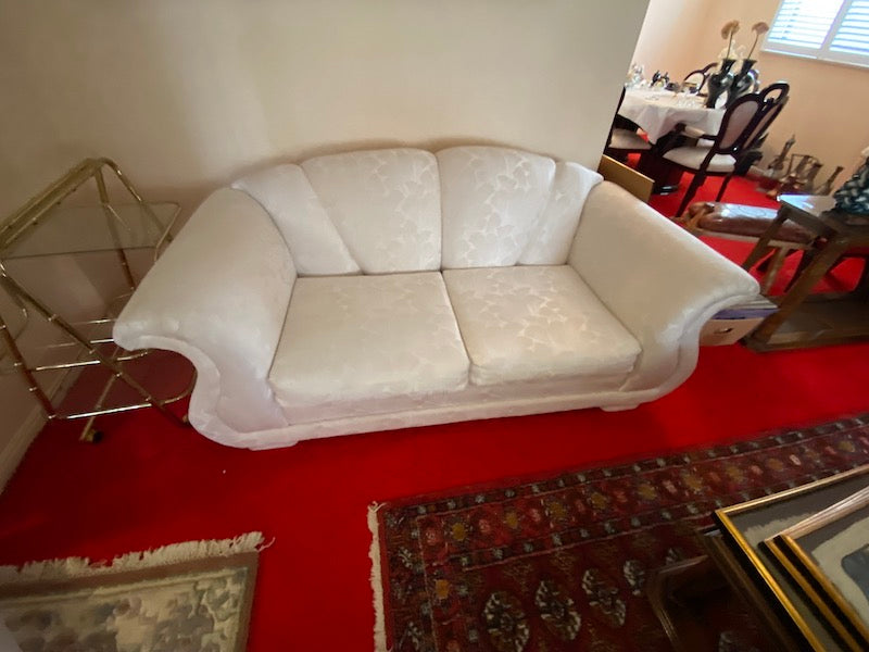 Vintage Cream Upholstered Love Seat. In good condition overall given the age-- may have a few very minor marks but no major damage.