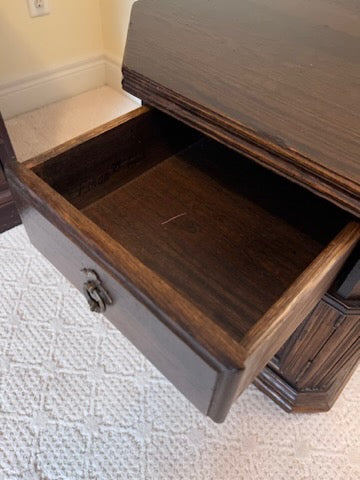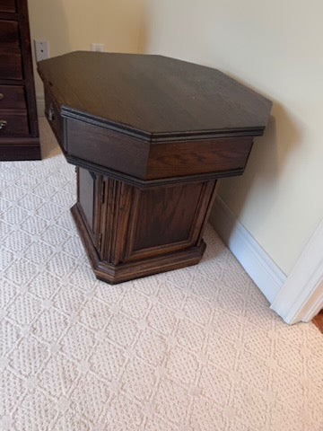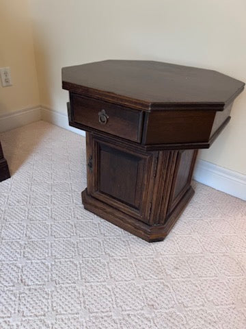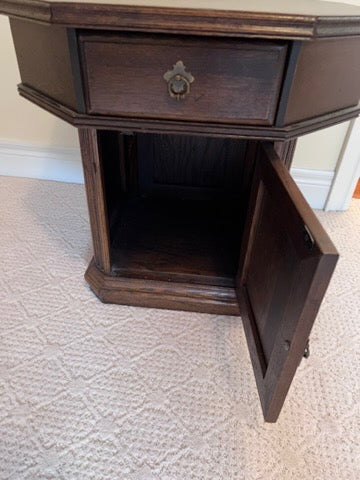 Vintage 1980s Ethan Allen Royal Charter Jacobean Oak Octagonal Side Table 16-8007.