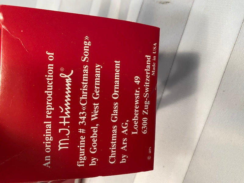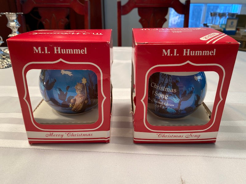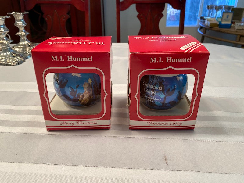 2 M.J. Hummel Christmas Glass Ornaments 1989.