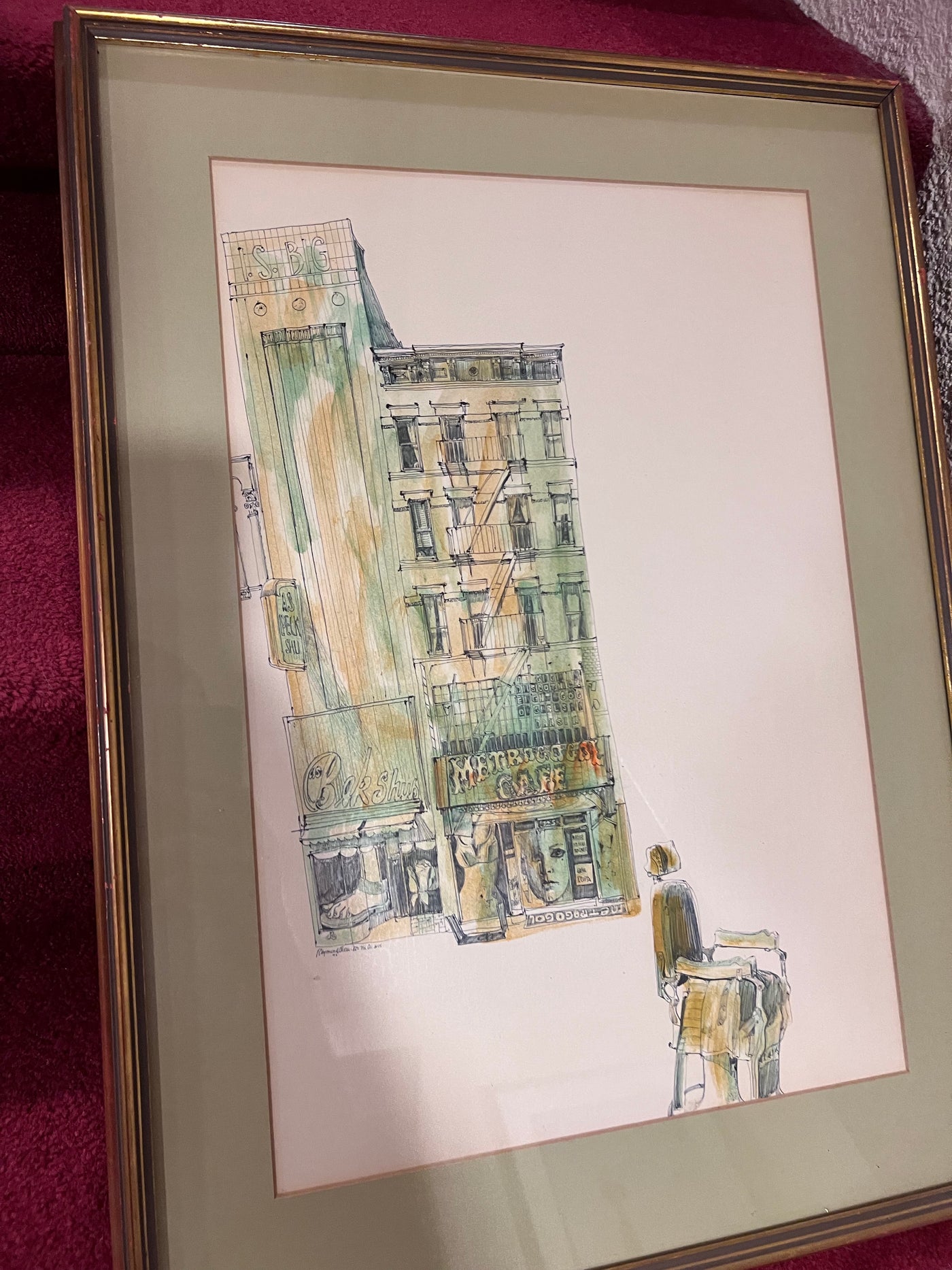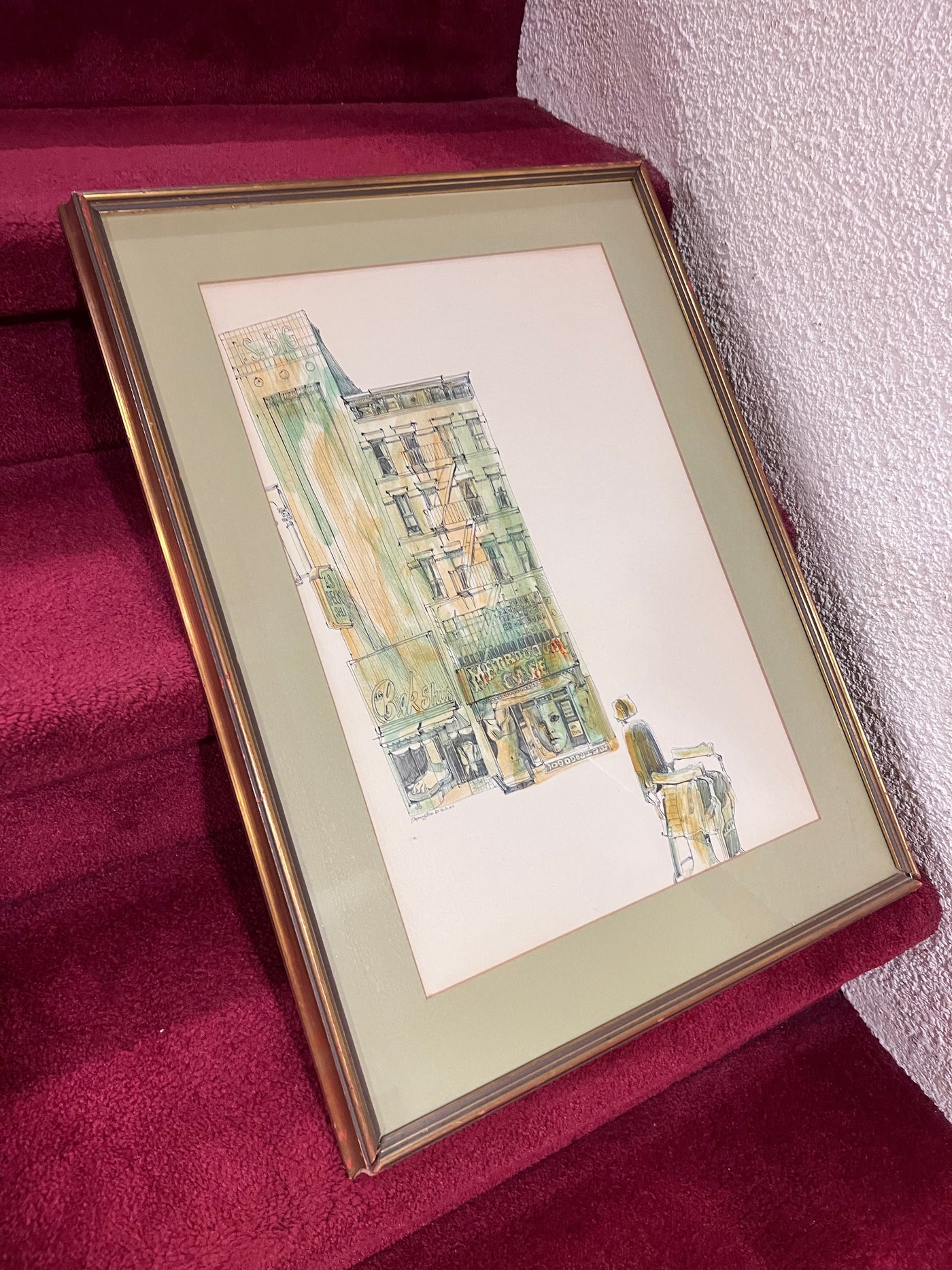 Watercolour titled "Metrogogol Cafe" by Raymond Chow.