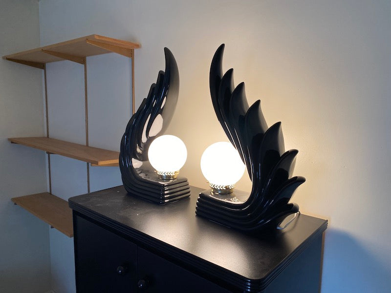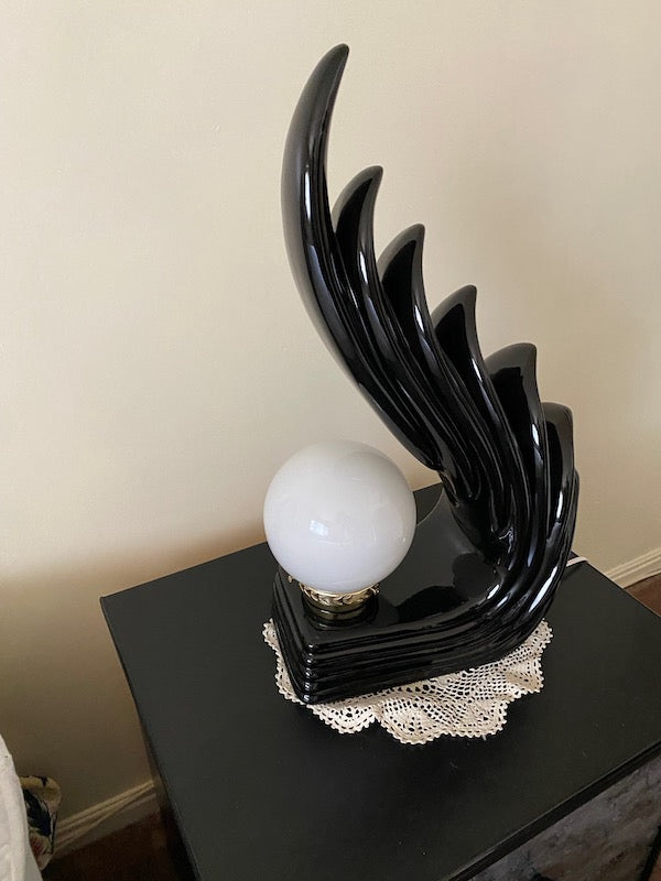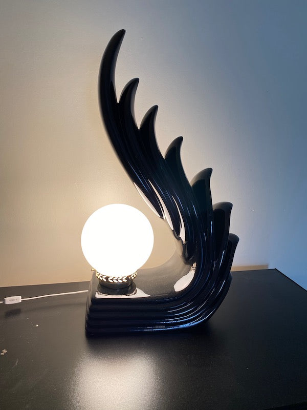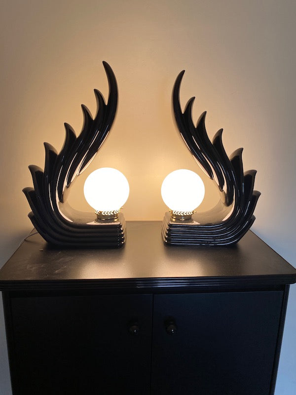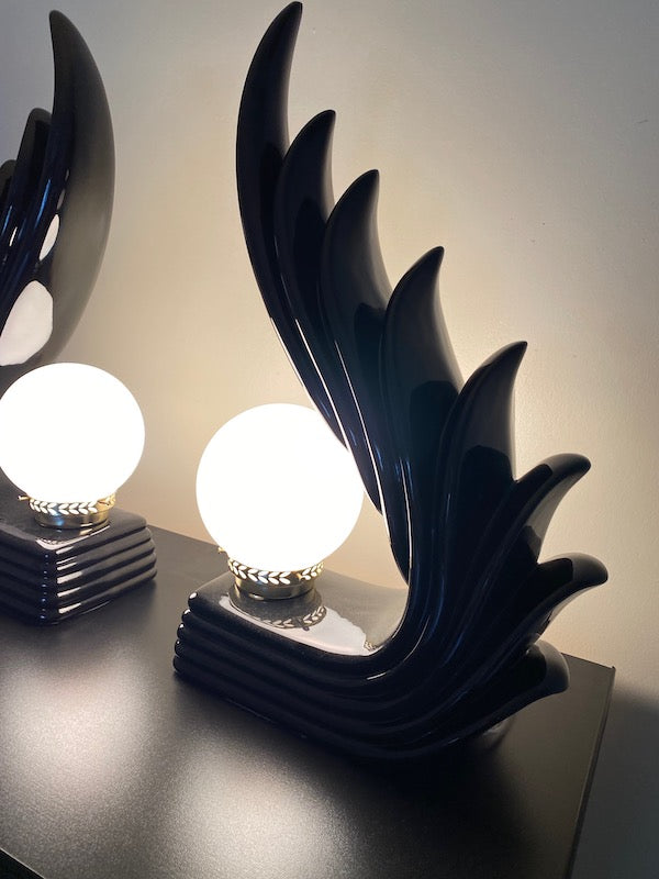 Pair of MCM Art Deco Ceramic Wave Table Lamps. Both are in excellent physical condition and the electrical works without issue!